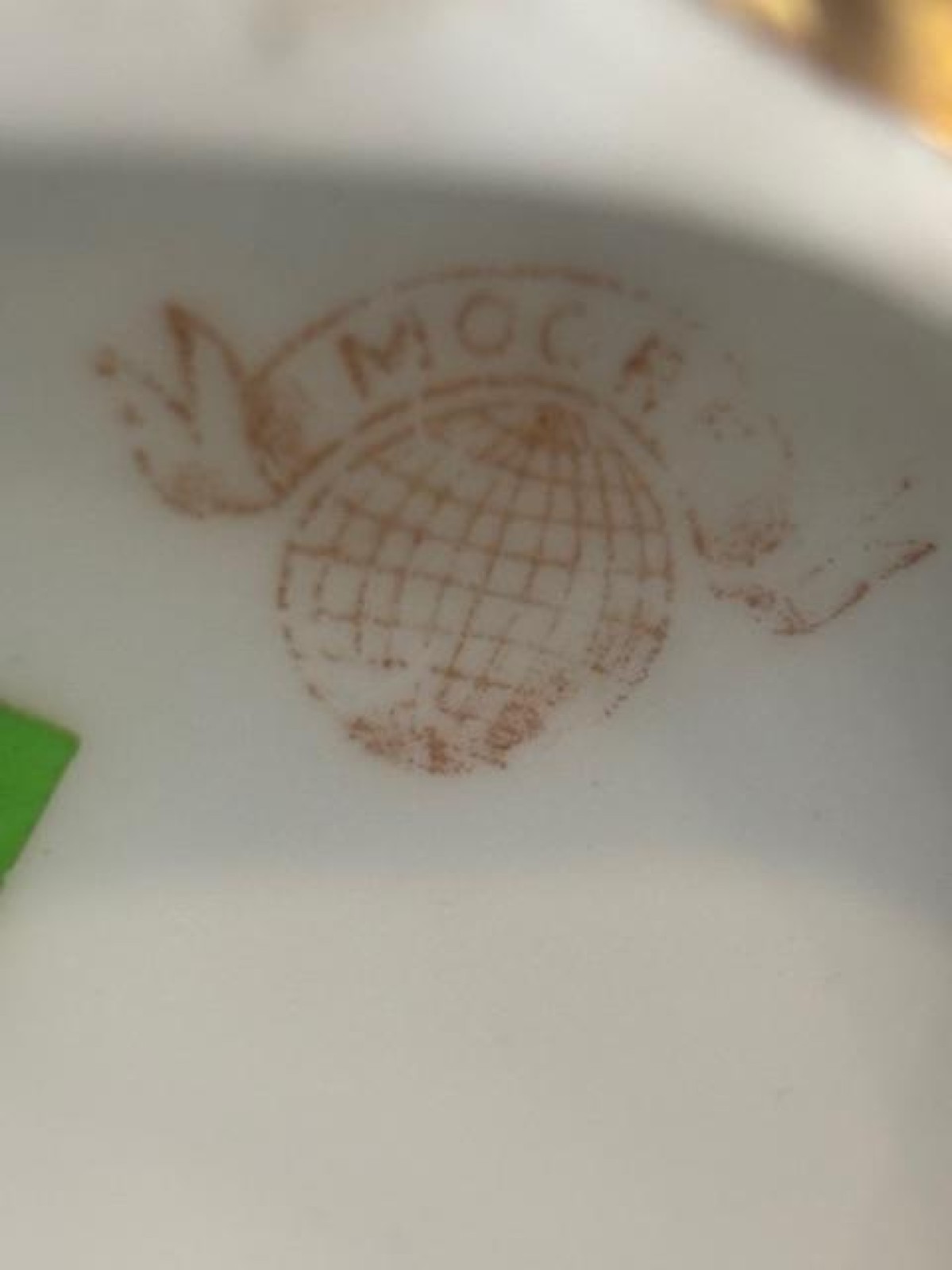 PAIR of English Victorian 2 arm white porcelain candelabra with a green and gilt trim floral design resting on a gilt round shaped base (MOORE BROS) (PRICED AS PAIR)