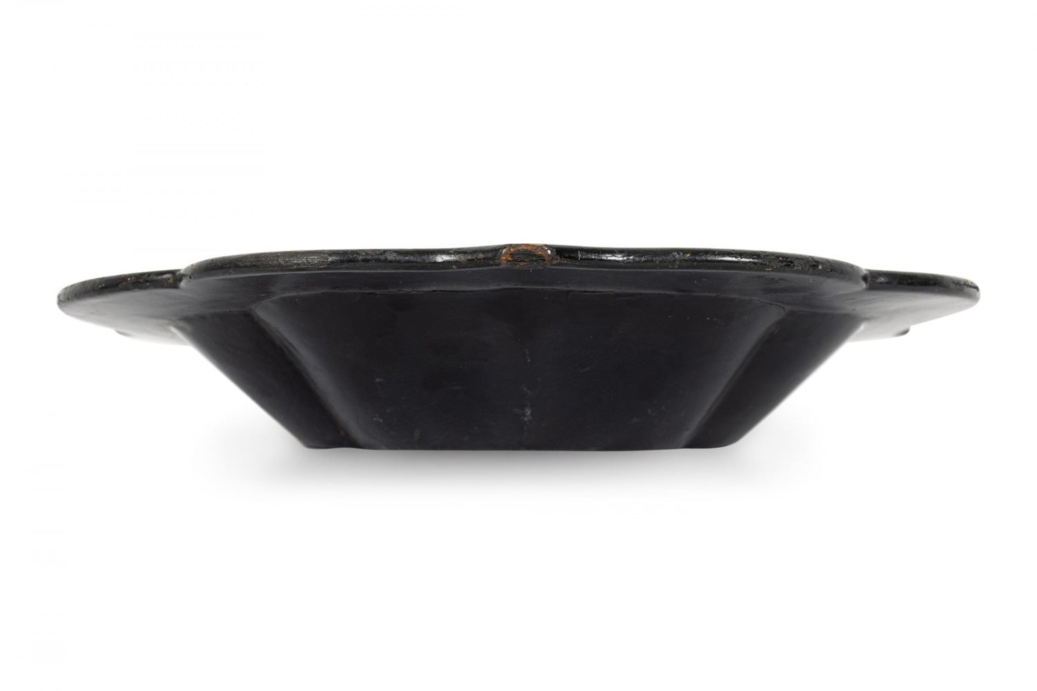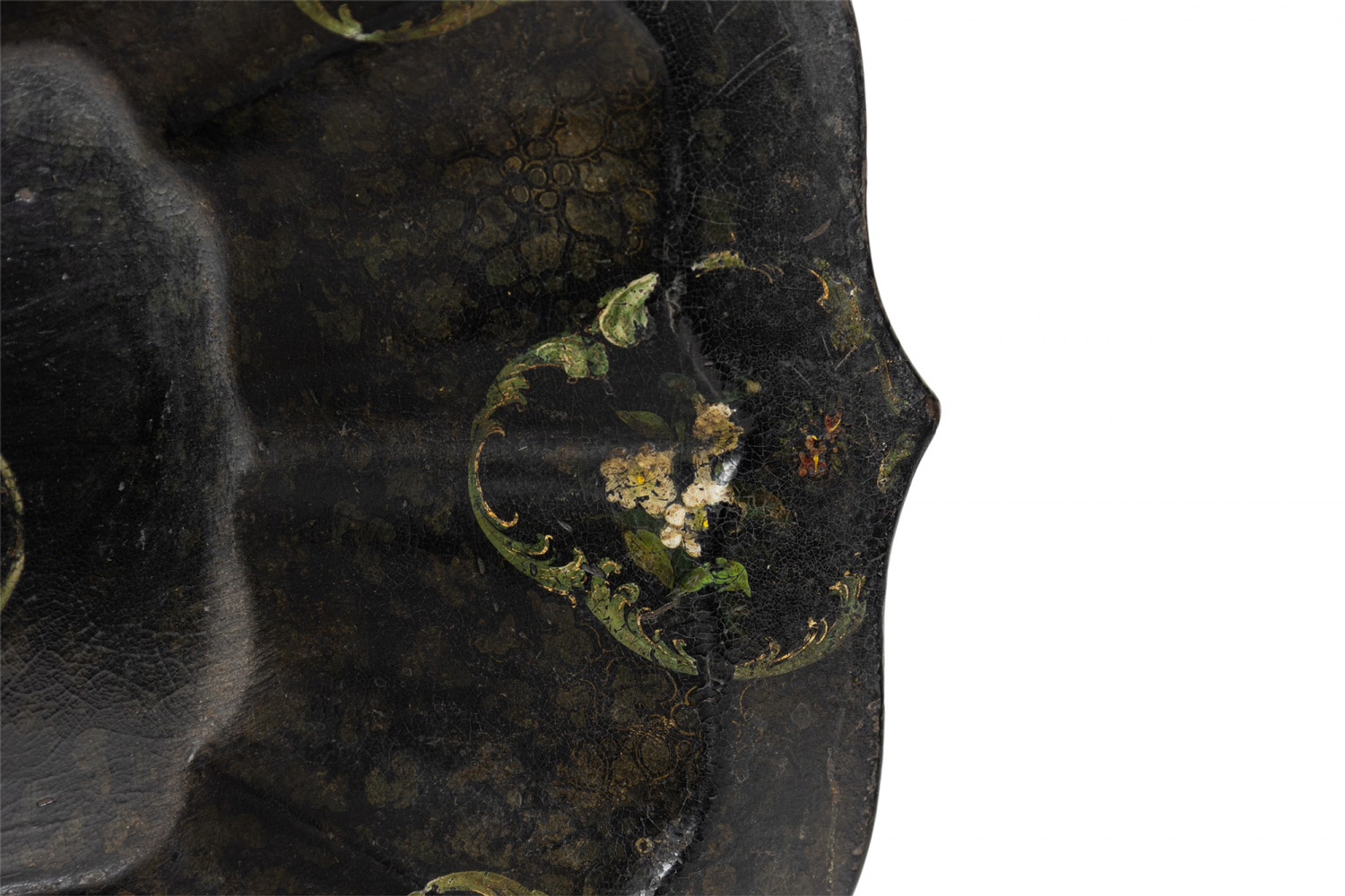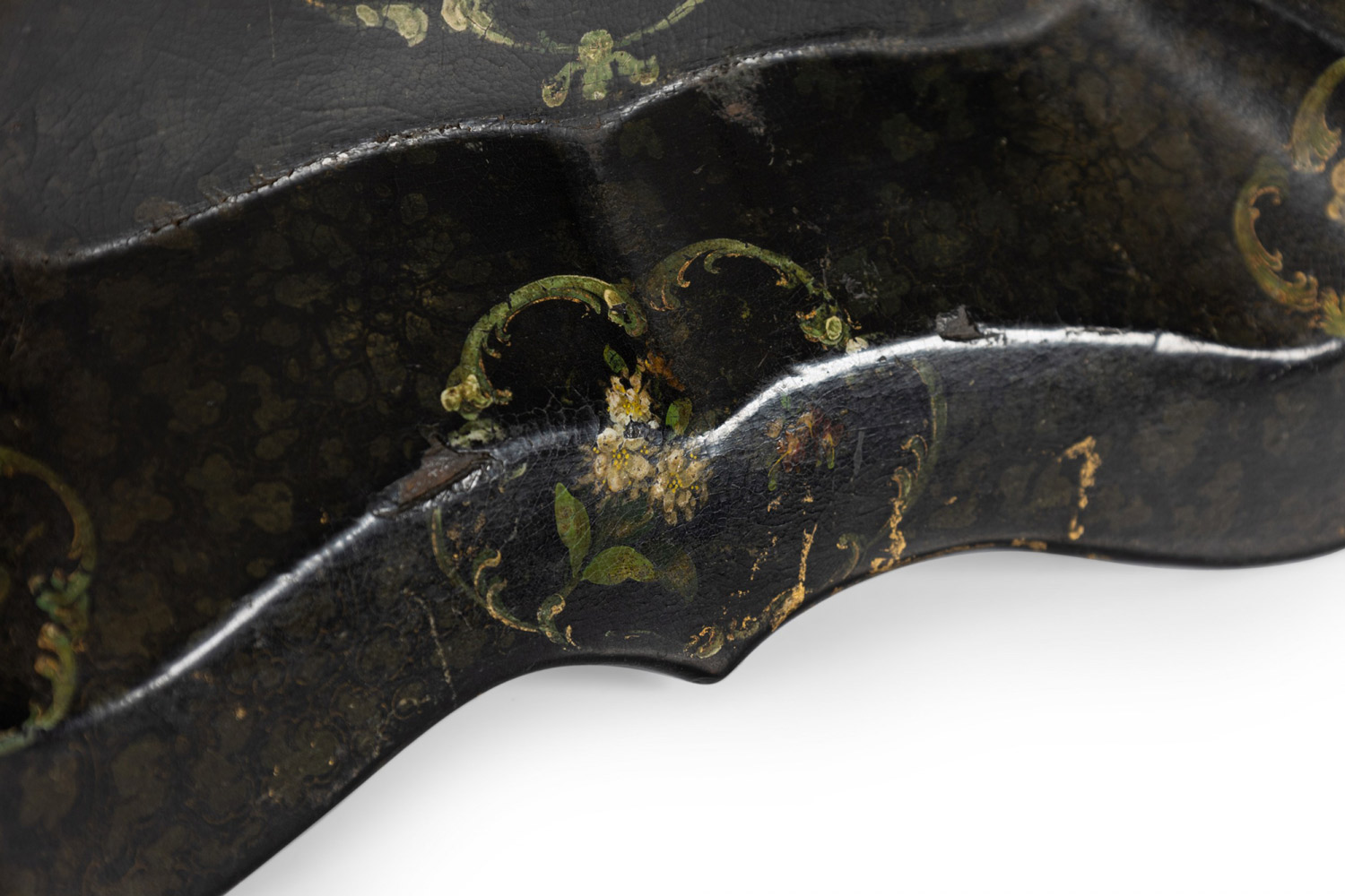 English Victorian papier mache decorated rectangular tray with scalloped edge.