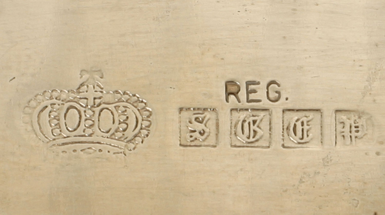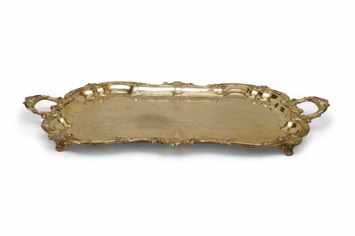 English Victorian silver-plate serving tray with handles and a scalloped edge with an etched floral design surface (with multiple hallmarks)