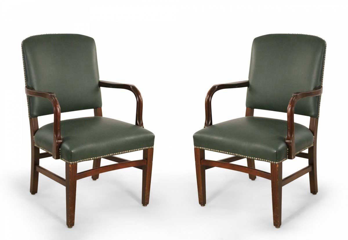 Choose one of the options below.3 English Victorian Style Green Leather and Mahogany Armchairs