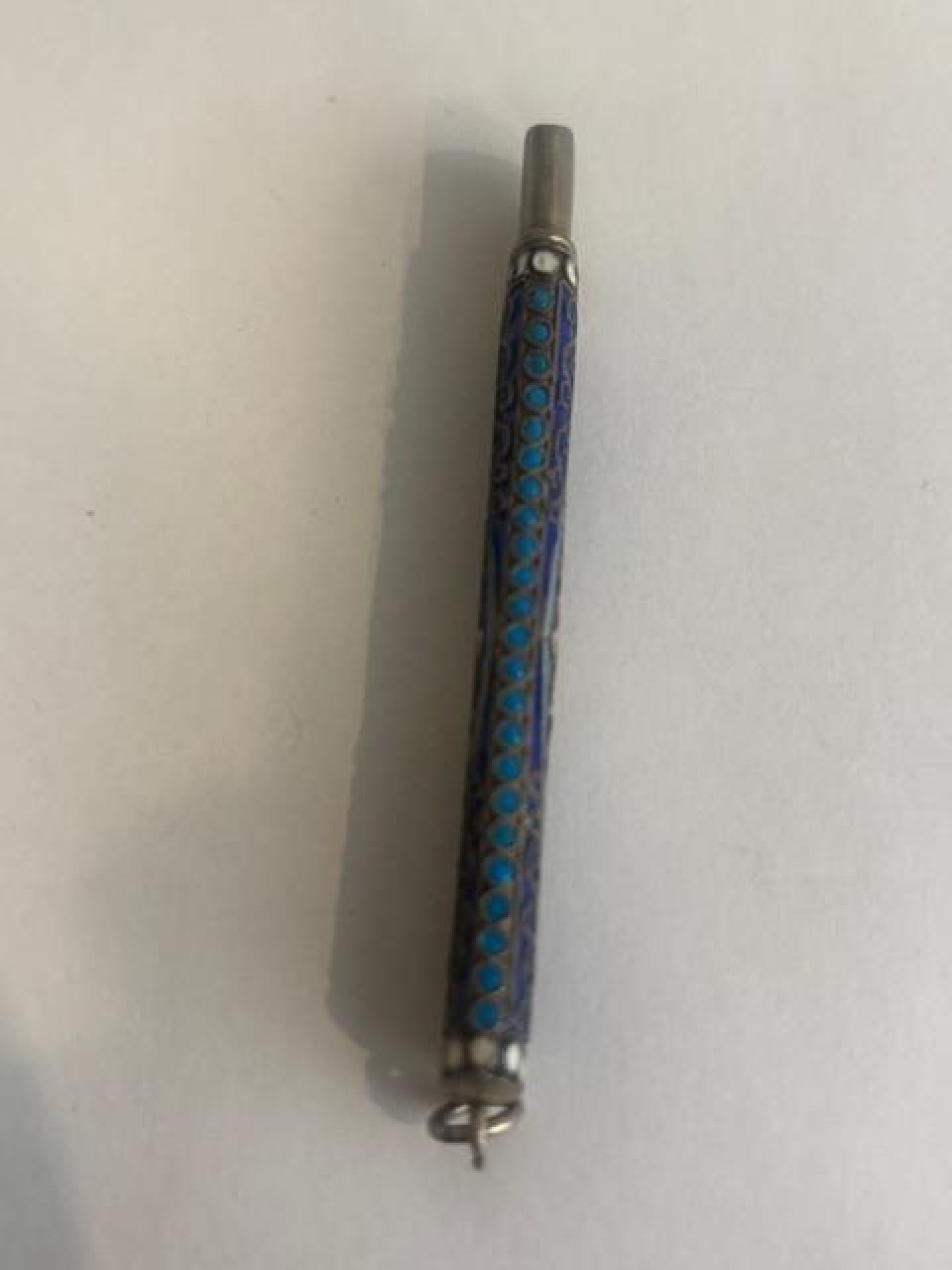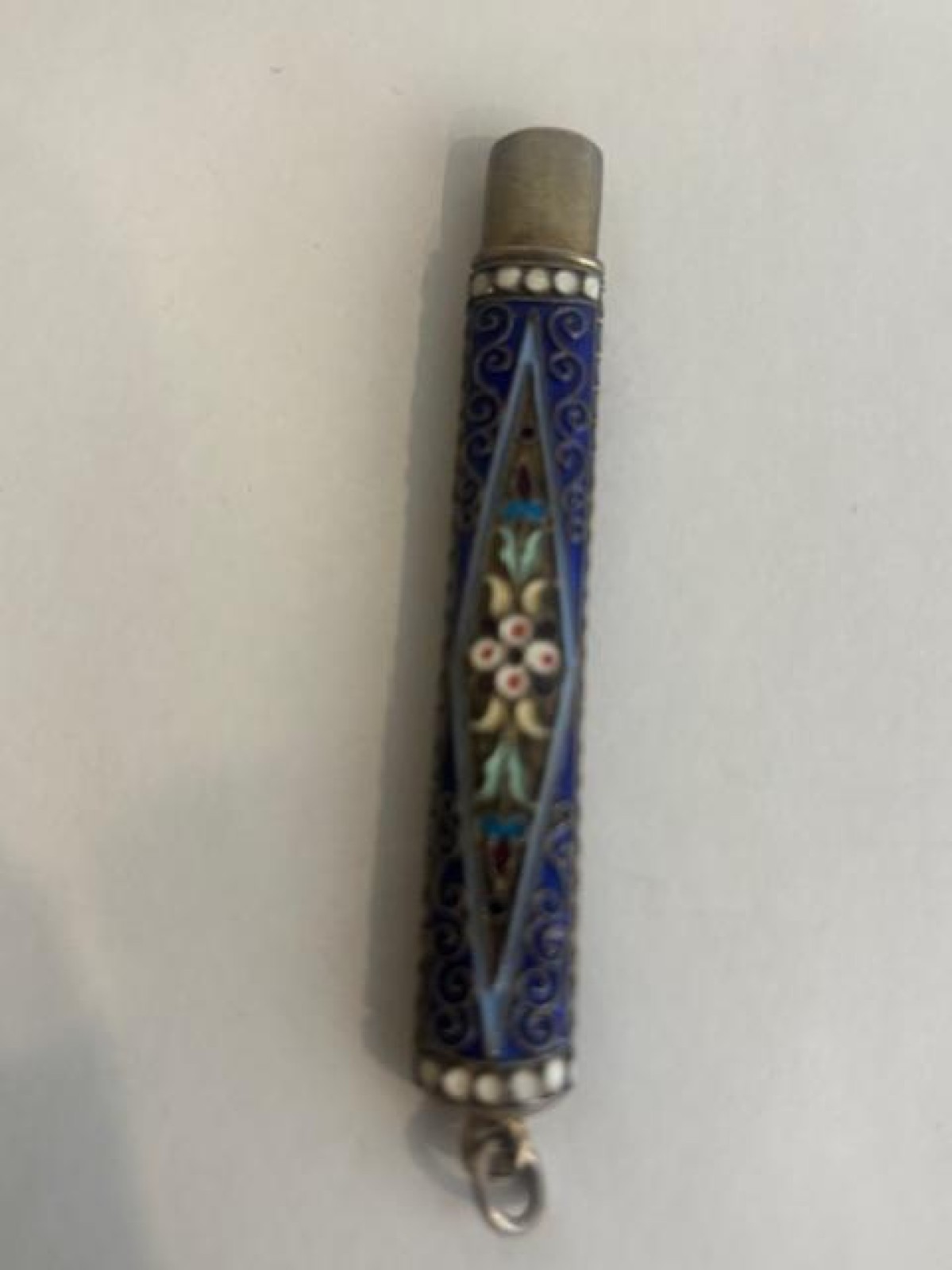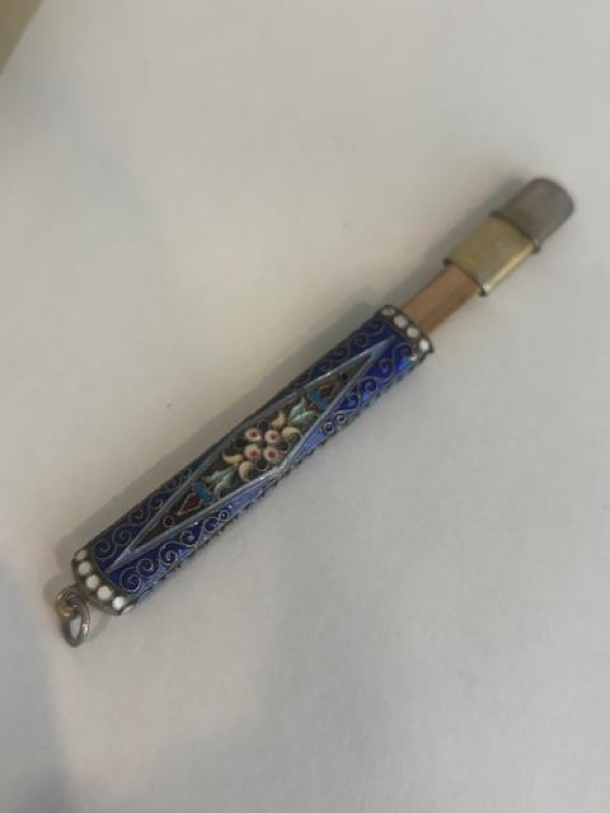 Russian (early 20th Century) Faberge Style Enamel Silver Gilt small narrow pencil case
