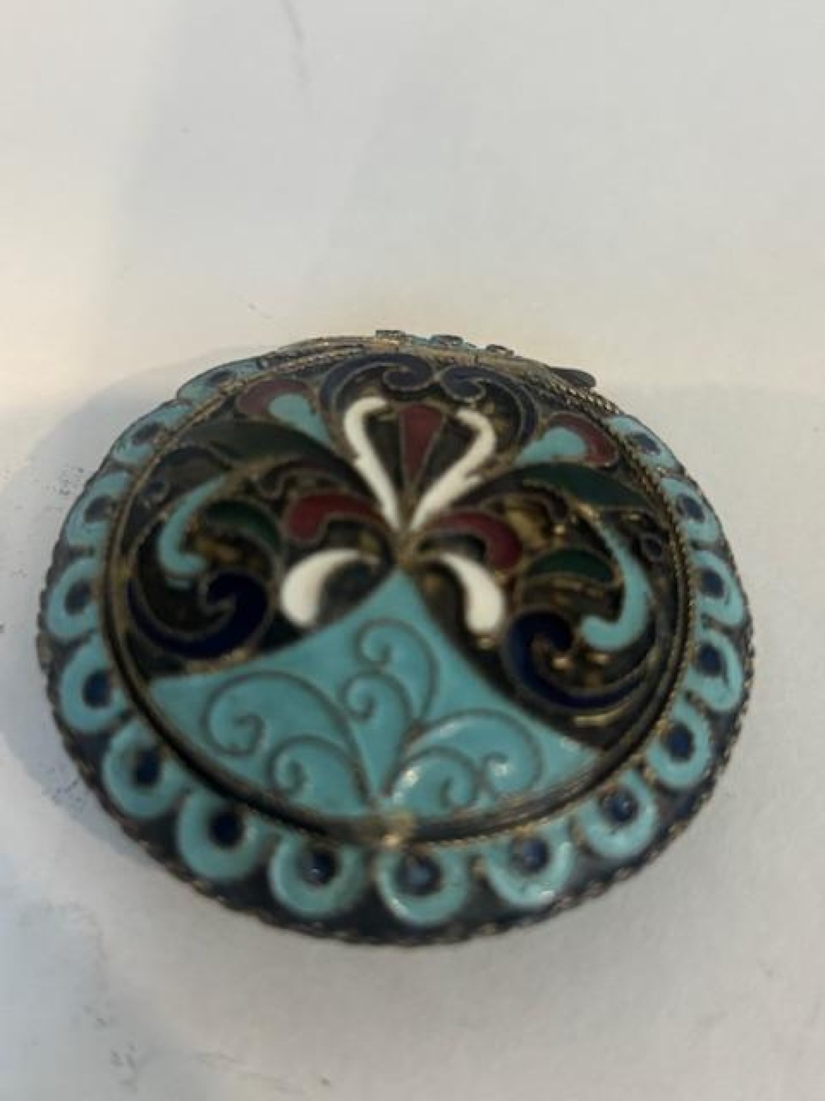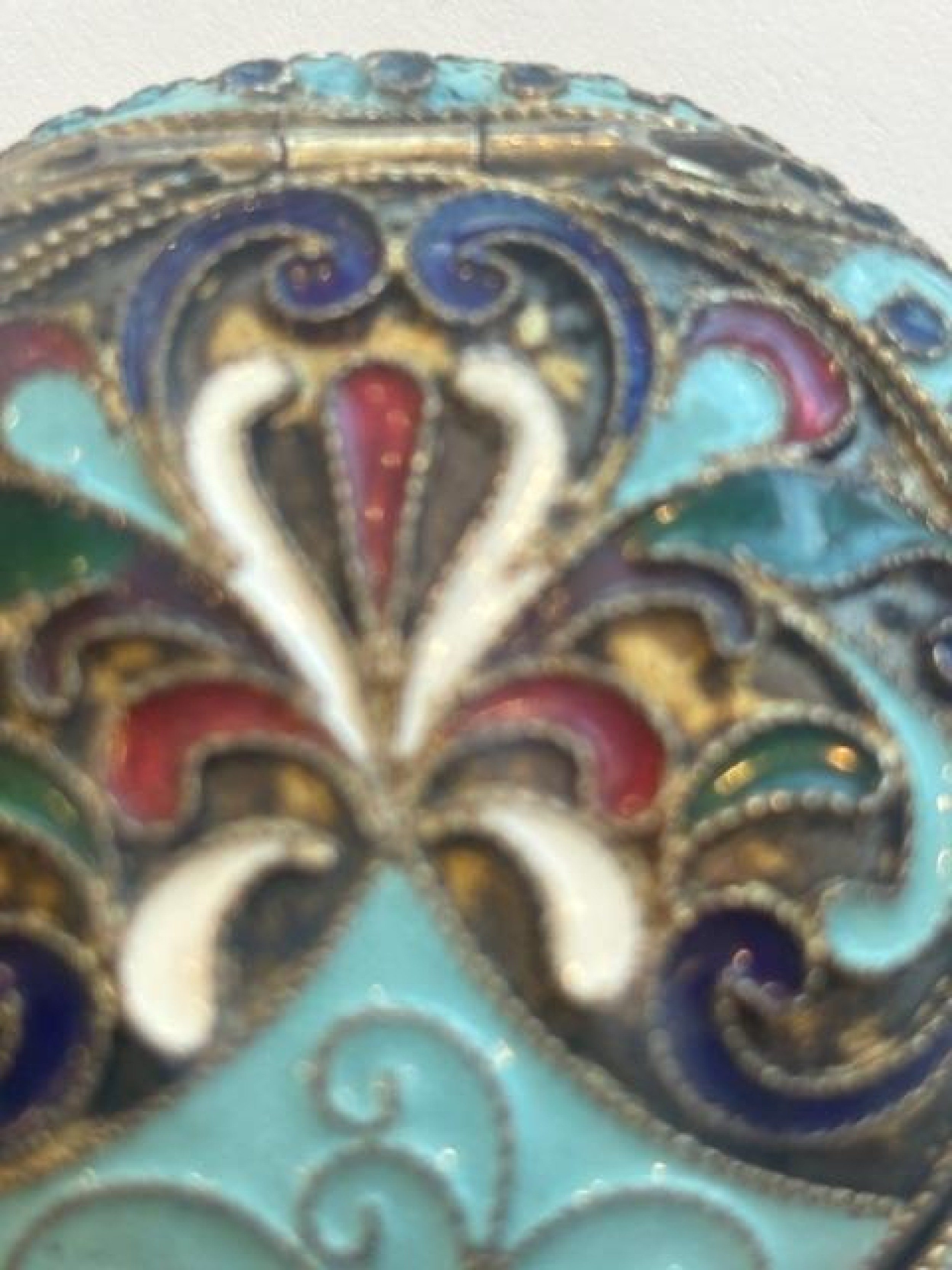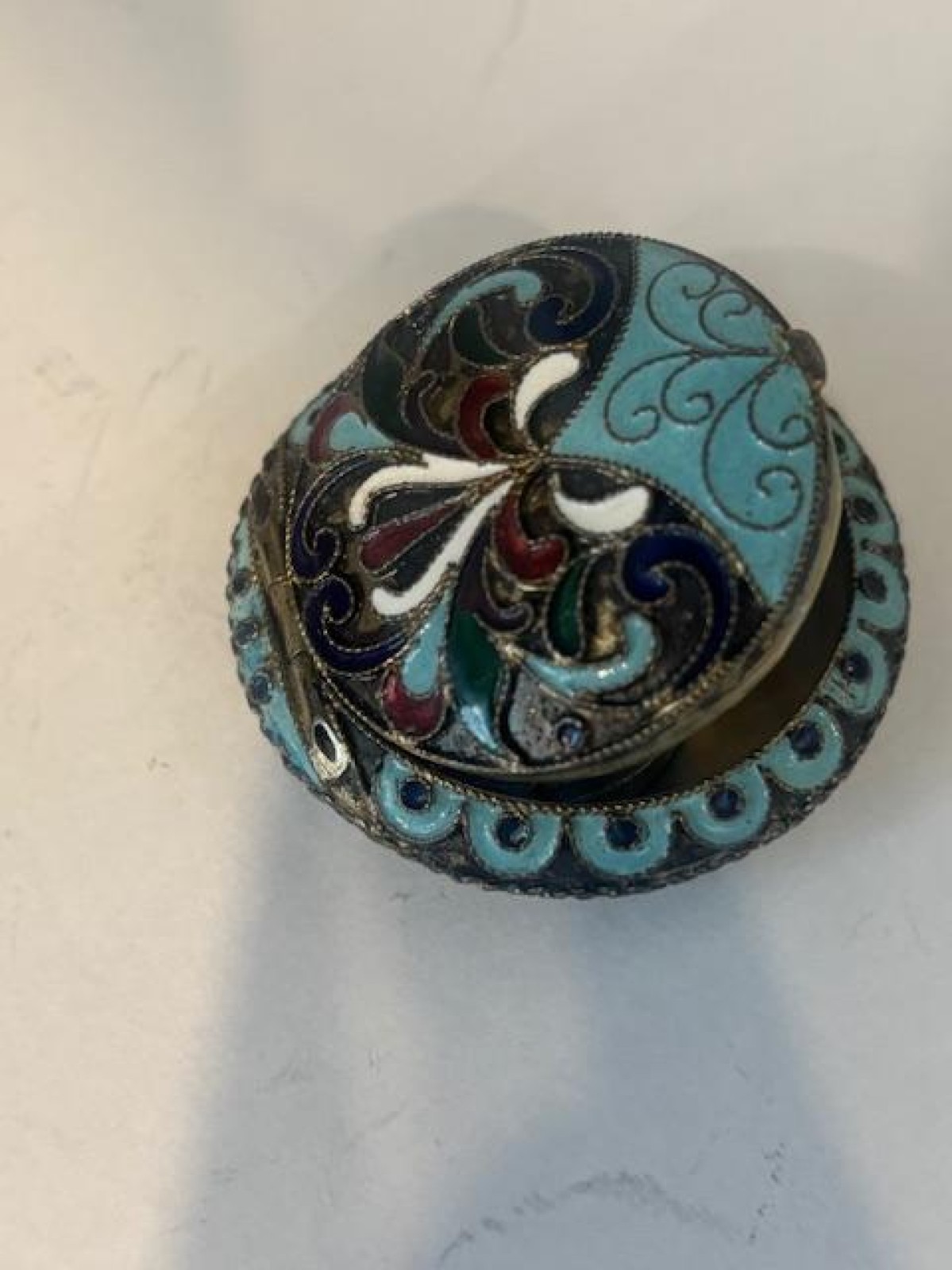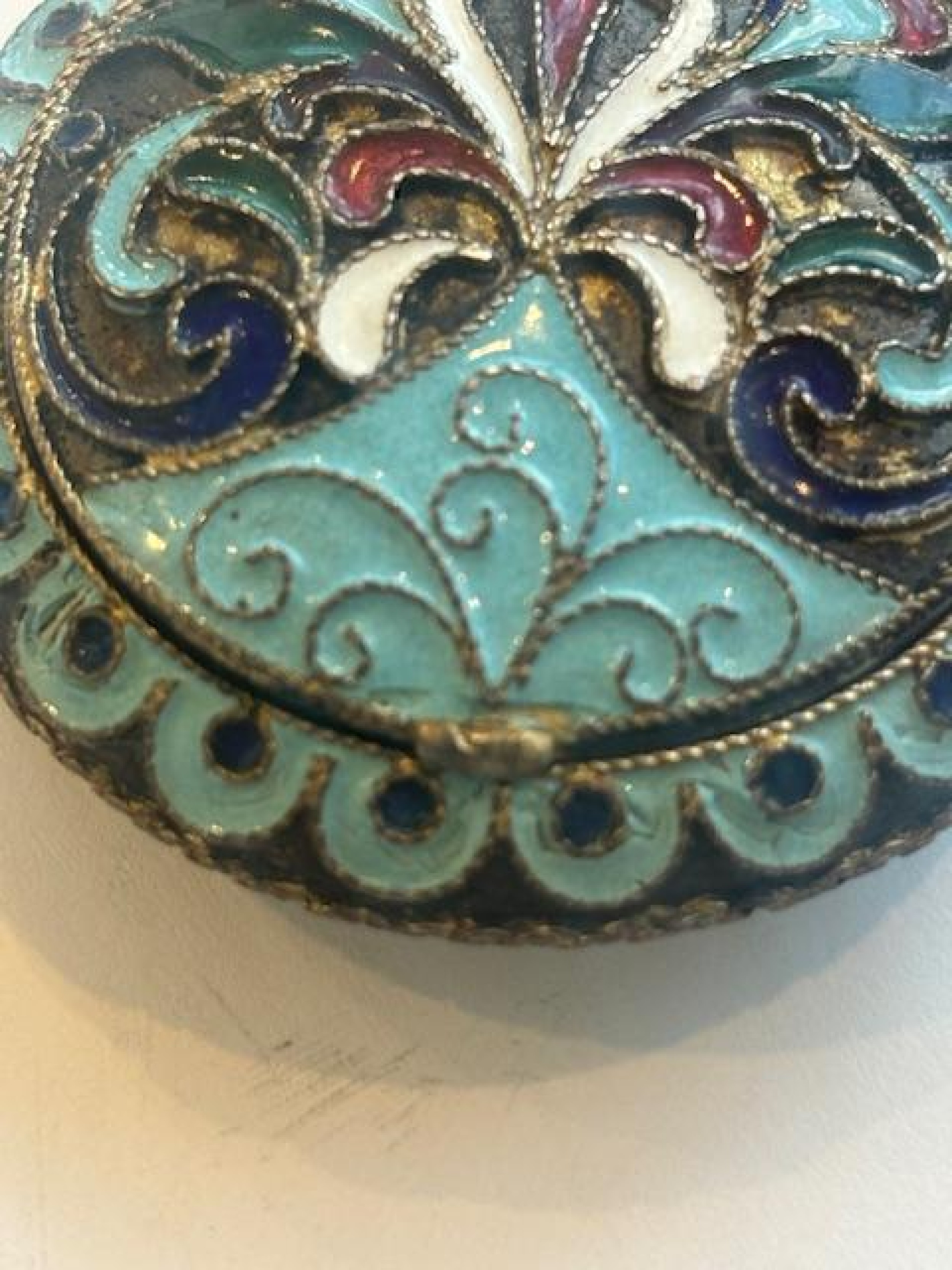 Russian (early 20th Century) Faberge Style Enamel Silver Gilt small round pill box