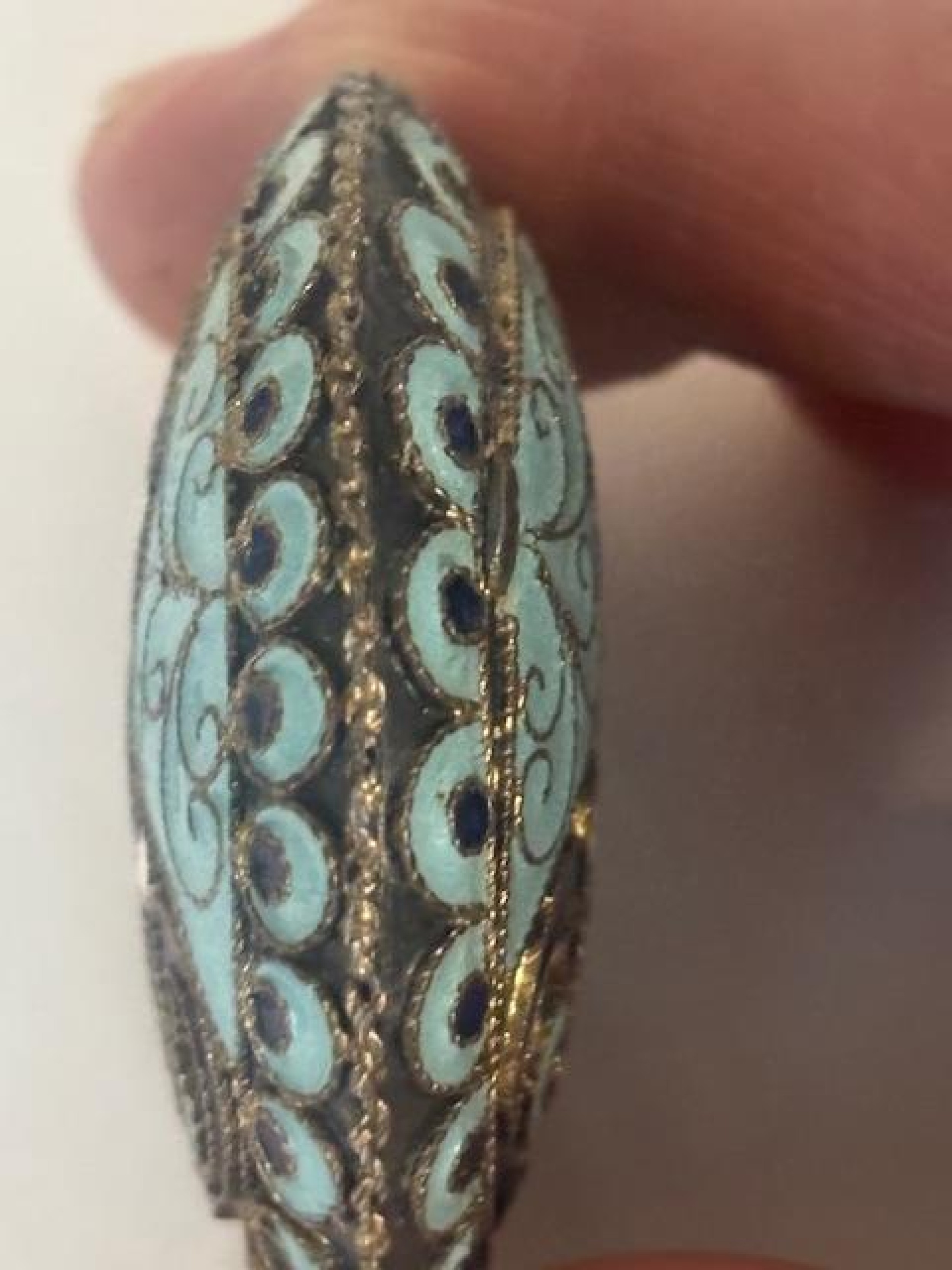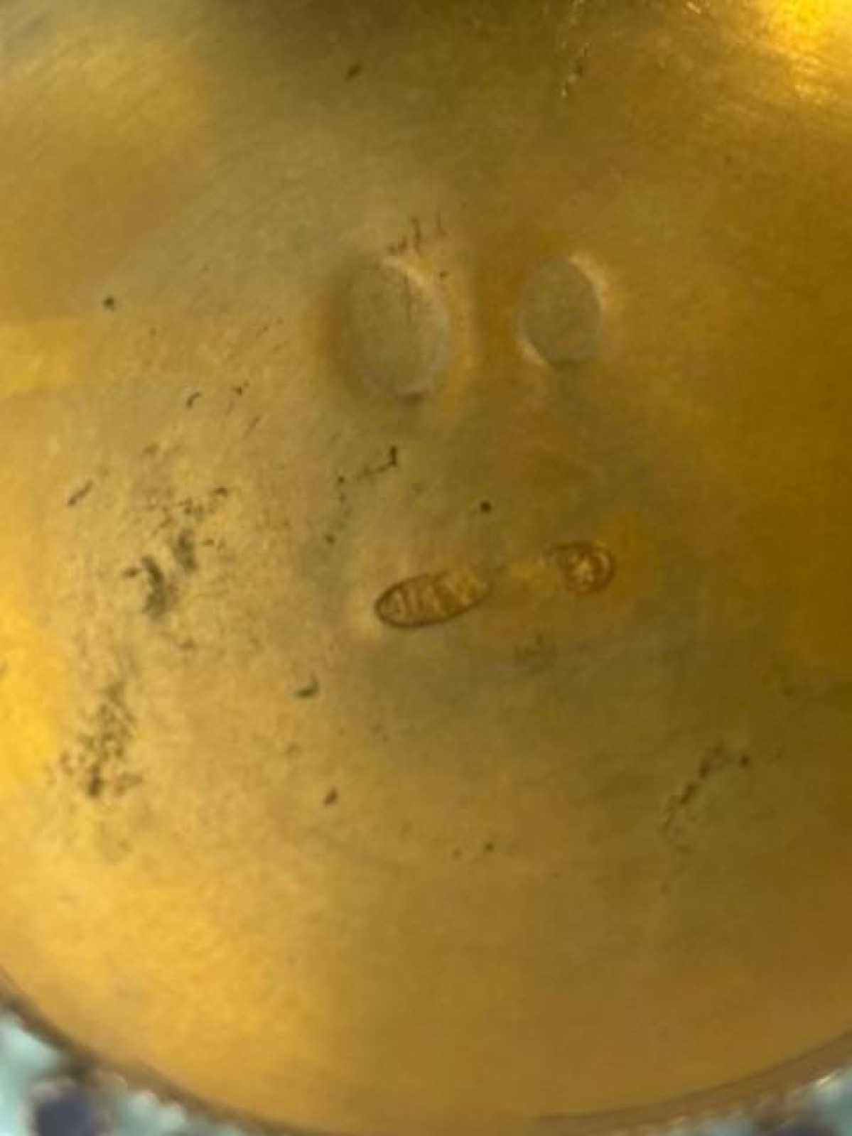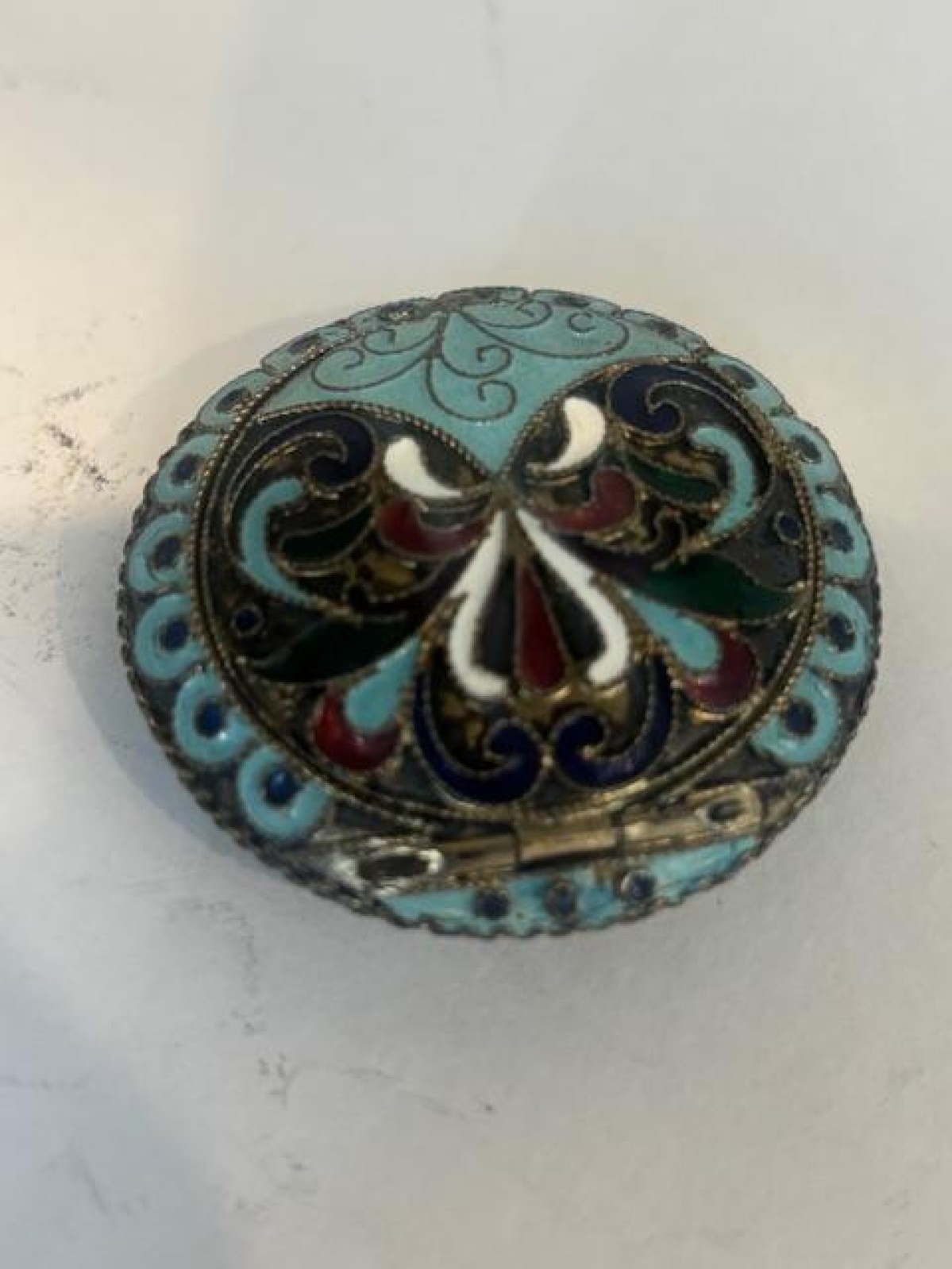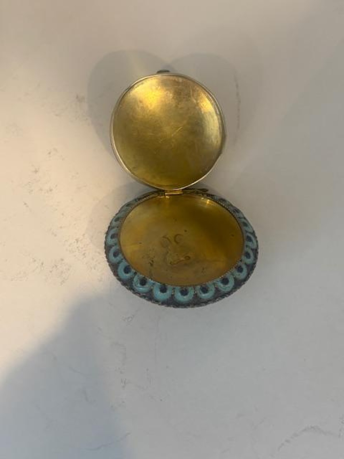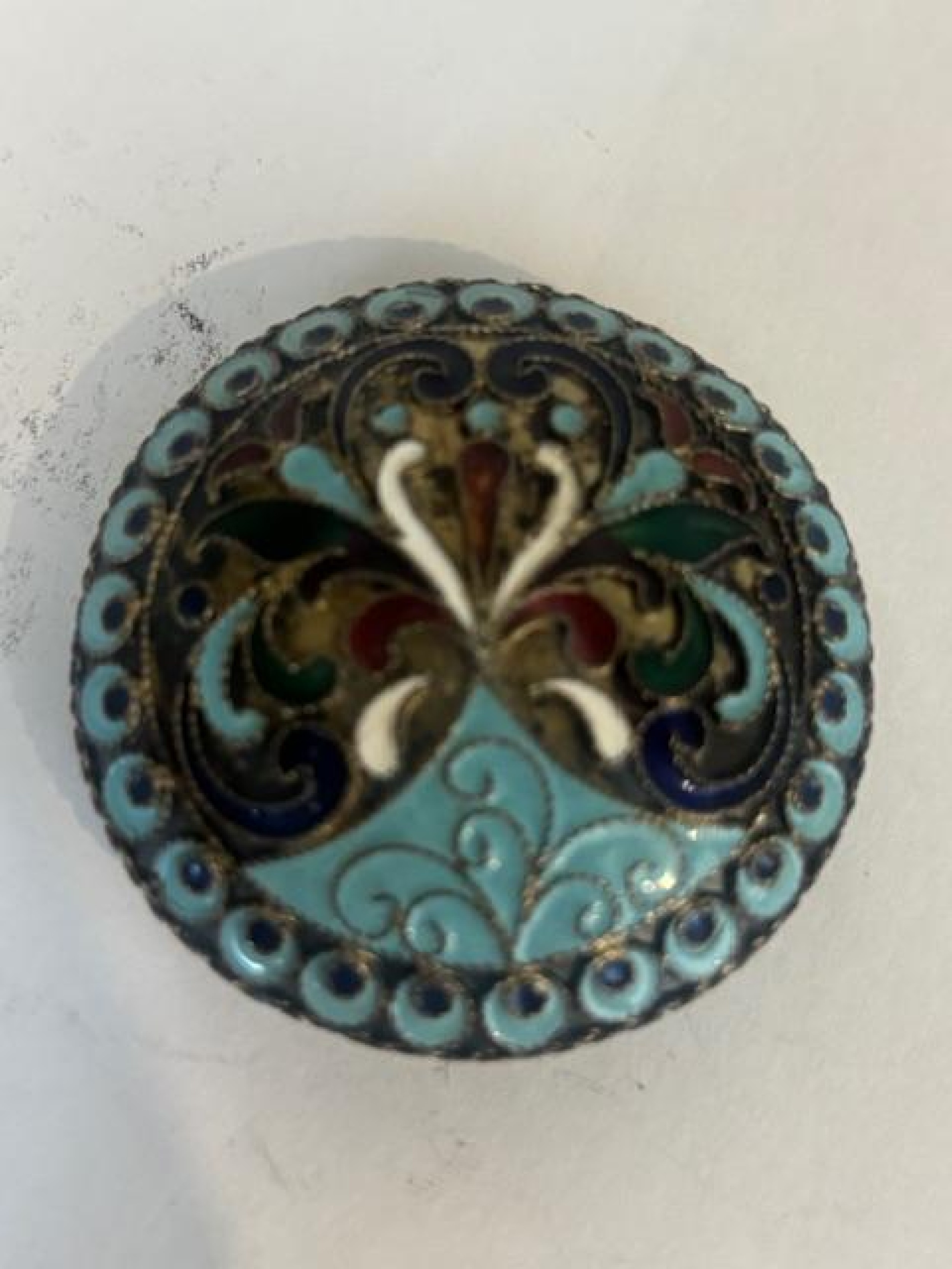 Russian (early 20th Century) Faberge Style Enamel Silver Gilt small round pill box
