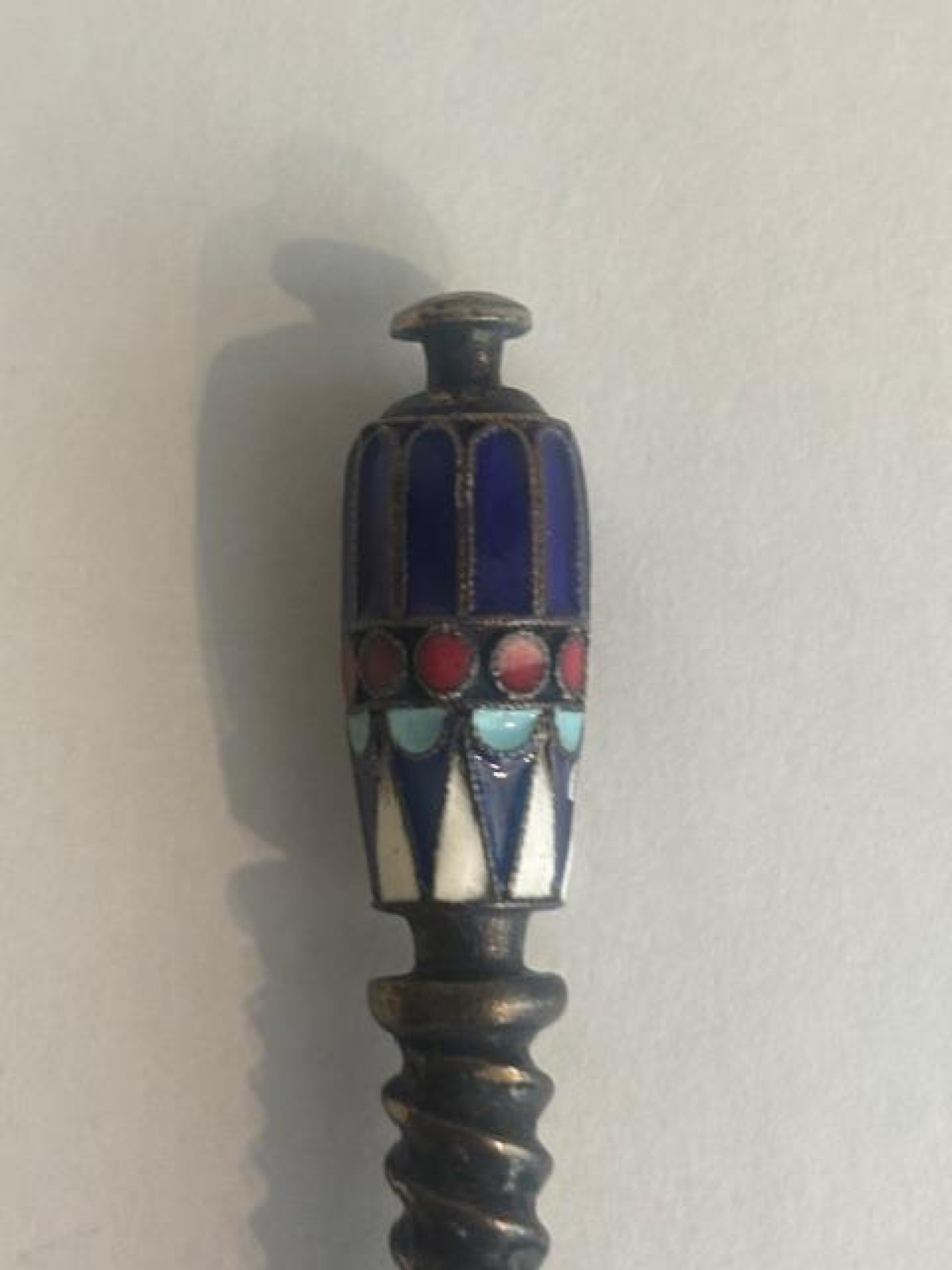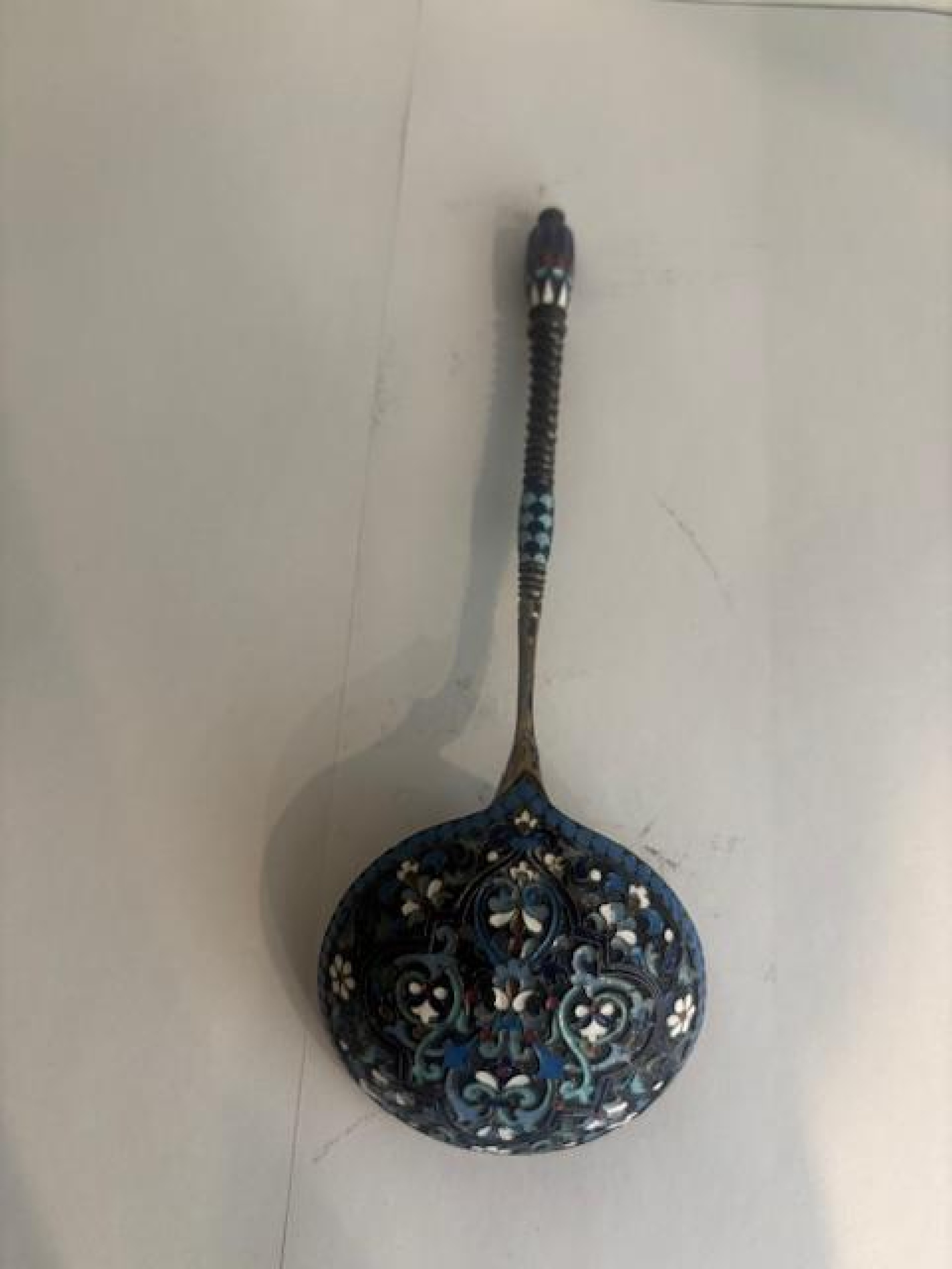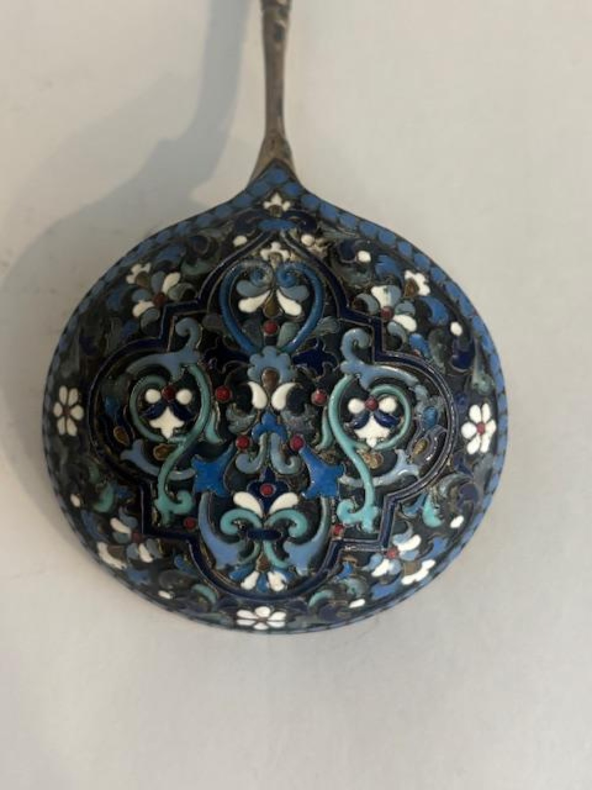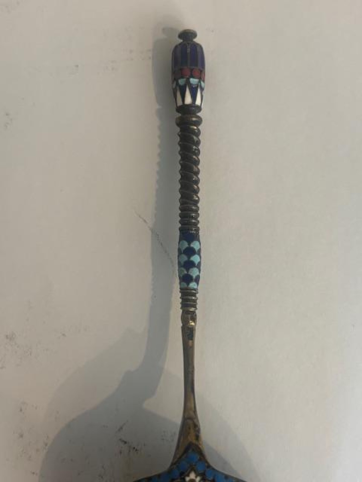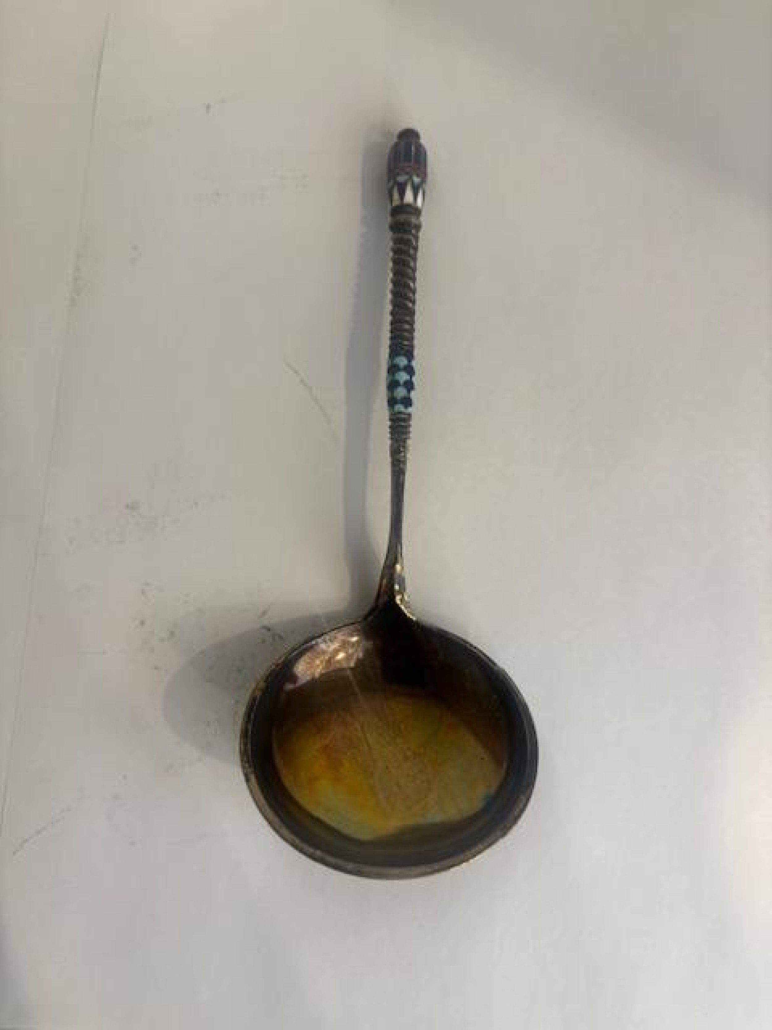 Russian Faberge Style Enamel Silver Gilt Large Spoon