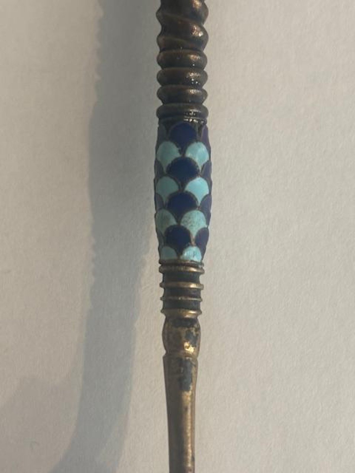 19th C. Faberge Style Russian Enamel Silver Gilt Large Spoon