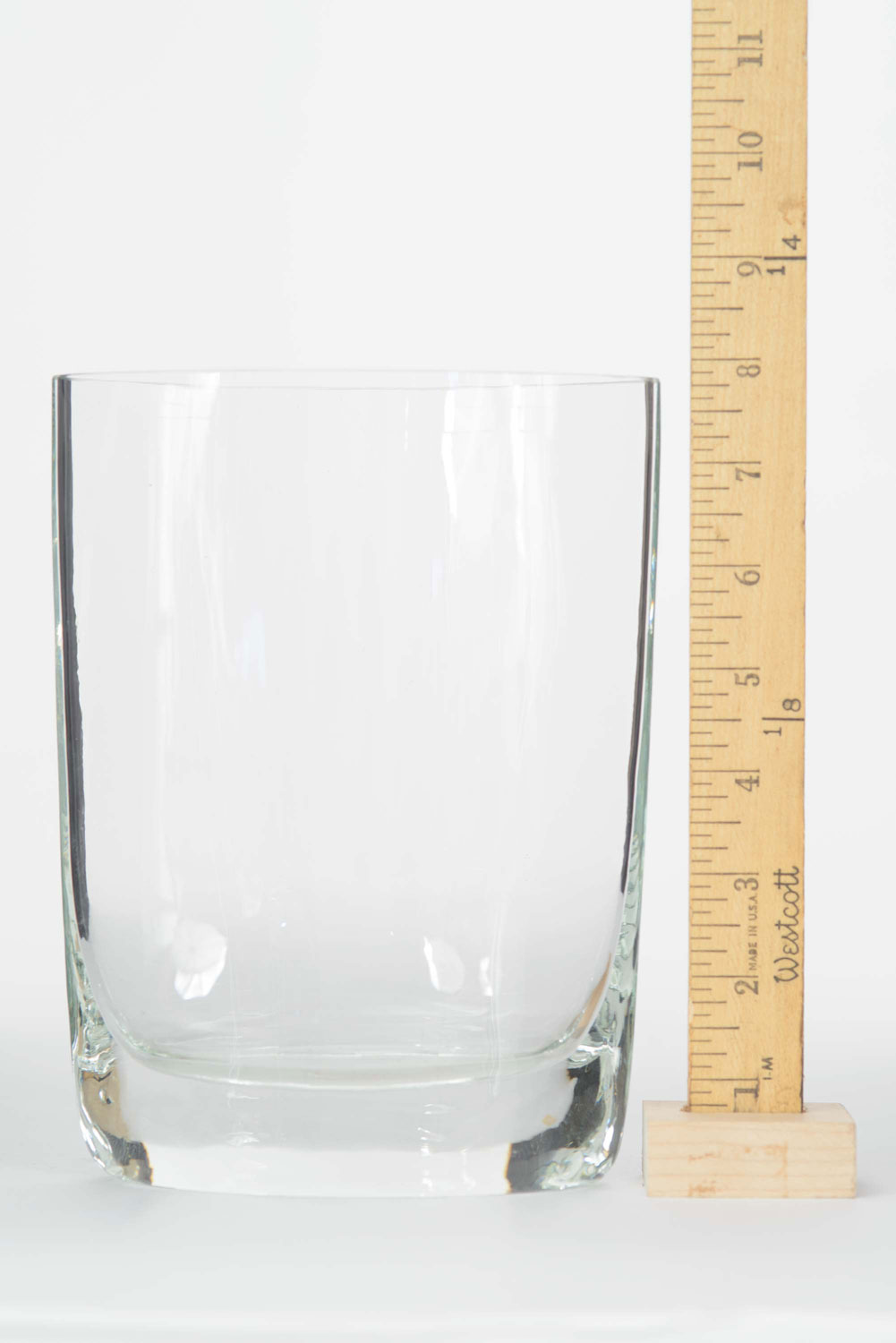 Flat glass vase with tapered sides and a thick base