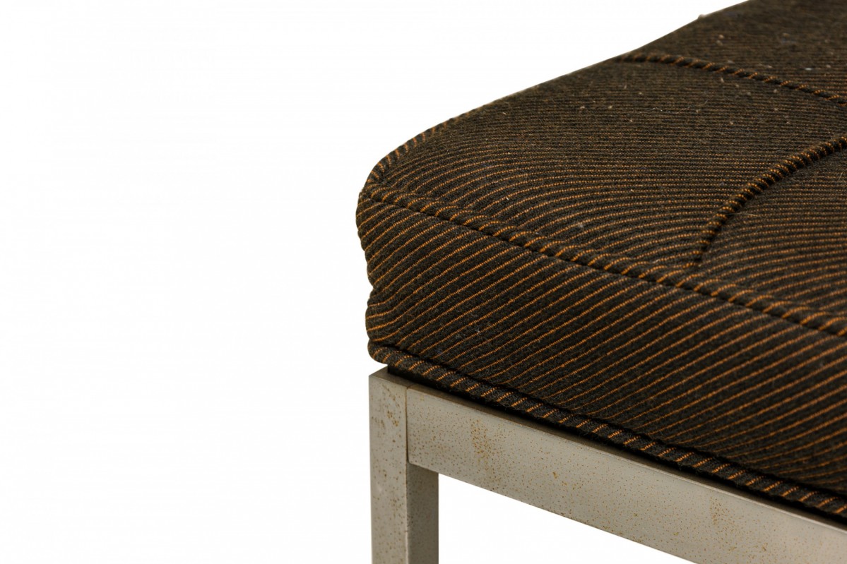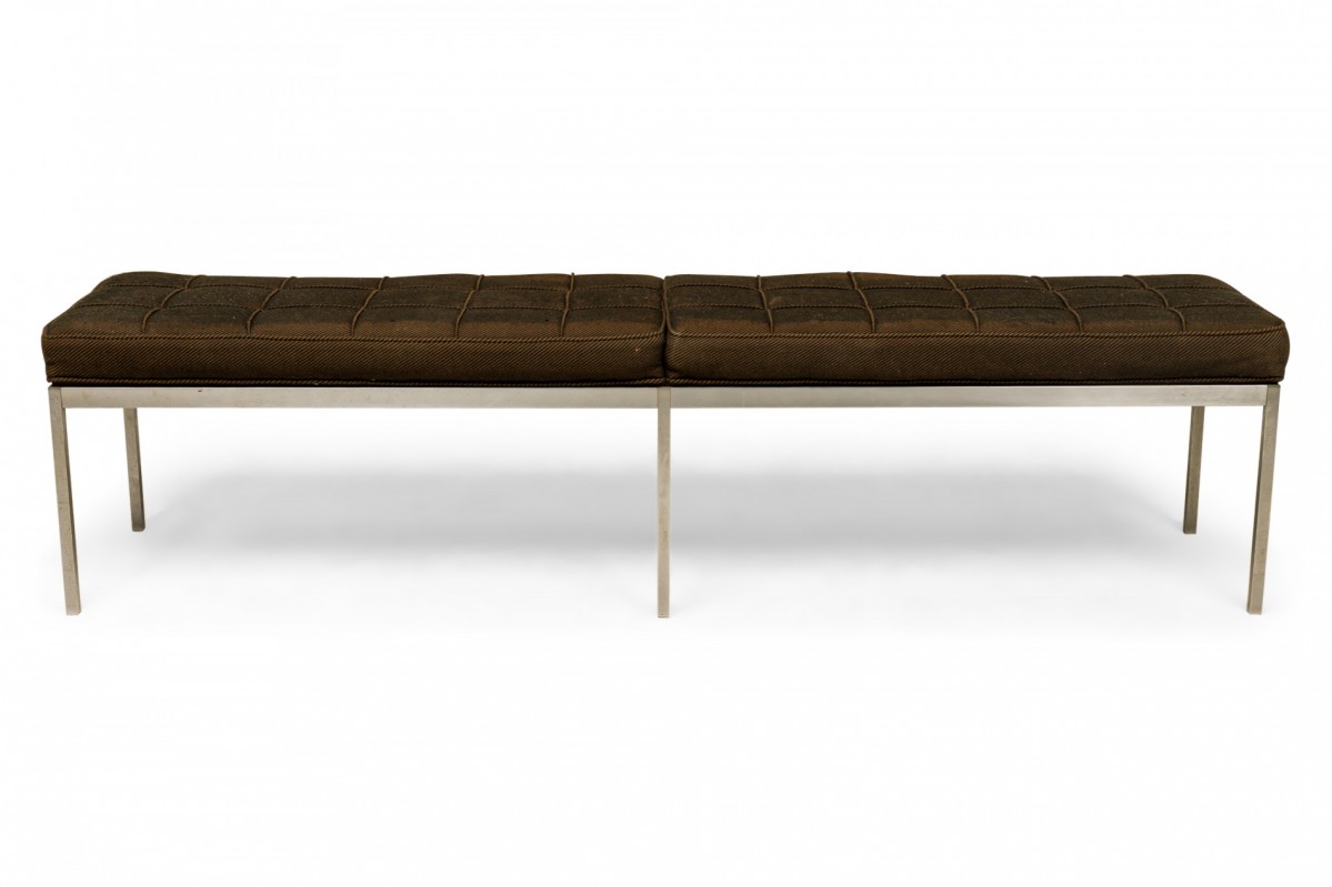 Choose one of the options below.American Mid-Century Brown Fabric Upholstery and Chrome Museum Bench