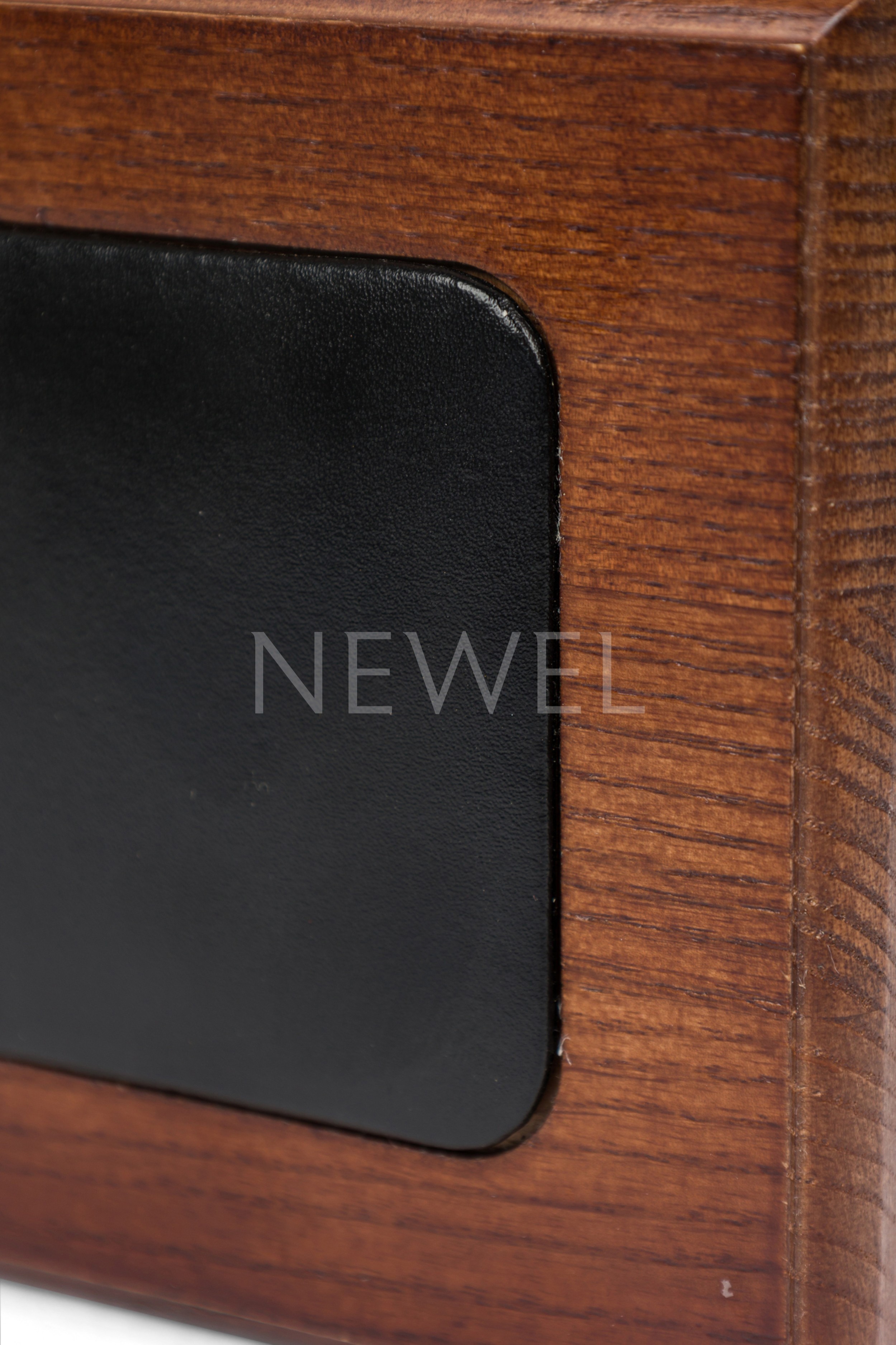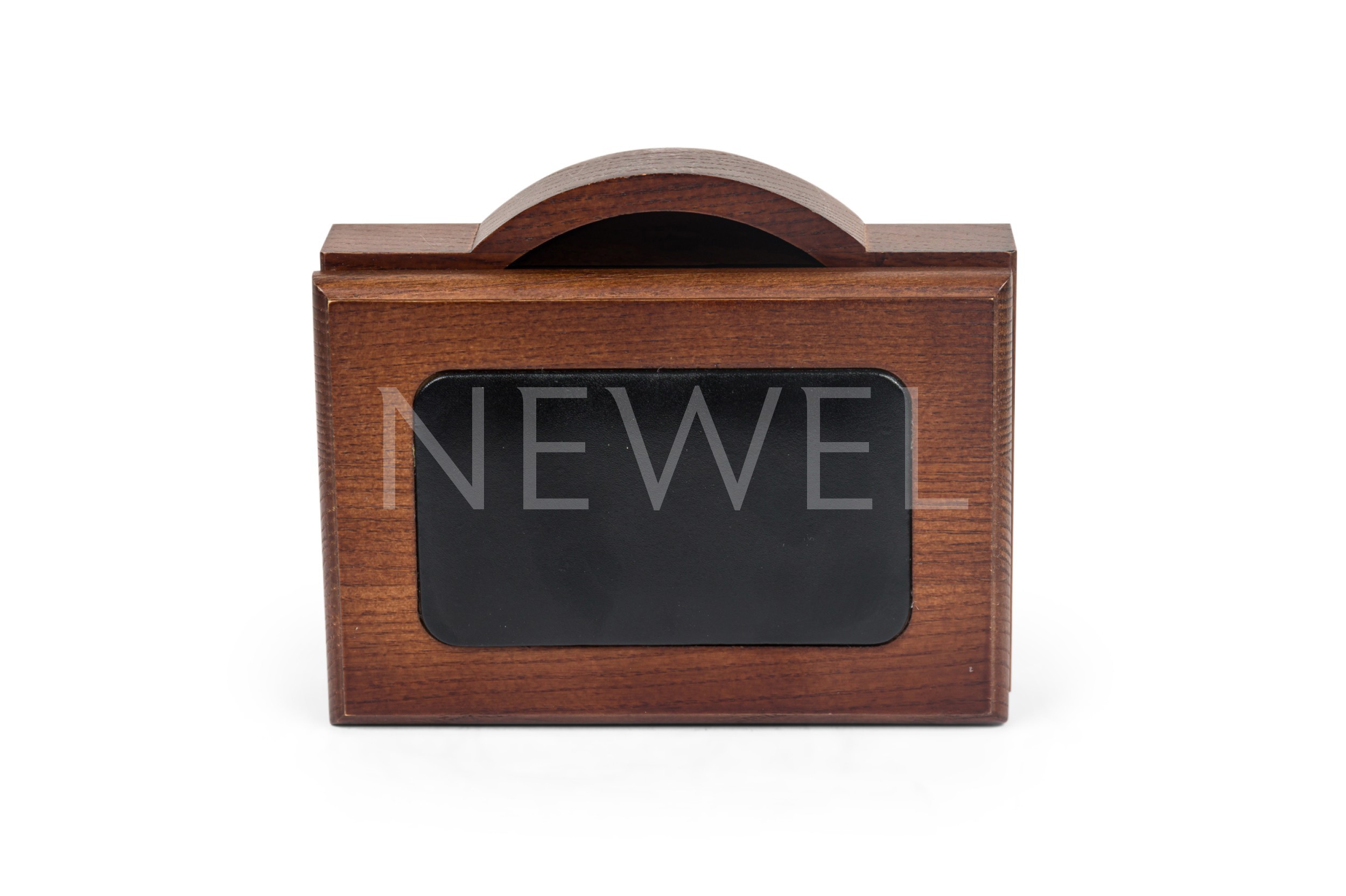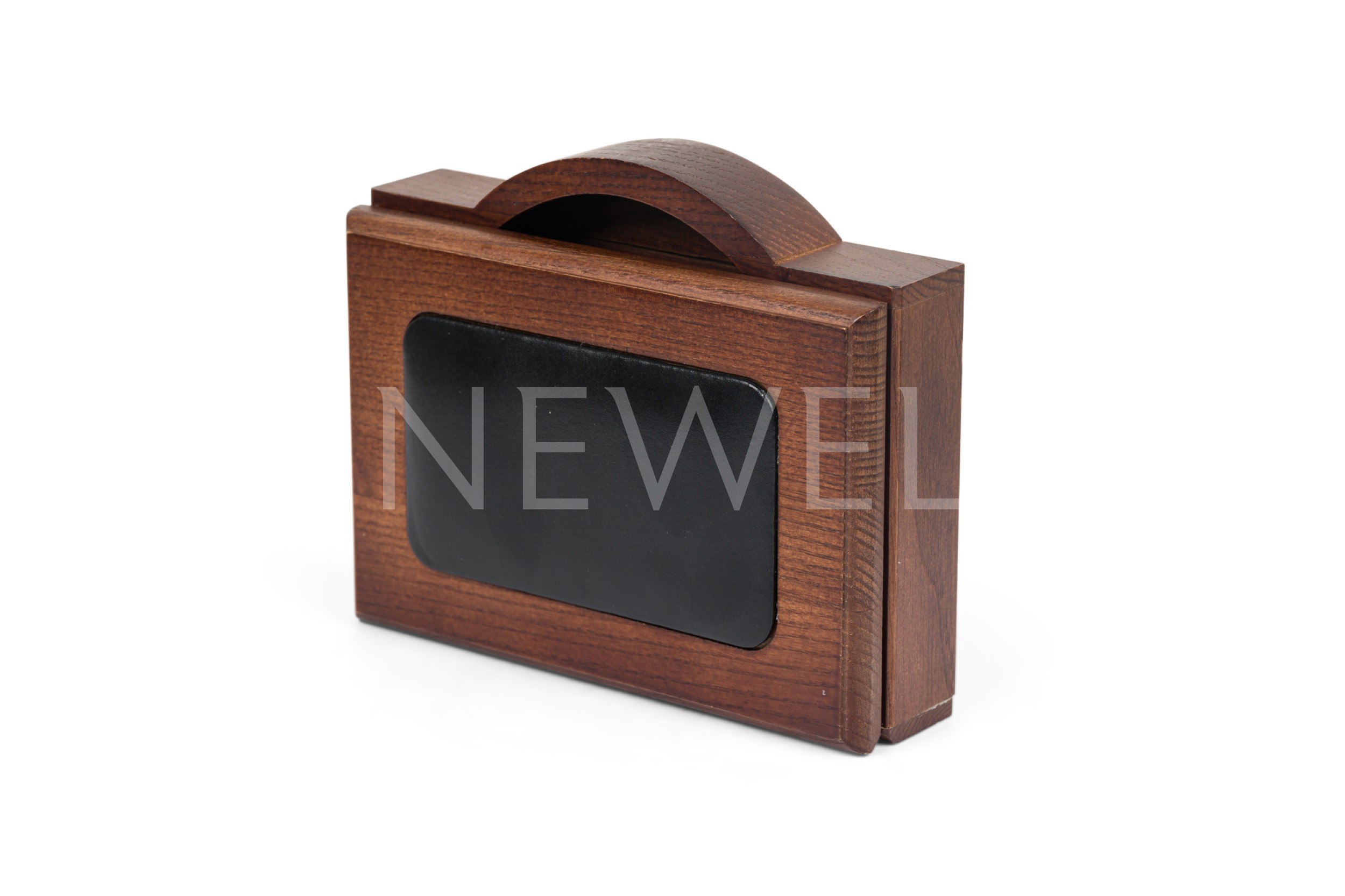 Choose one of the options below.Mid Century Style Mahogany and Black Leather Memo Holder