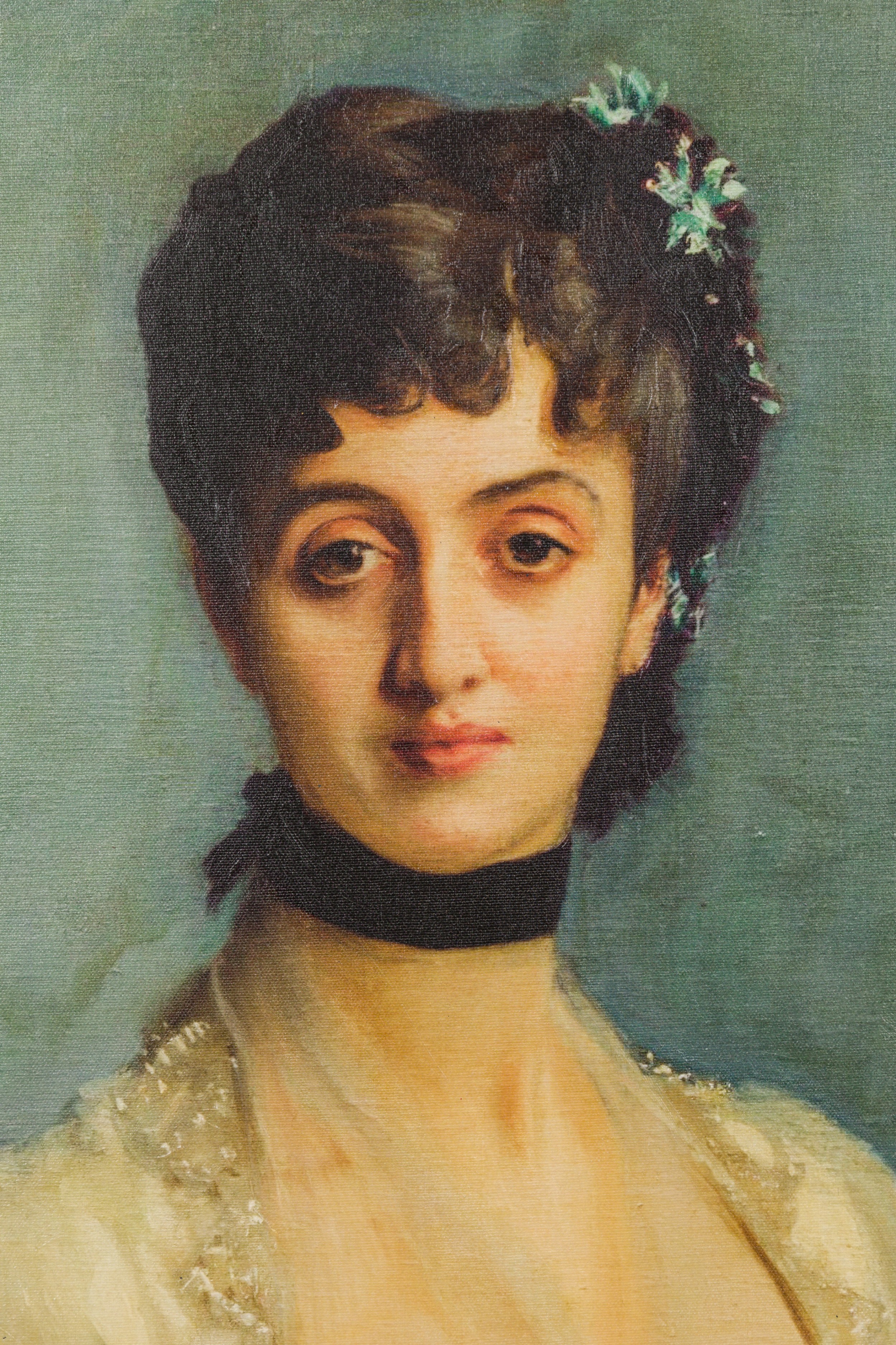 Framed American Victorian Style Canvas Print of an Oil Portrait Depicting a Lady with a Corsage