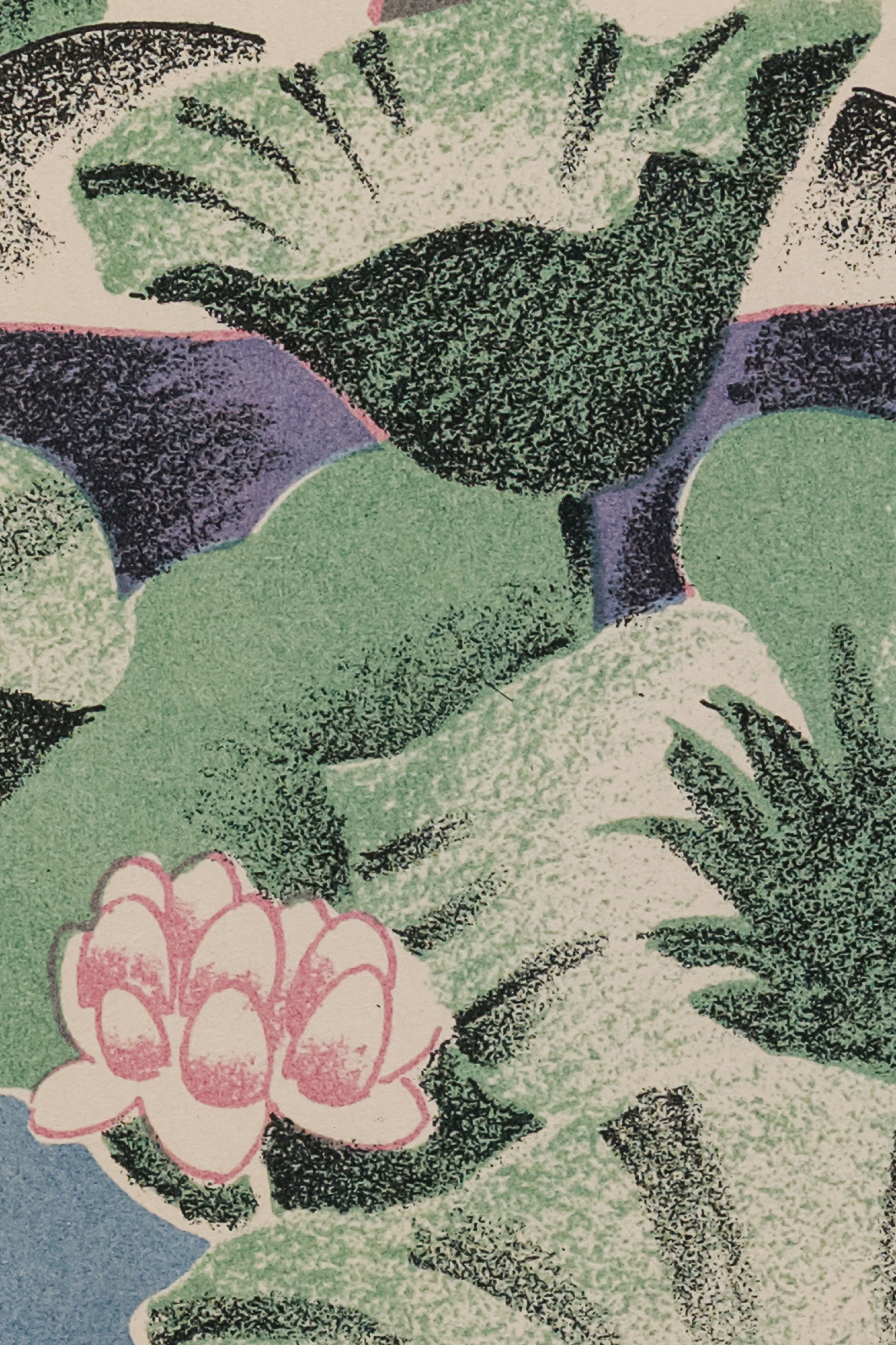 Framed Art Nouveau Style Abstract Landscape Print of Water Lilies on a Riverbank