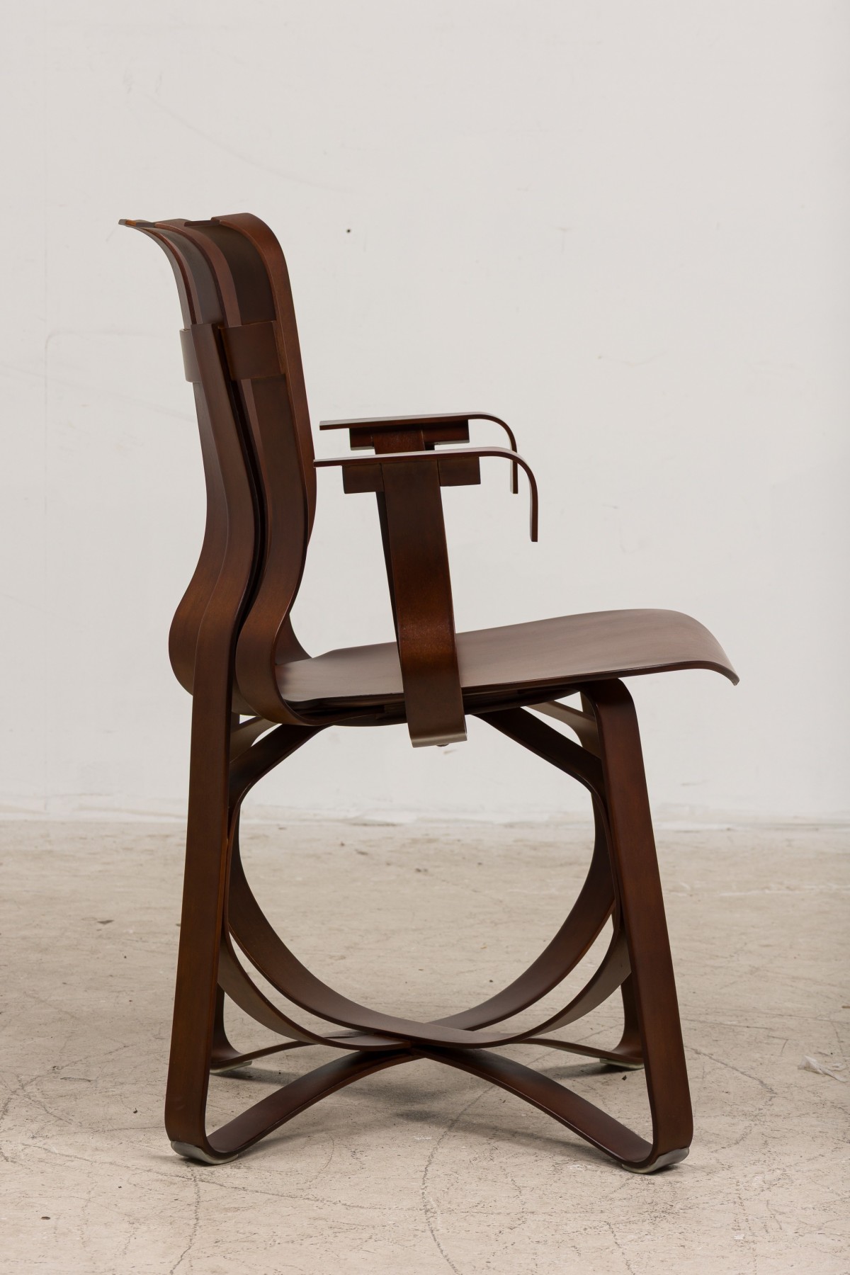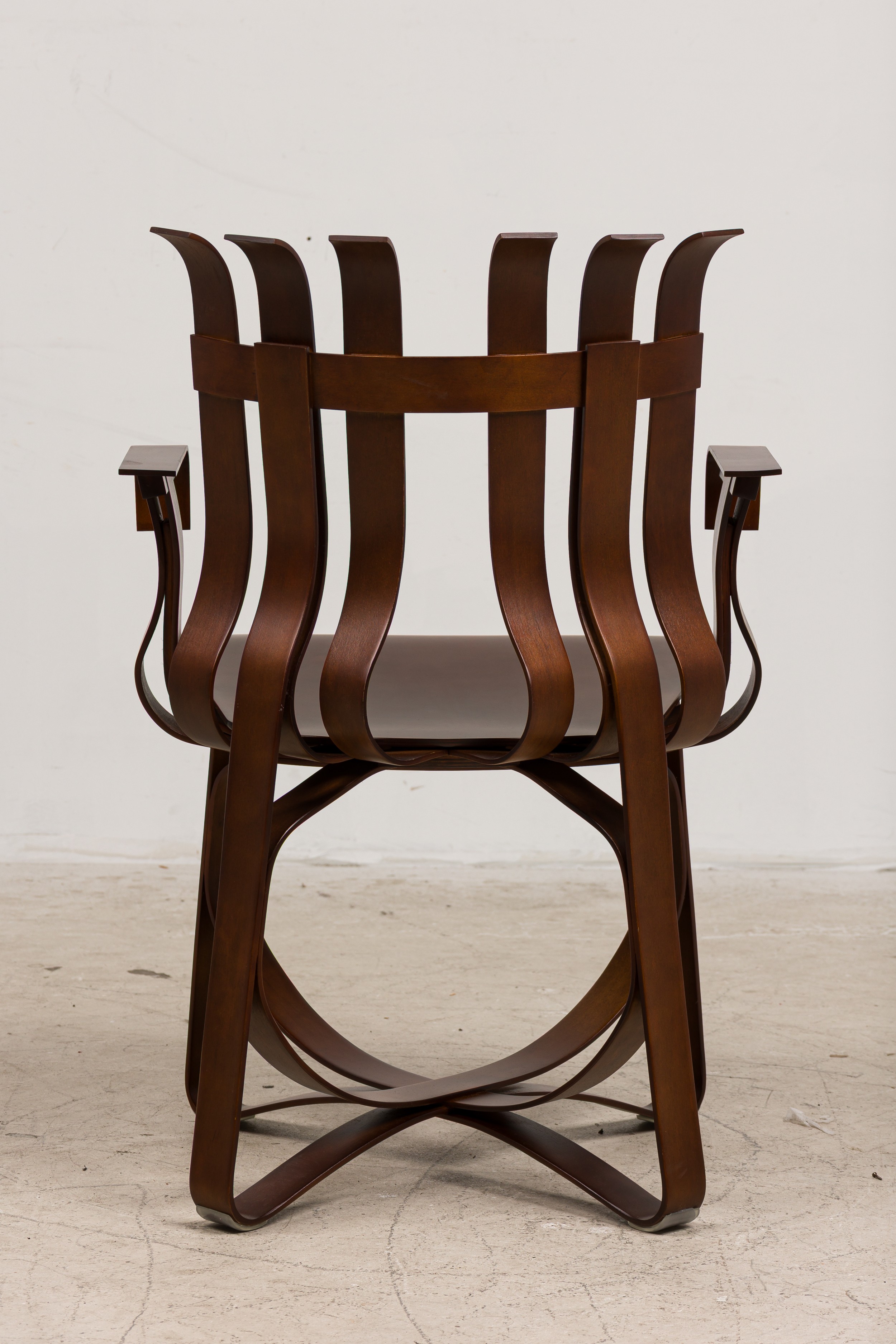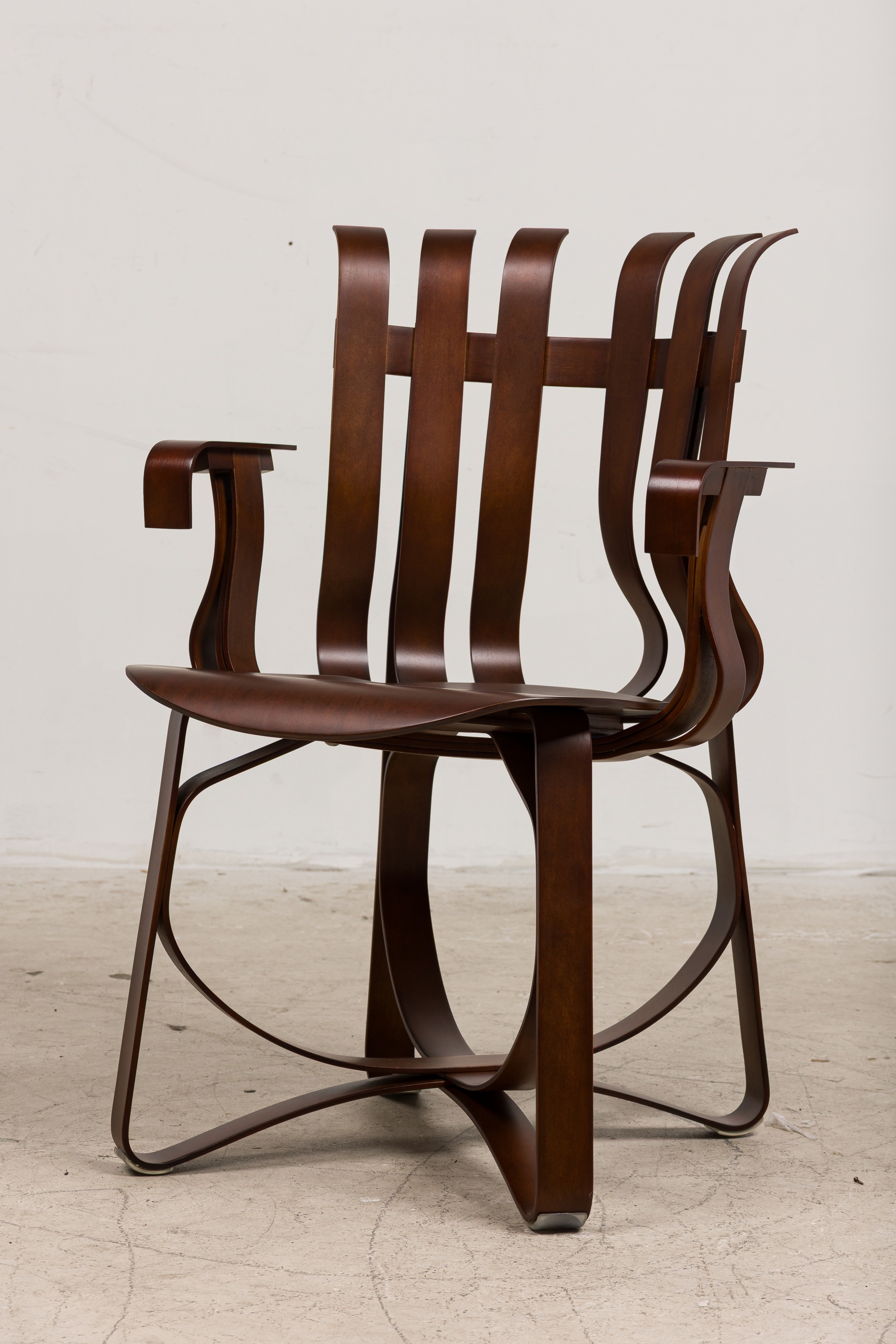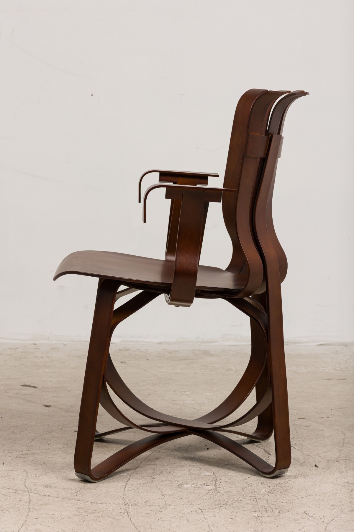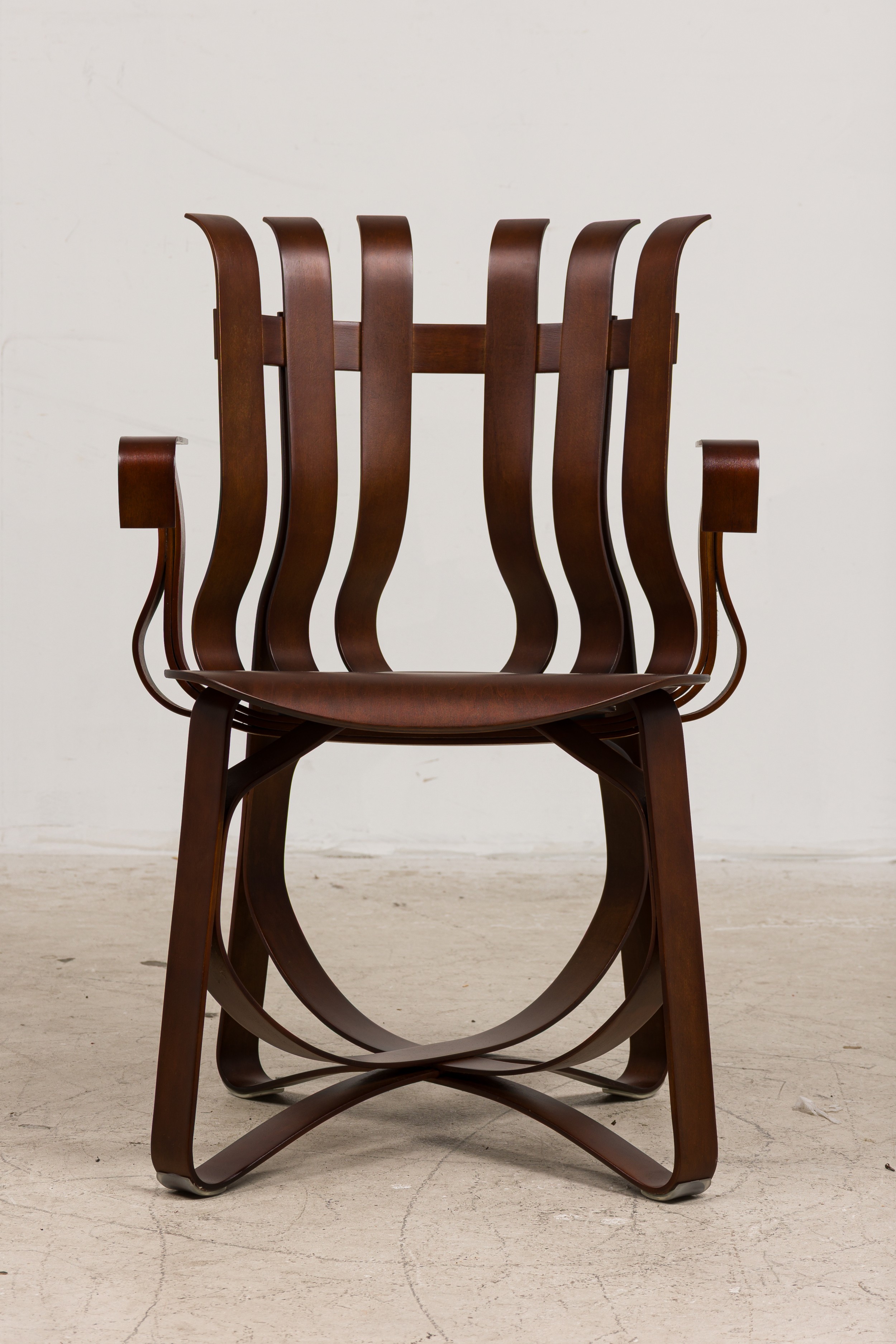 34 Contemporary (1990) natural hard maple armchairs constructed with steam bent maple veneer boards joined with thermo-set glue in a ribbon-like design (FRANK GEHRY for KNOLL) (PRICED EACH)
