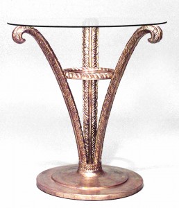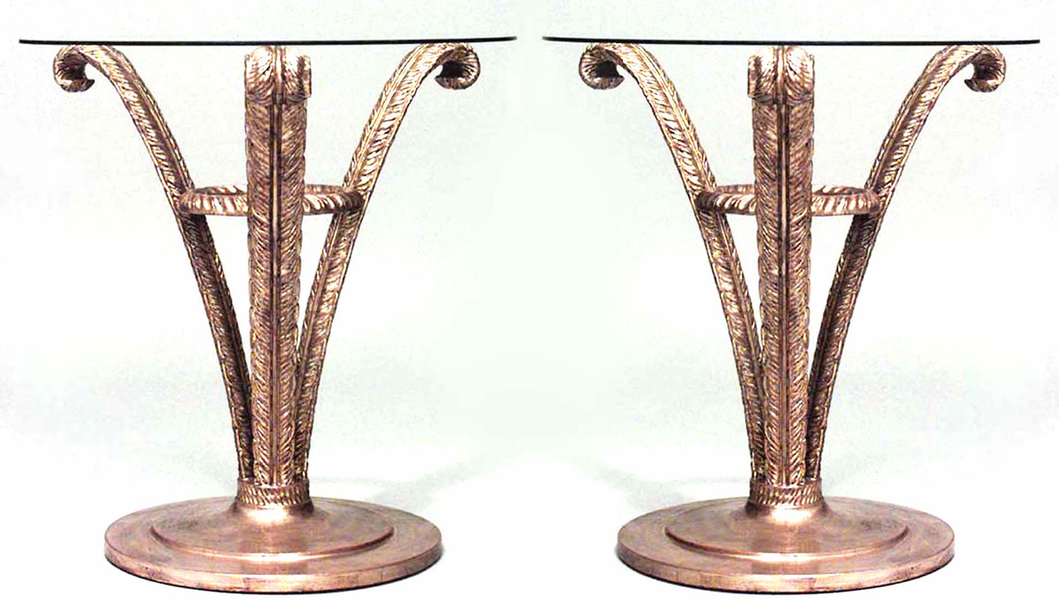 2 French Mid-Century (1940s) gilt end tables with triple plume base and round glass top. (PRICED EACH)