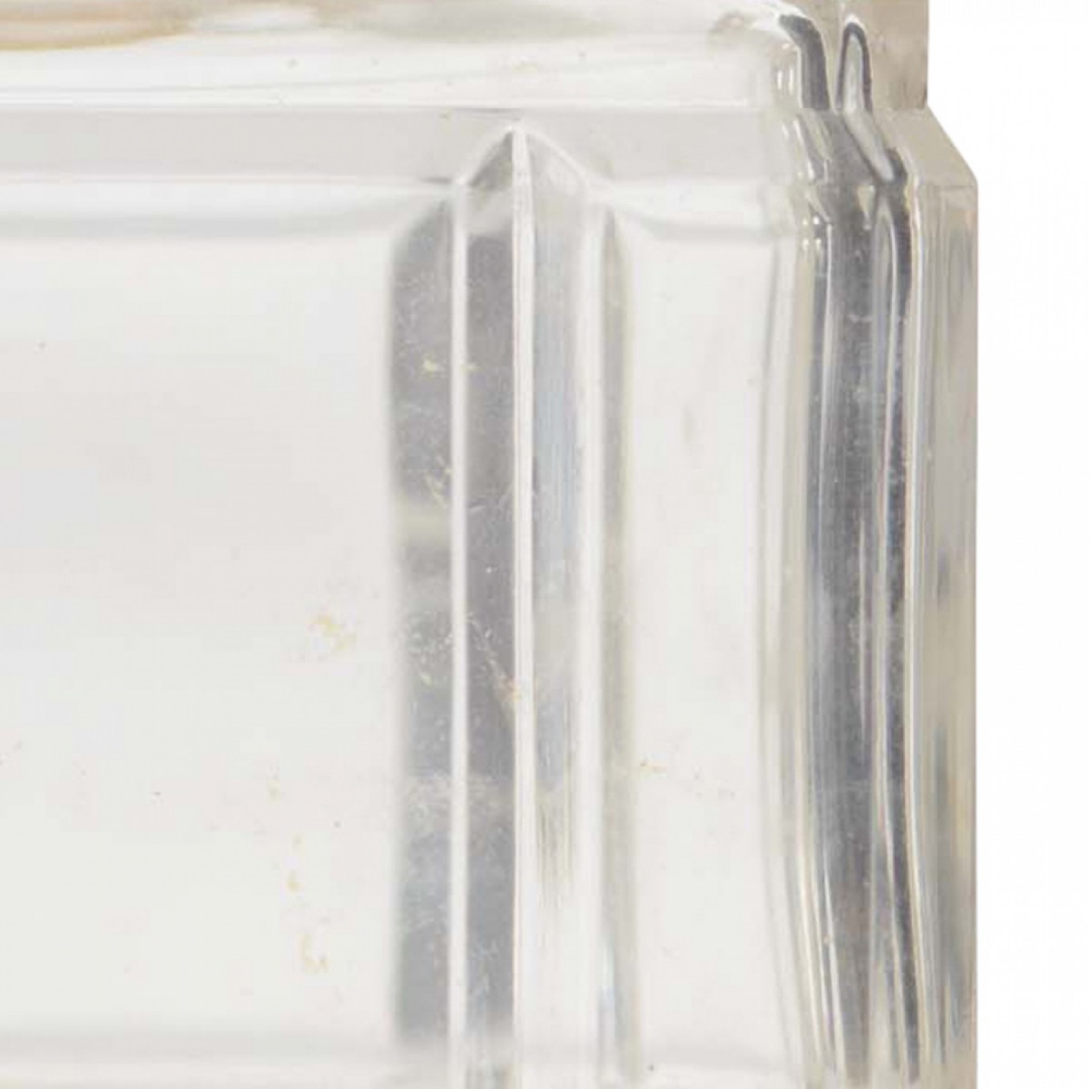 French Art Deco rectangular glass bottle with vertical ridges and a faceted stopper (signed BACCARAT "Bellogia")