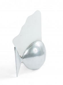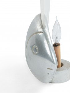 French Art Deco pewter fish shaped table lamp with frosted glass fin