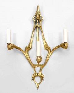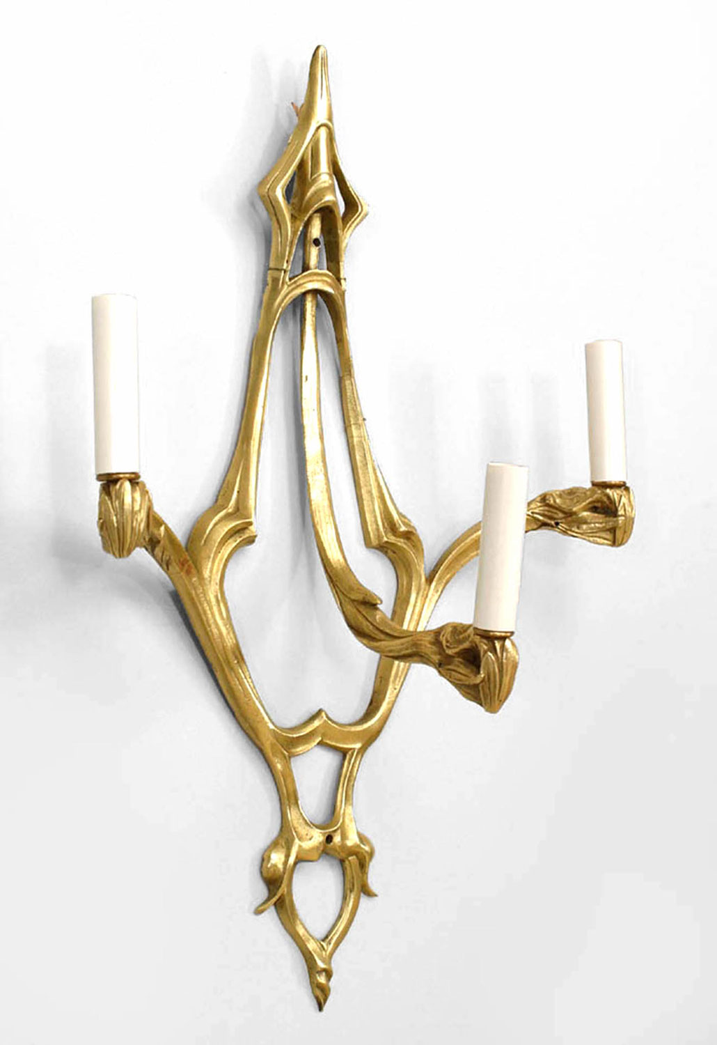 2 French Art Nouveau bronze dore 3 arm wall sconces with whiplash design (PRICED EACH)