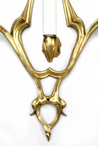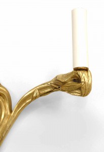 2 French Art Nouveau Bronze Dore Wall Sconces