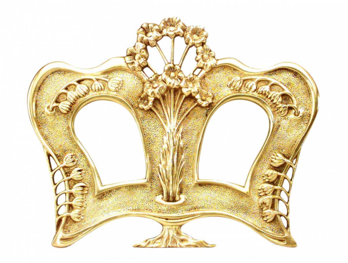 French Art Nouveau bronze double picture easel frame with floral motifs.