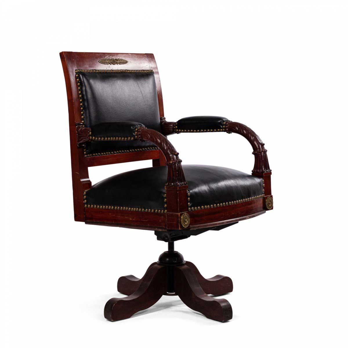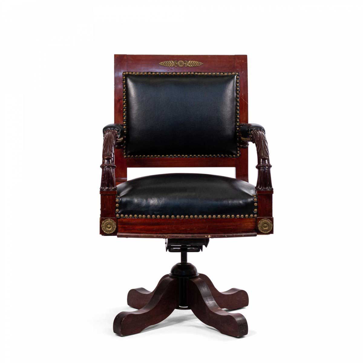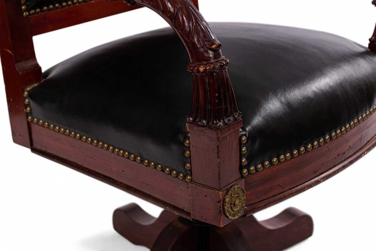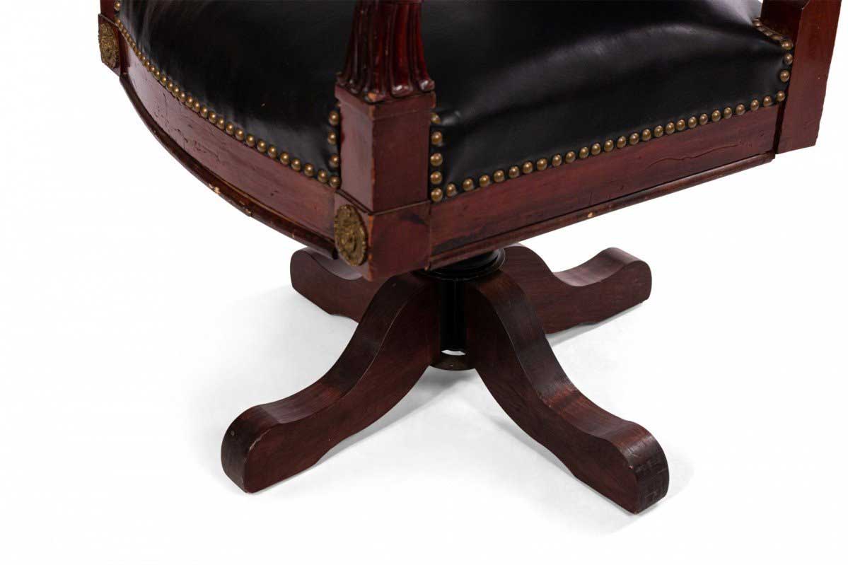 French Empire Style Black Leather Swivel Chair