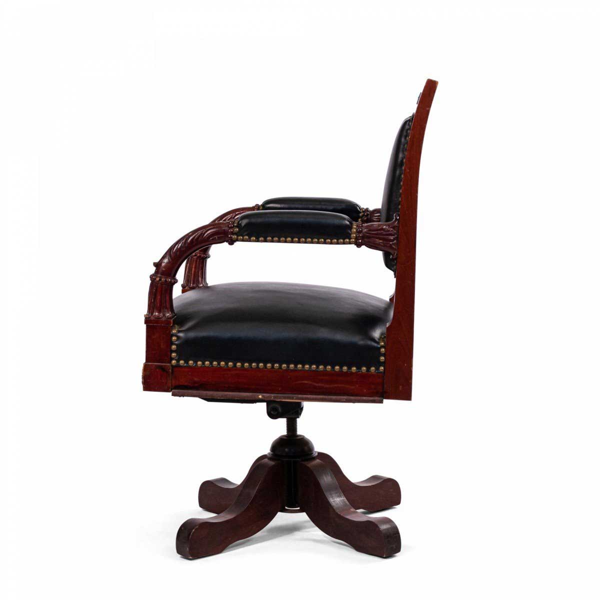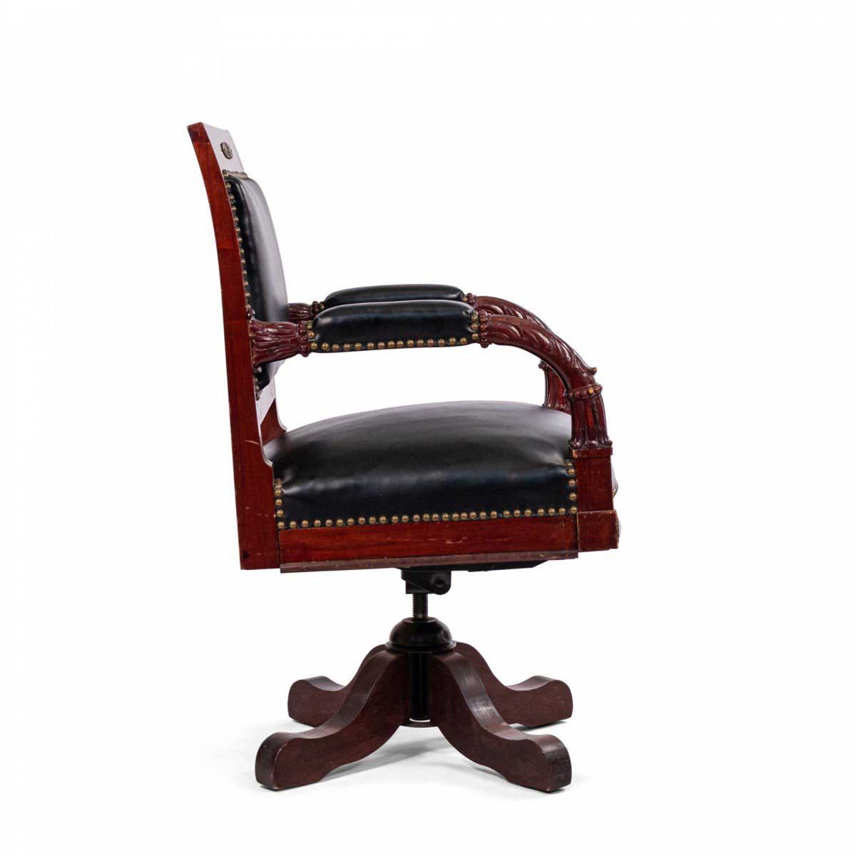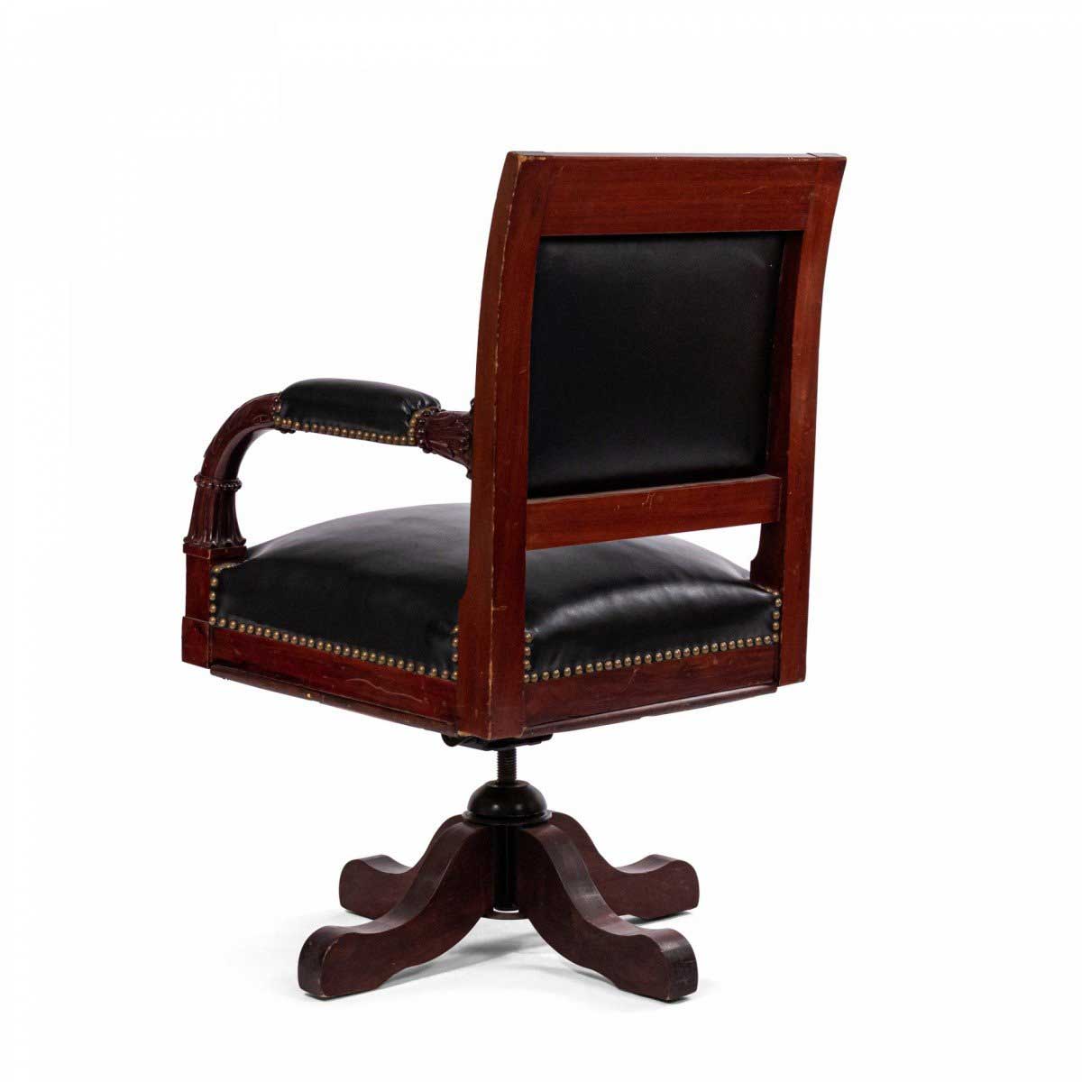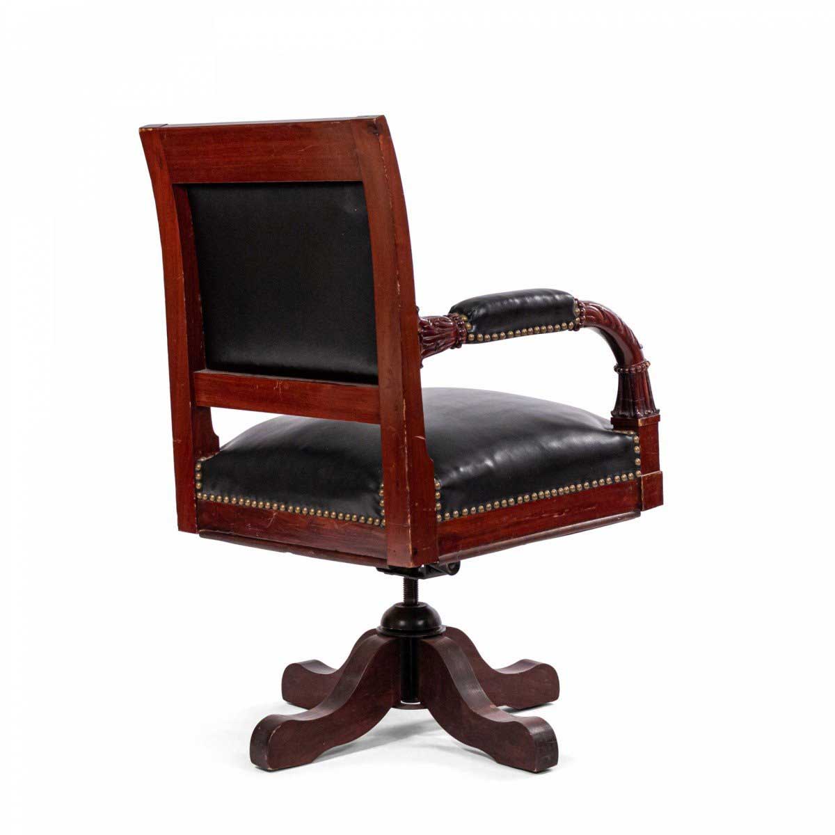 French Empire Style Black Leather Swivel Chair