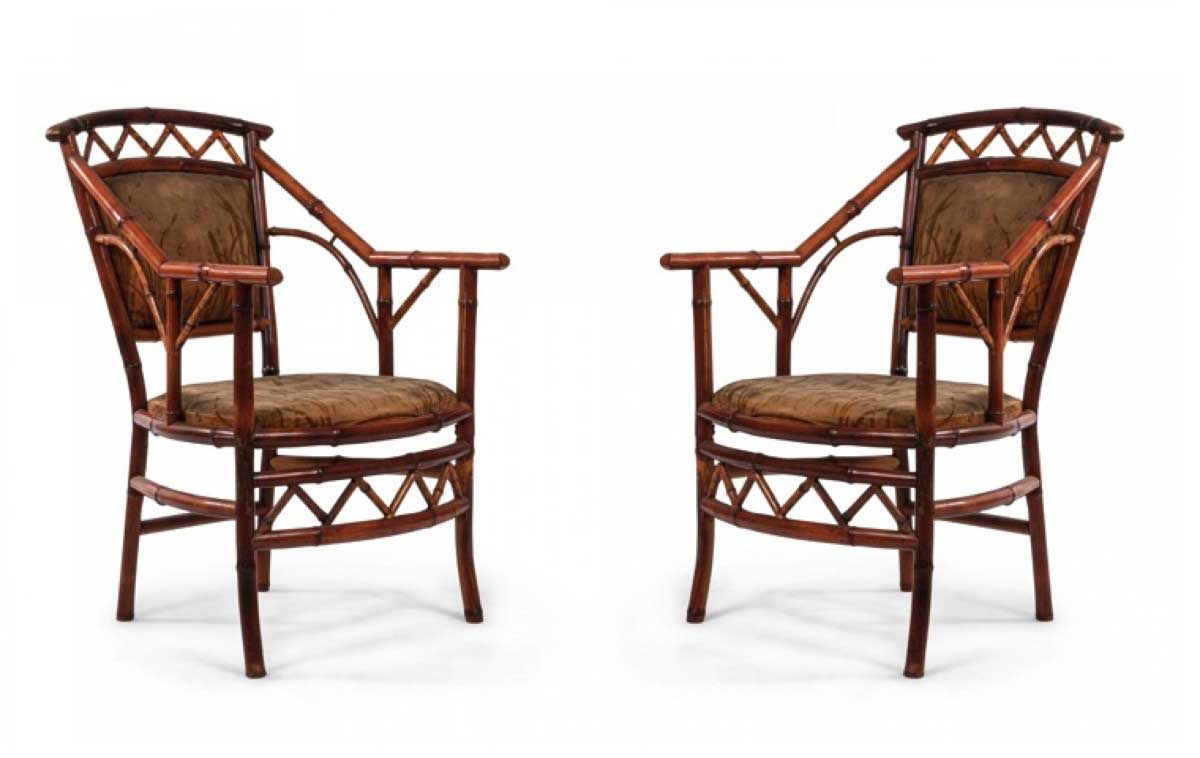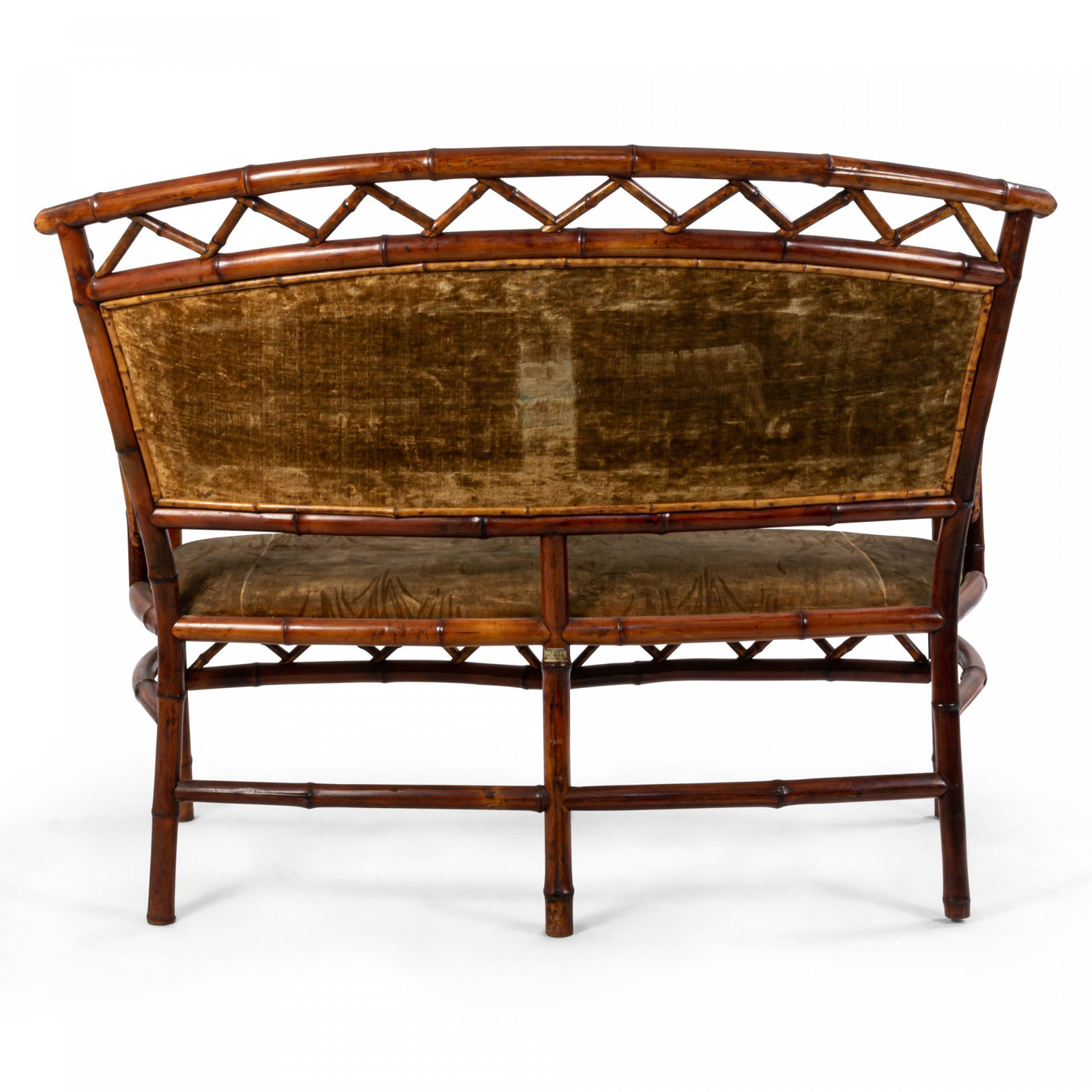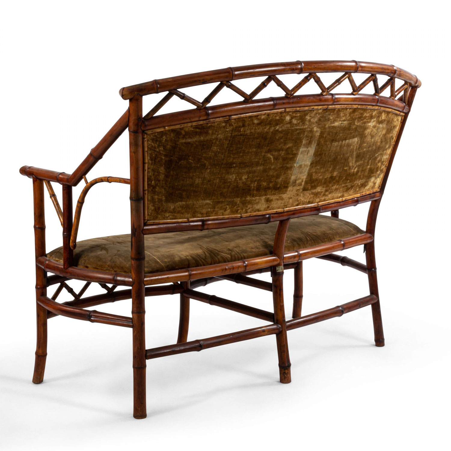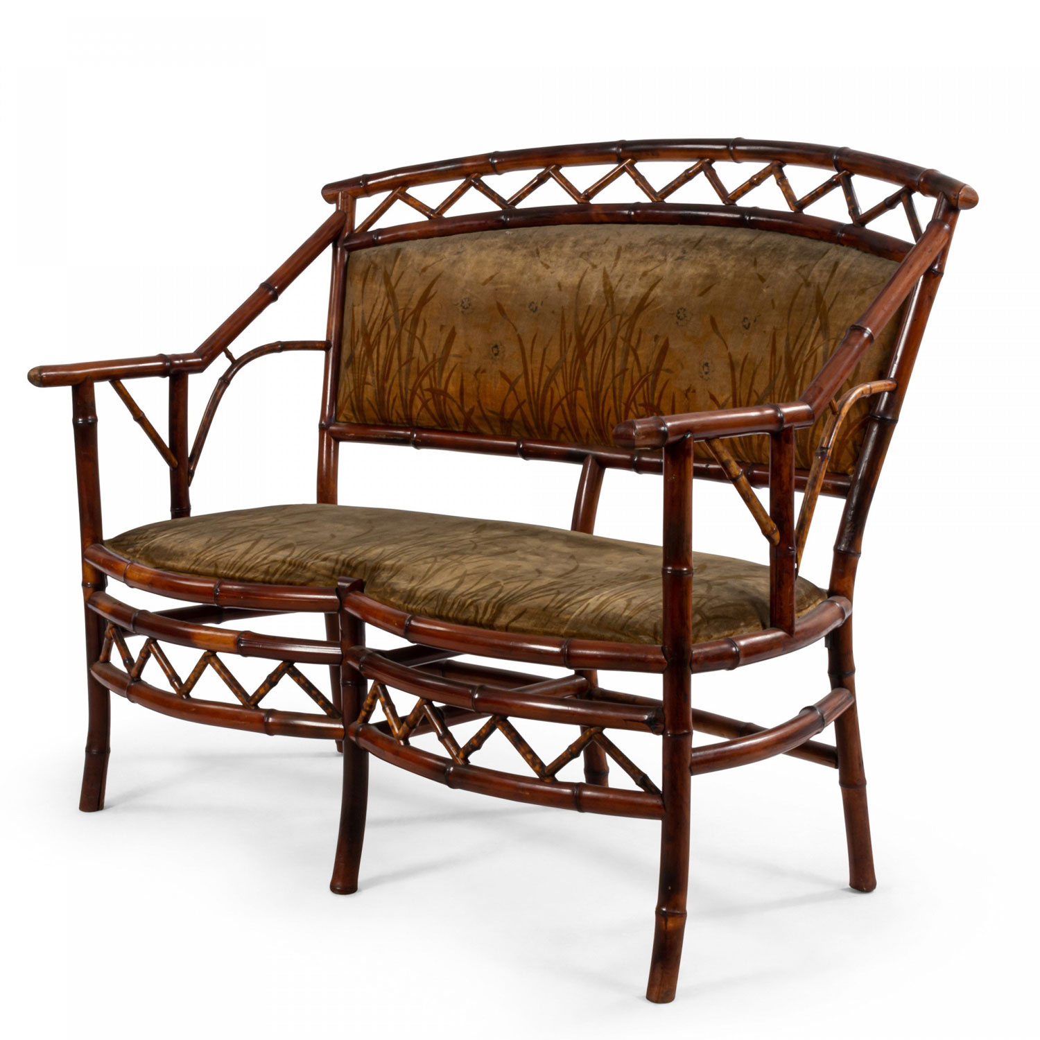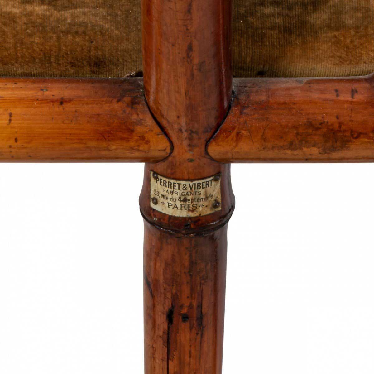5 piece French (19th C) bamboo salon set with floral green velvet seat and back (signed plaque: PERRET & VIBERT, Paris) (Available individually: Loveseat: 059012A, 2 armchairs: 059012B, 2 side chairs: 059012C)