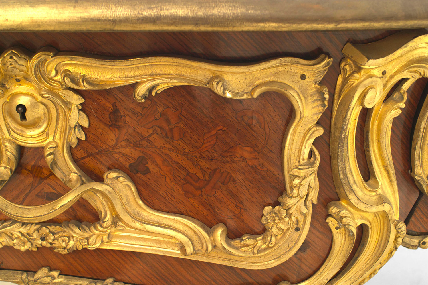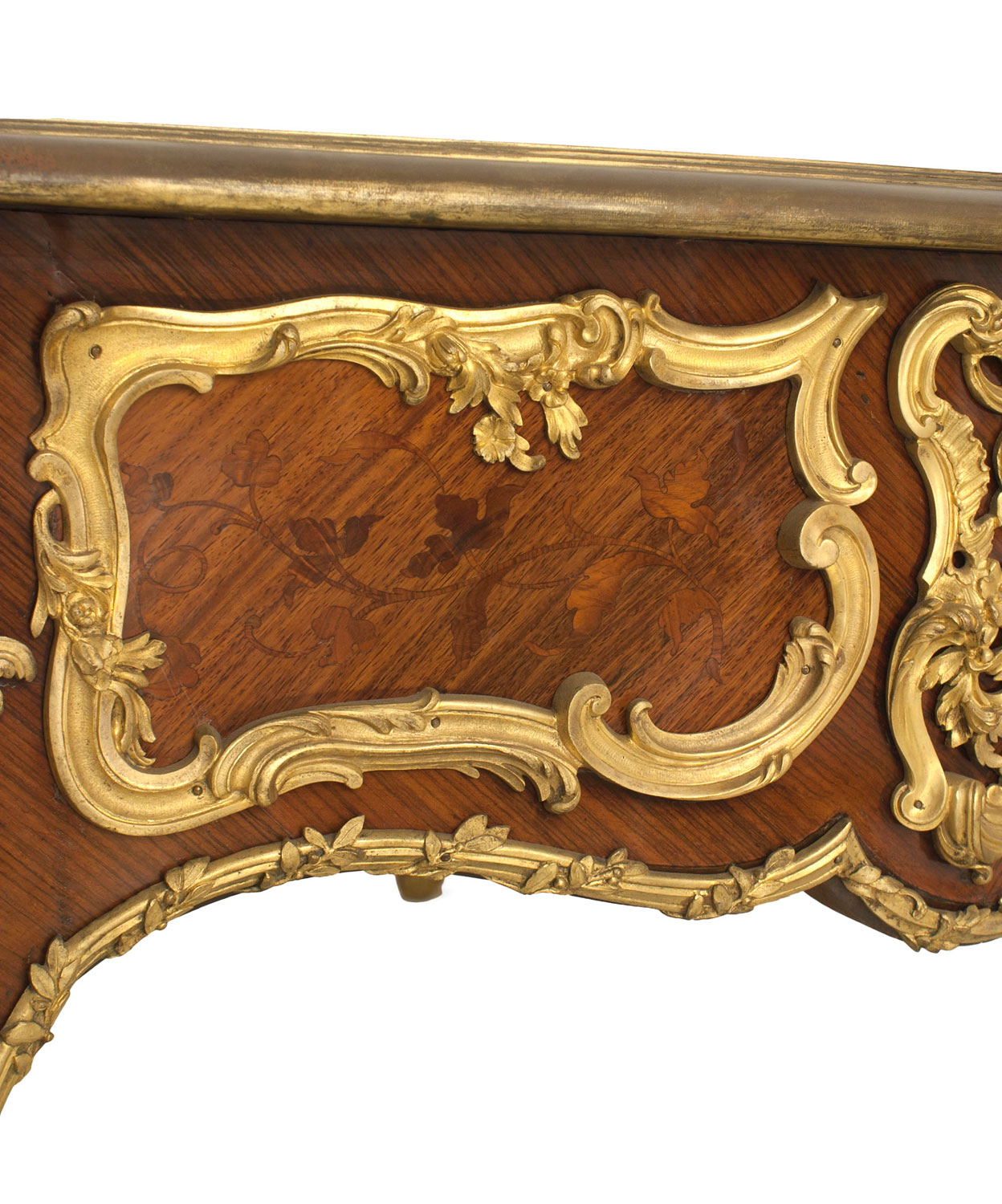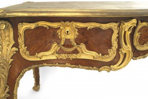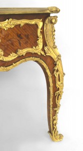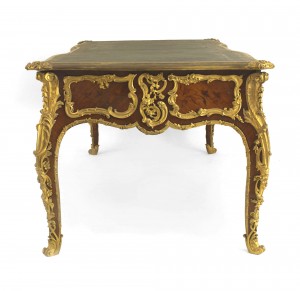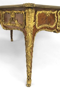 French Louis XV Style Kingwood and Gilt Desk with Leather Top