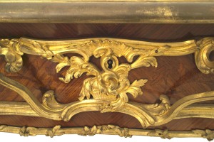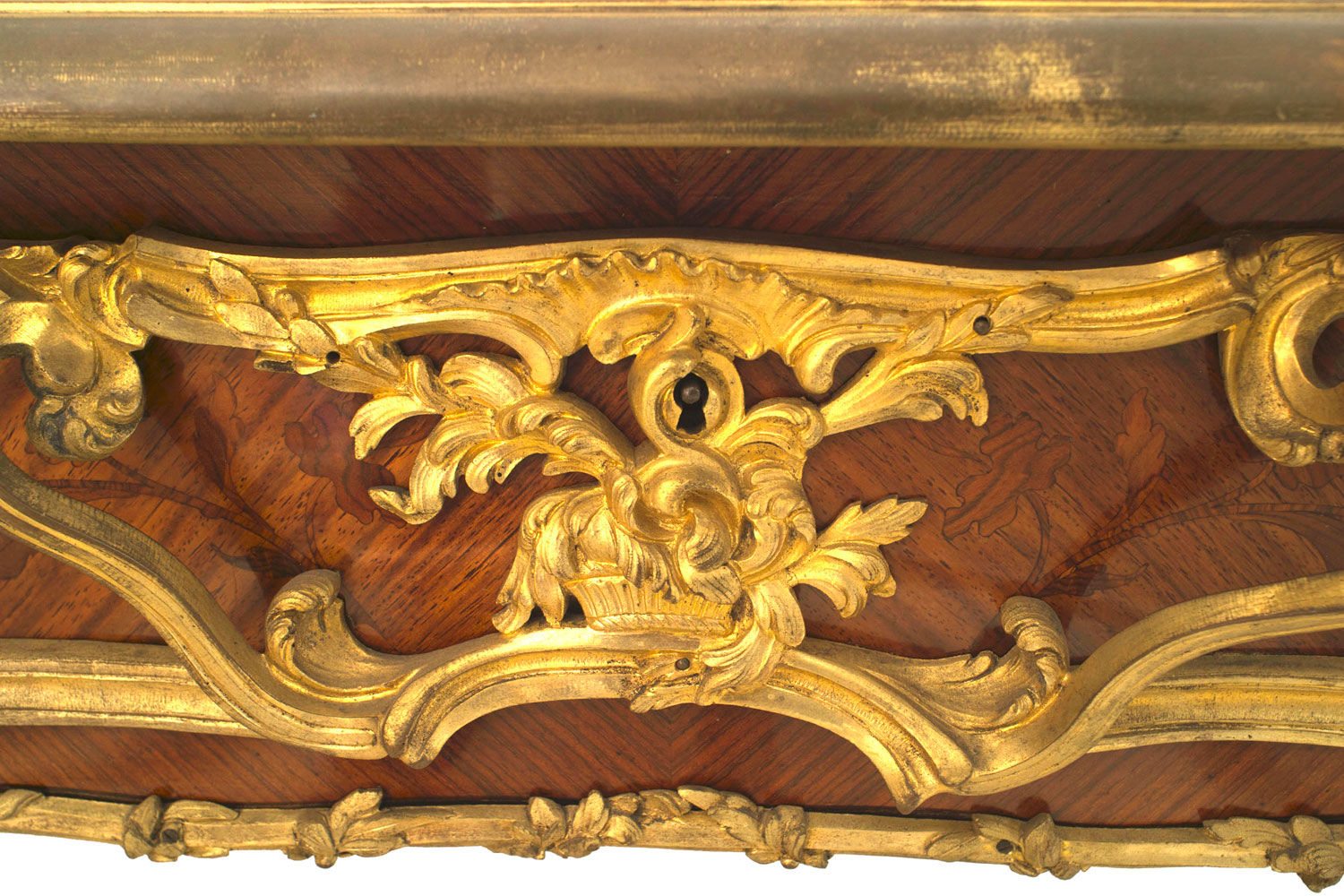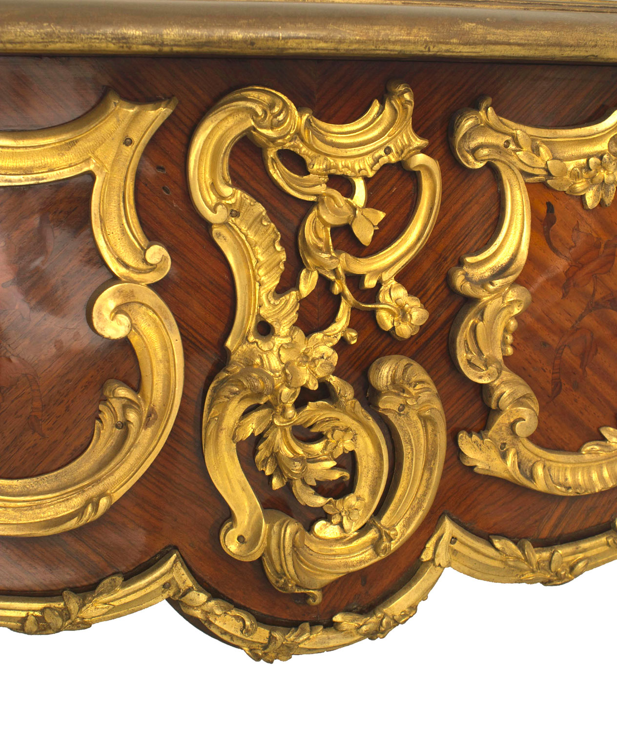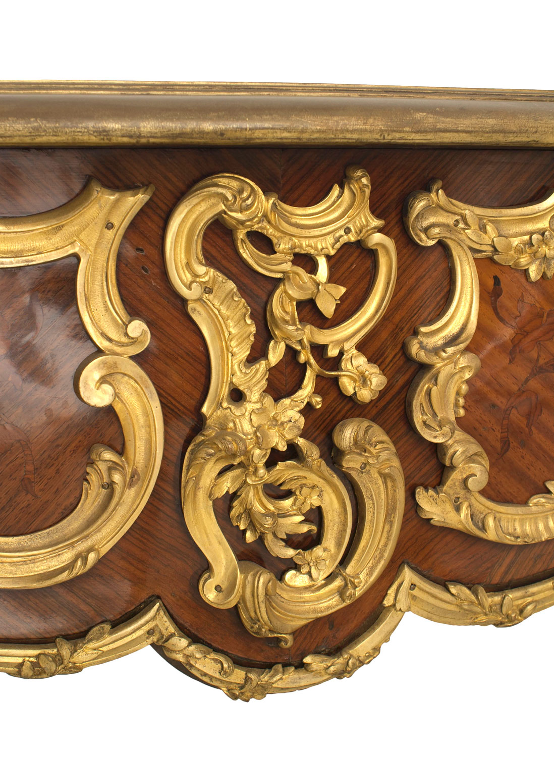 French Louis XV Style Kingwood and Gilt Desk with Leather Top