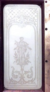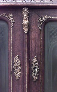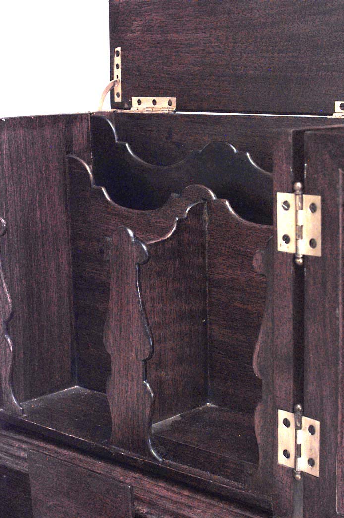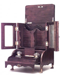 French Louis XV-style (19th Century) inkwell stand in the form of a miniature secretary with roll top and etched glass doors.