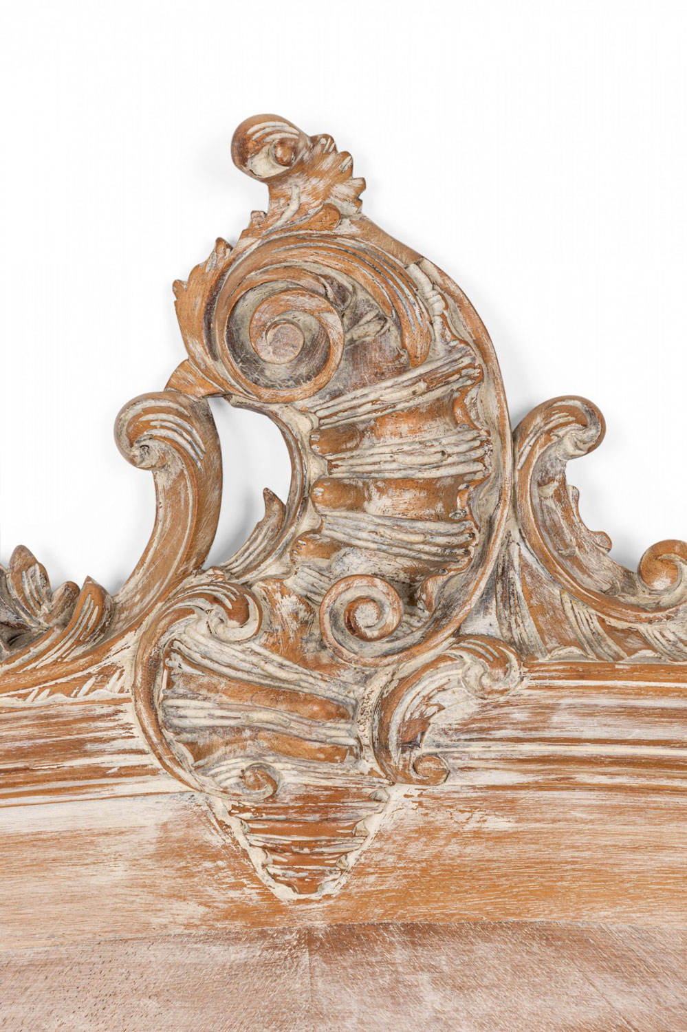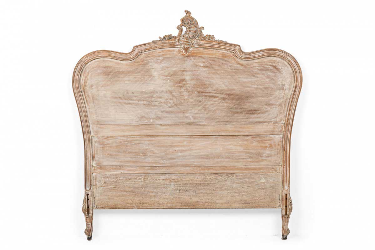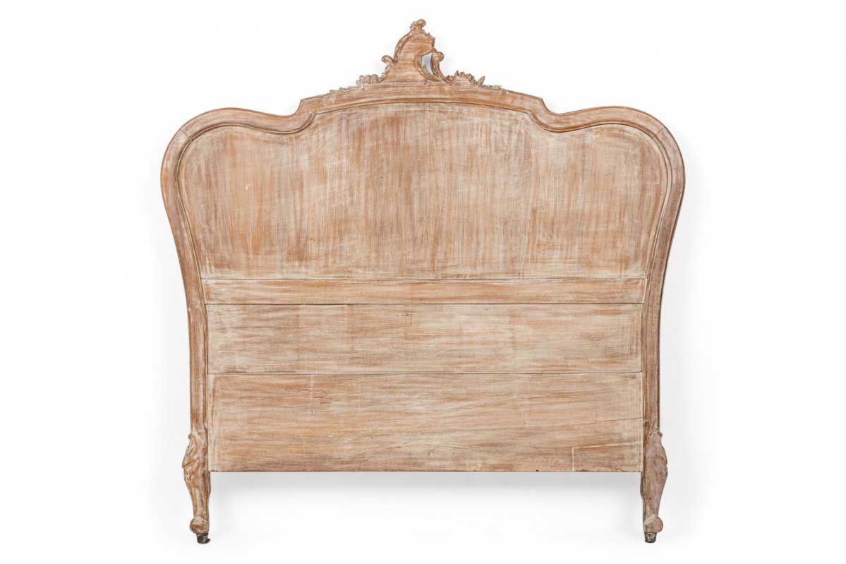 French Louis XV Provincial-style (19/20th Century) bleached full size bed. (Includes: headboard, footboard, and rails)