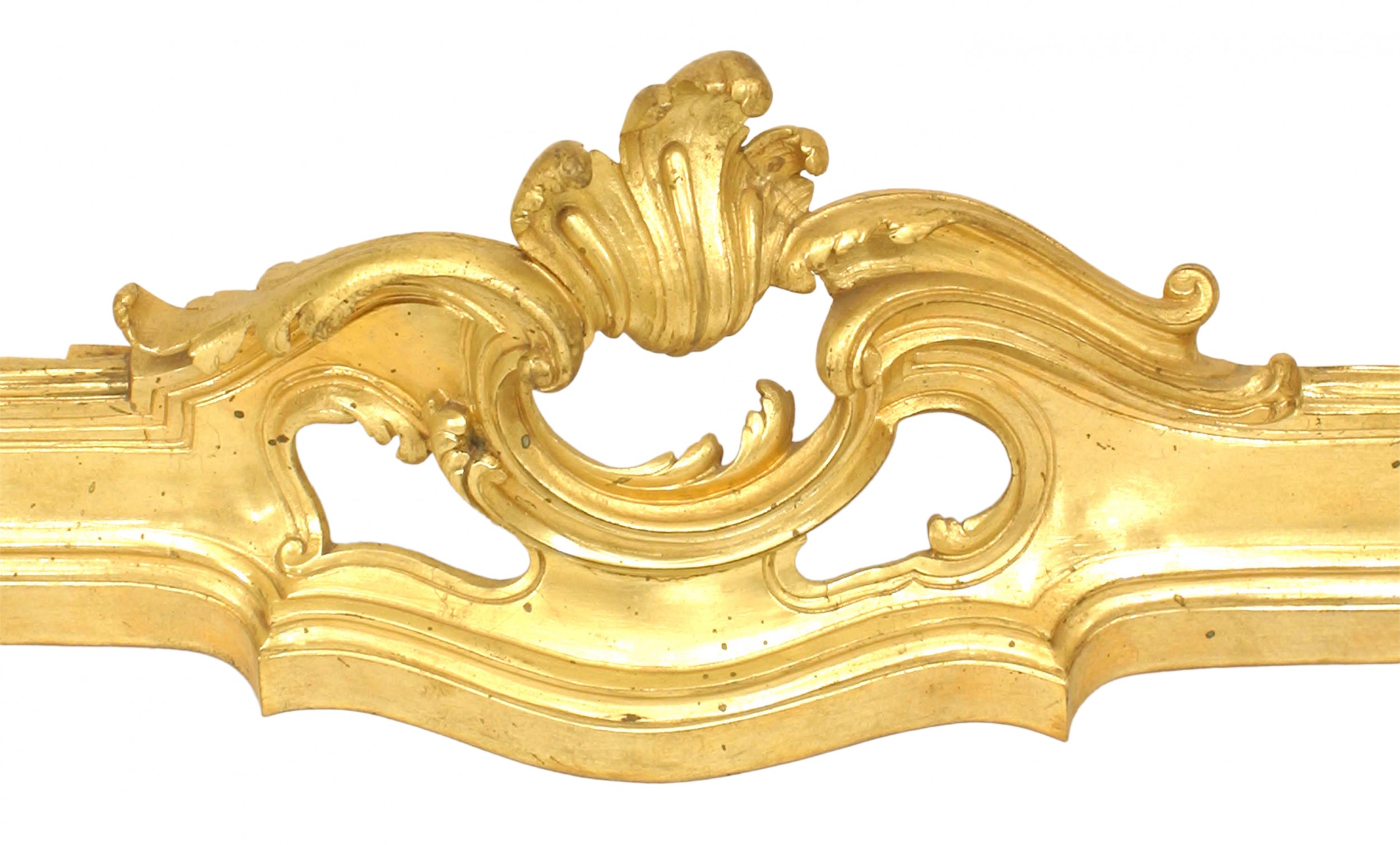 French Louis XV-style (19th Century) gilt bronze chenets & fire fender with scrolling foliate detail (chenets: 16¼"w x 6"d x 16¾"h)