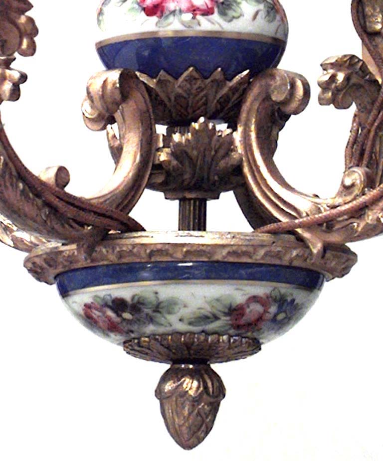 French Louis XV Style Sevres Porcelain and Bronze Chandelier