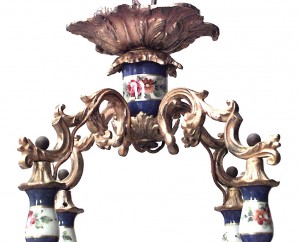 French Louis XV-style (19/20th Century) blue and white Sevres porcelain 4 arm chandelier with bronze dore trim.