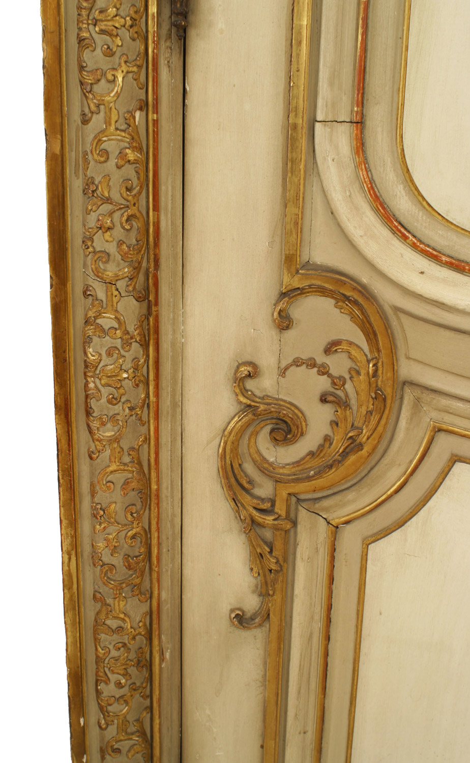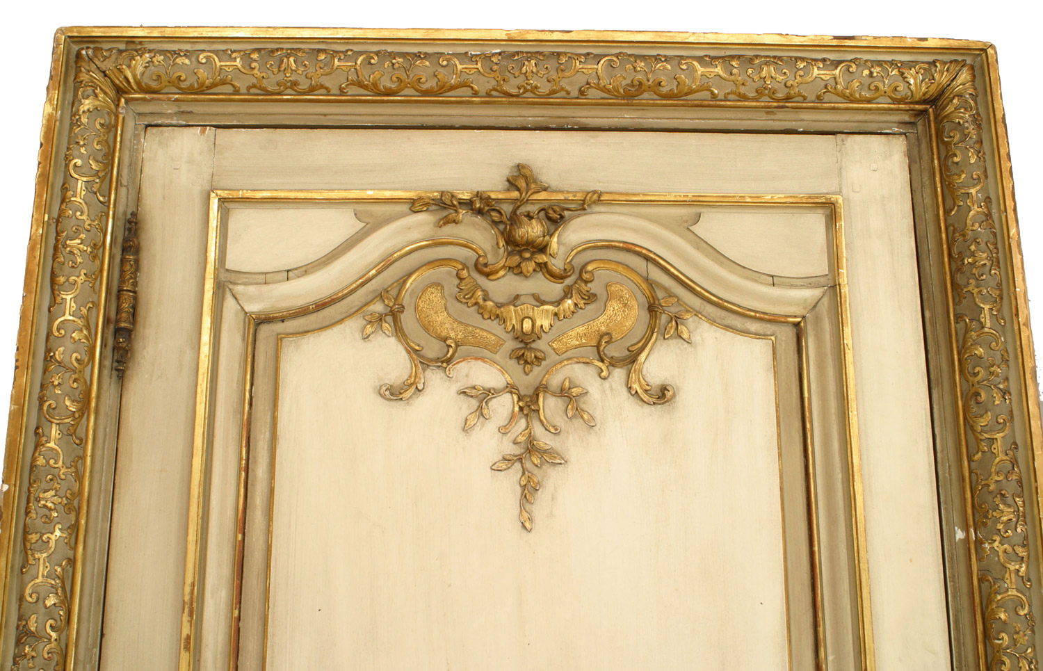 2 French Louis XV style (19th Century) white and gold painted and carved doors in frame (PRICED EACH).