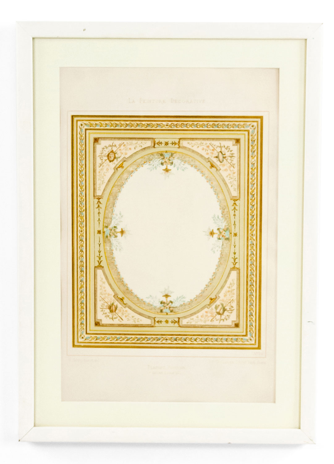 French Louis XVI architectural motif drawing in cream colored matting under glass in a white resin frame (See also: MP2074O, MP2074S, MP2074Q, MP2074P)