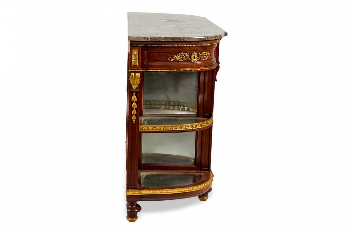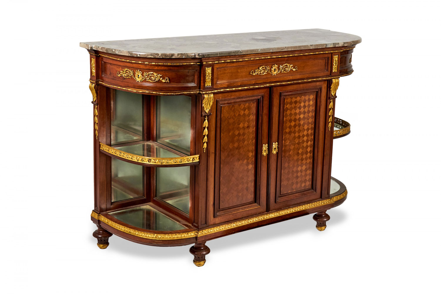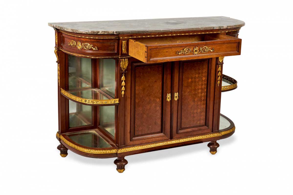 2 French Louis XVI-style (19th Cent) mahogany and bronze trimmed sideboard with mirrored side shelves and marble top. (PRICED EACH)