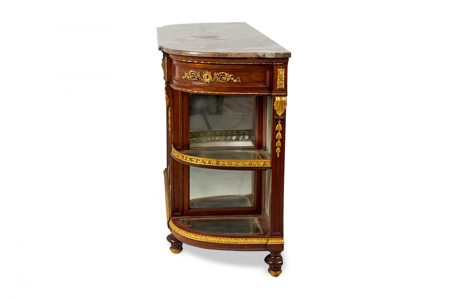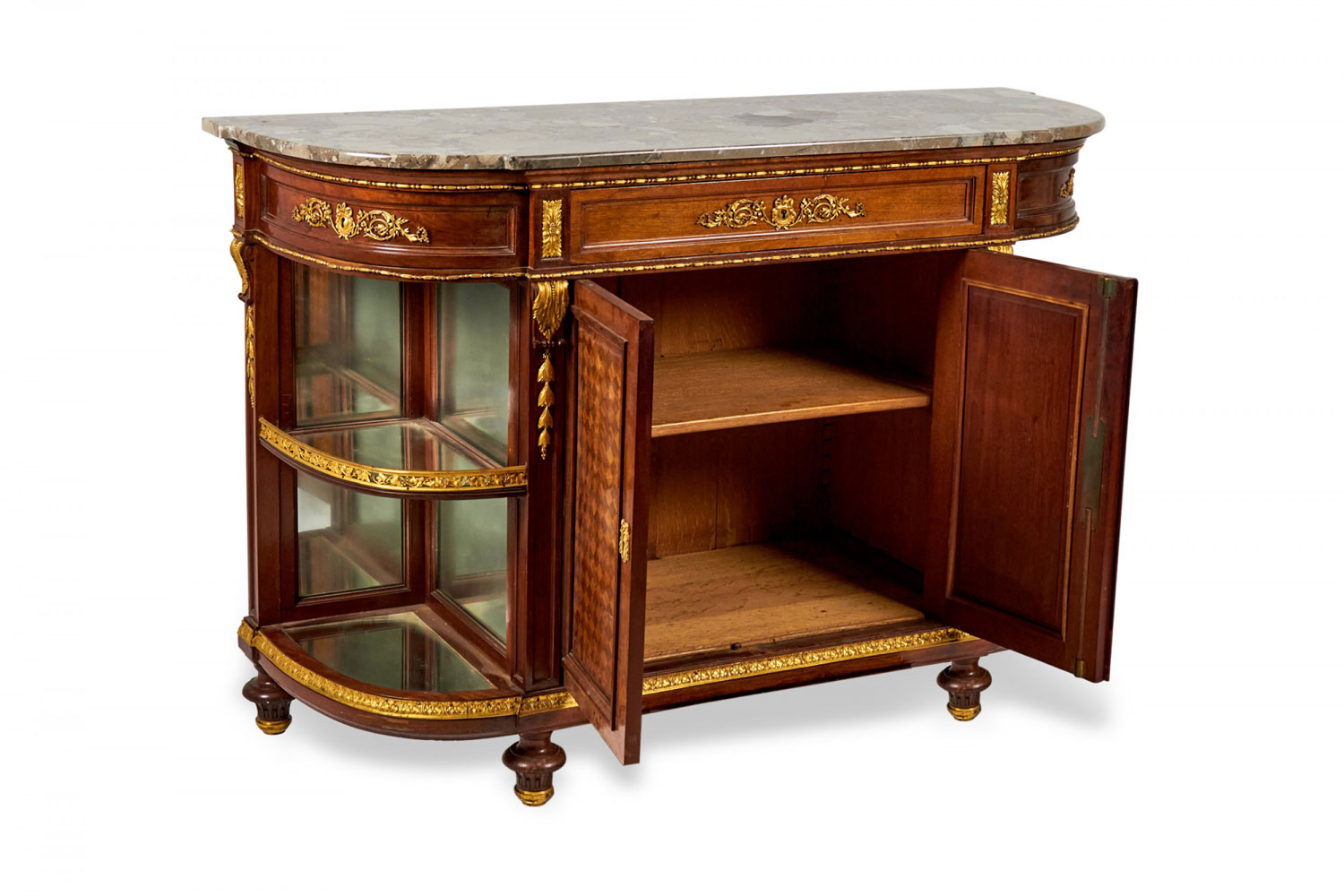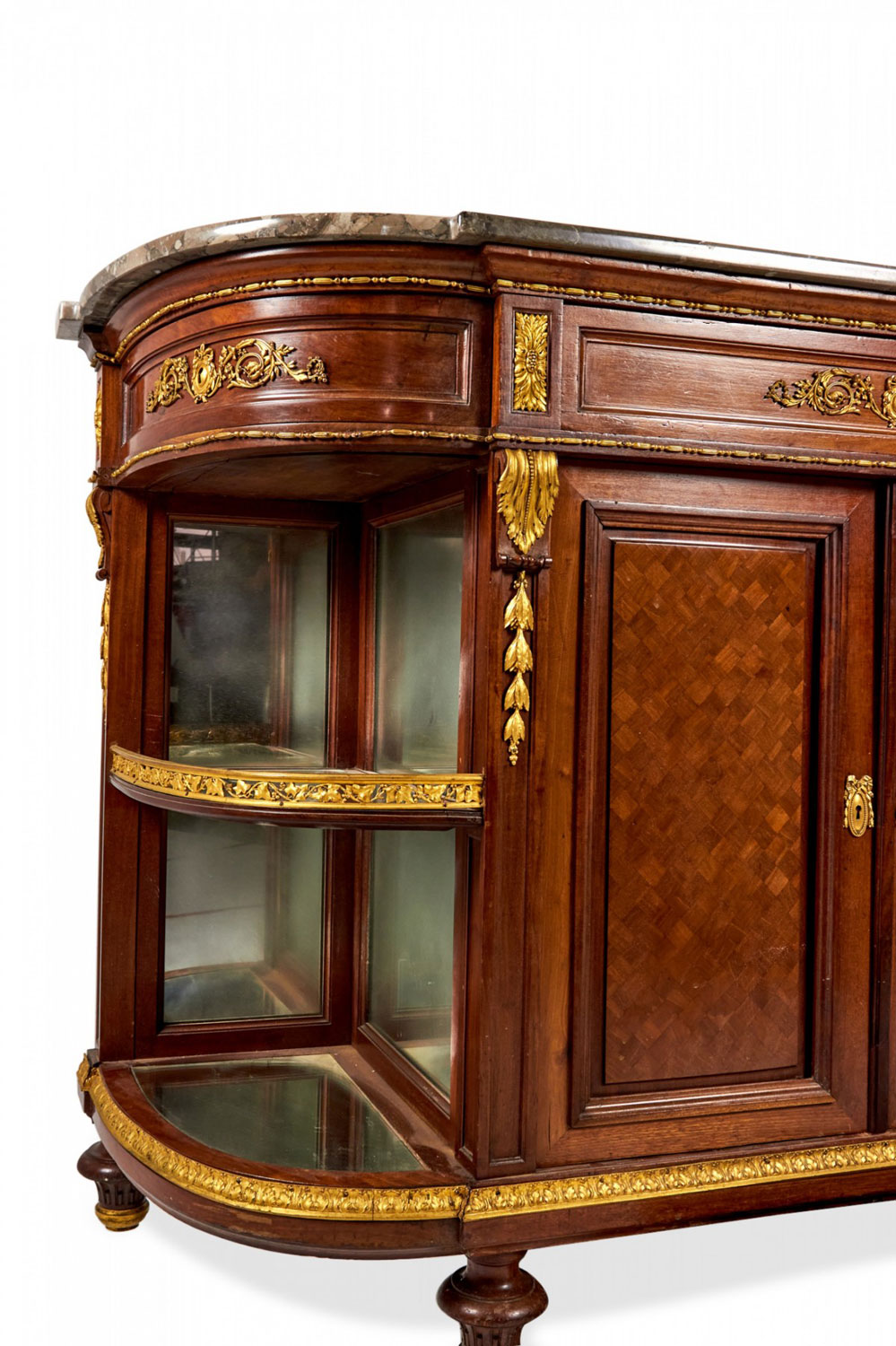 2 French Louis XVI-style (19th Cent) mahogany and bronze trimmed sideboard with mirrored side shelves and marble top. (PRICED EACH)