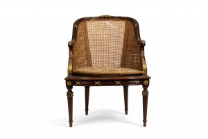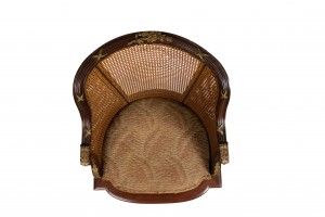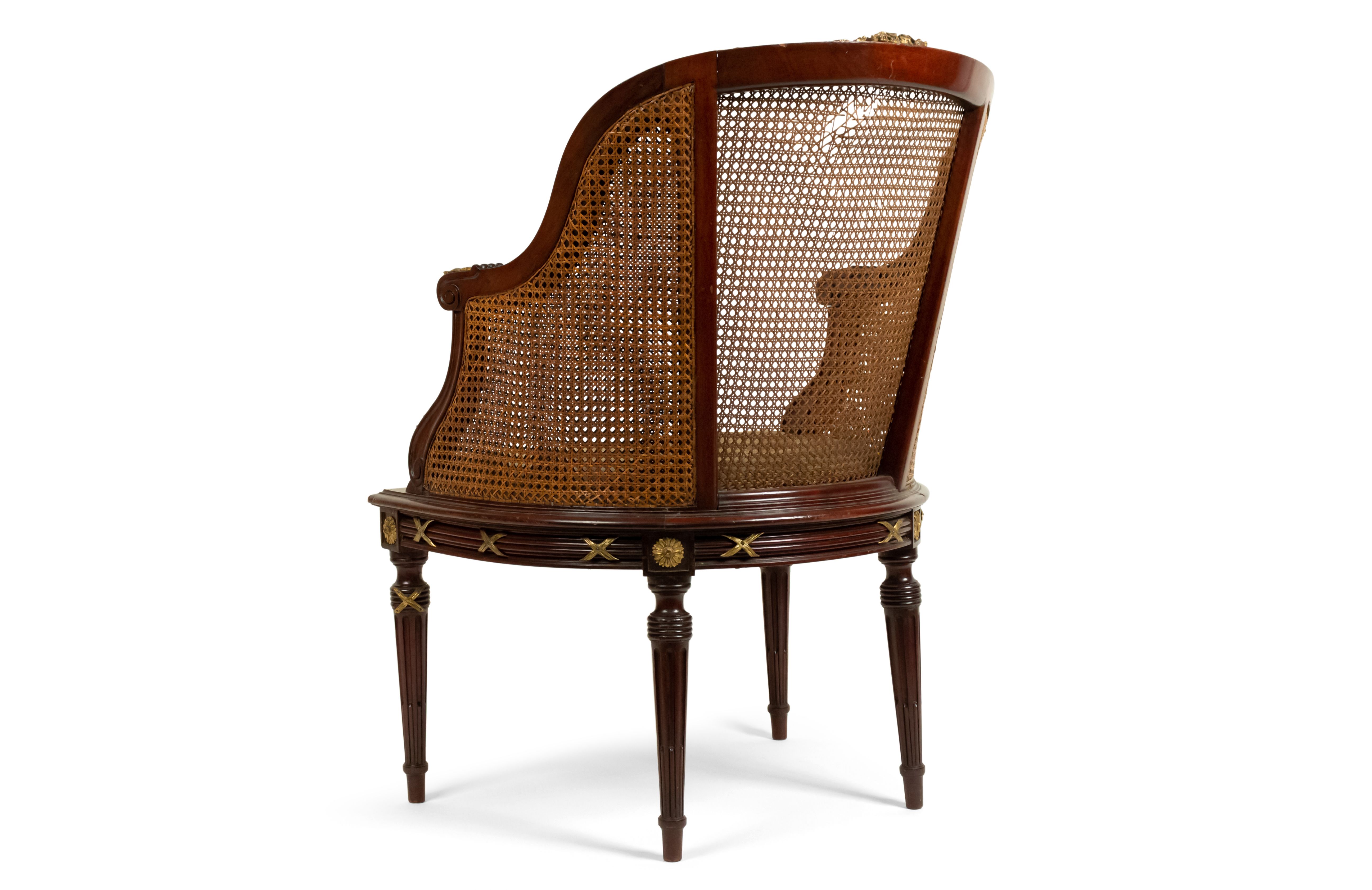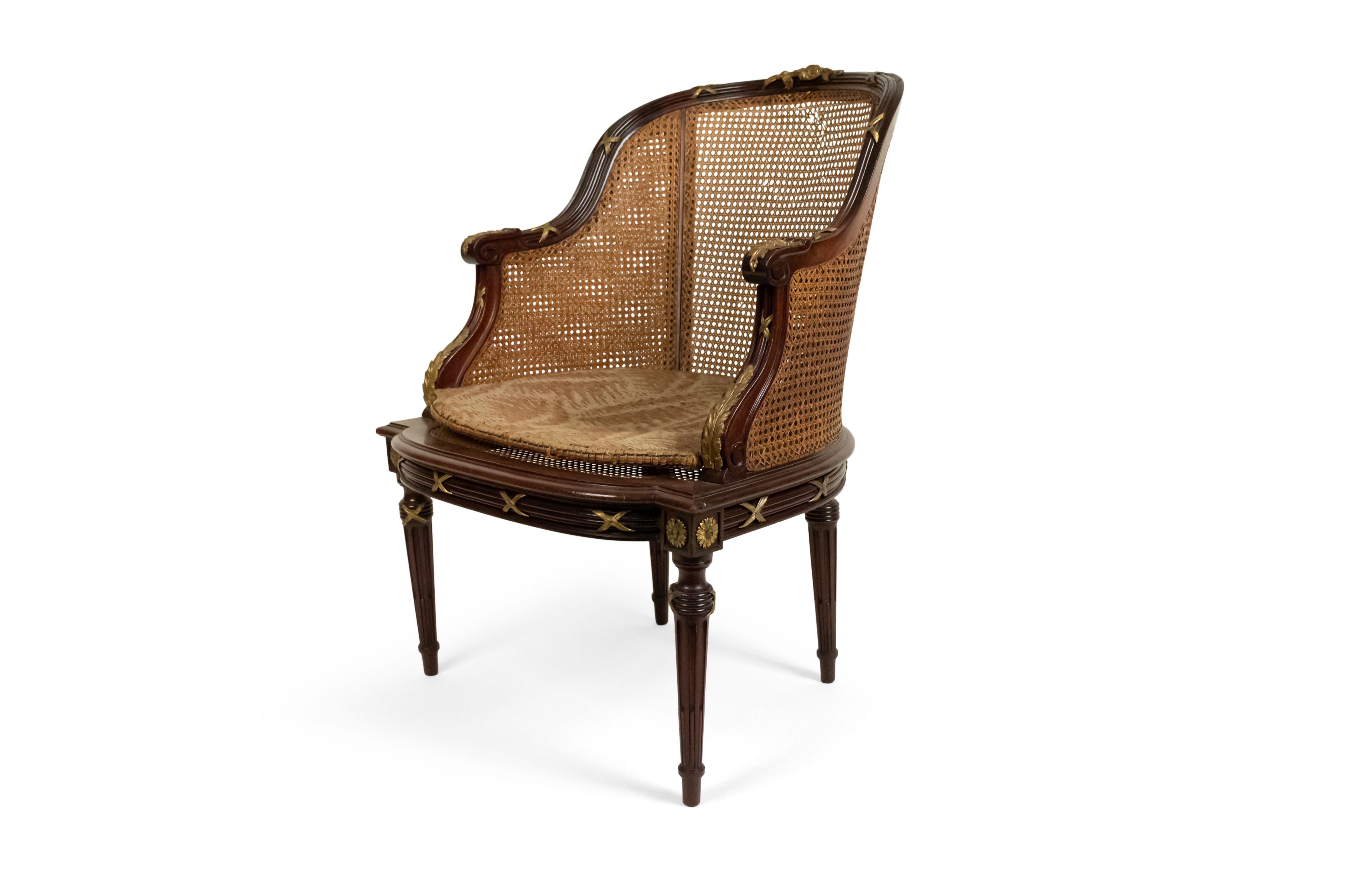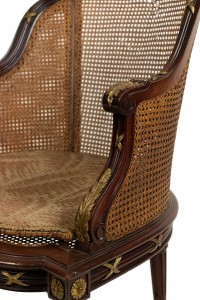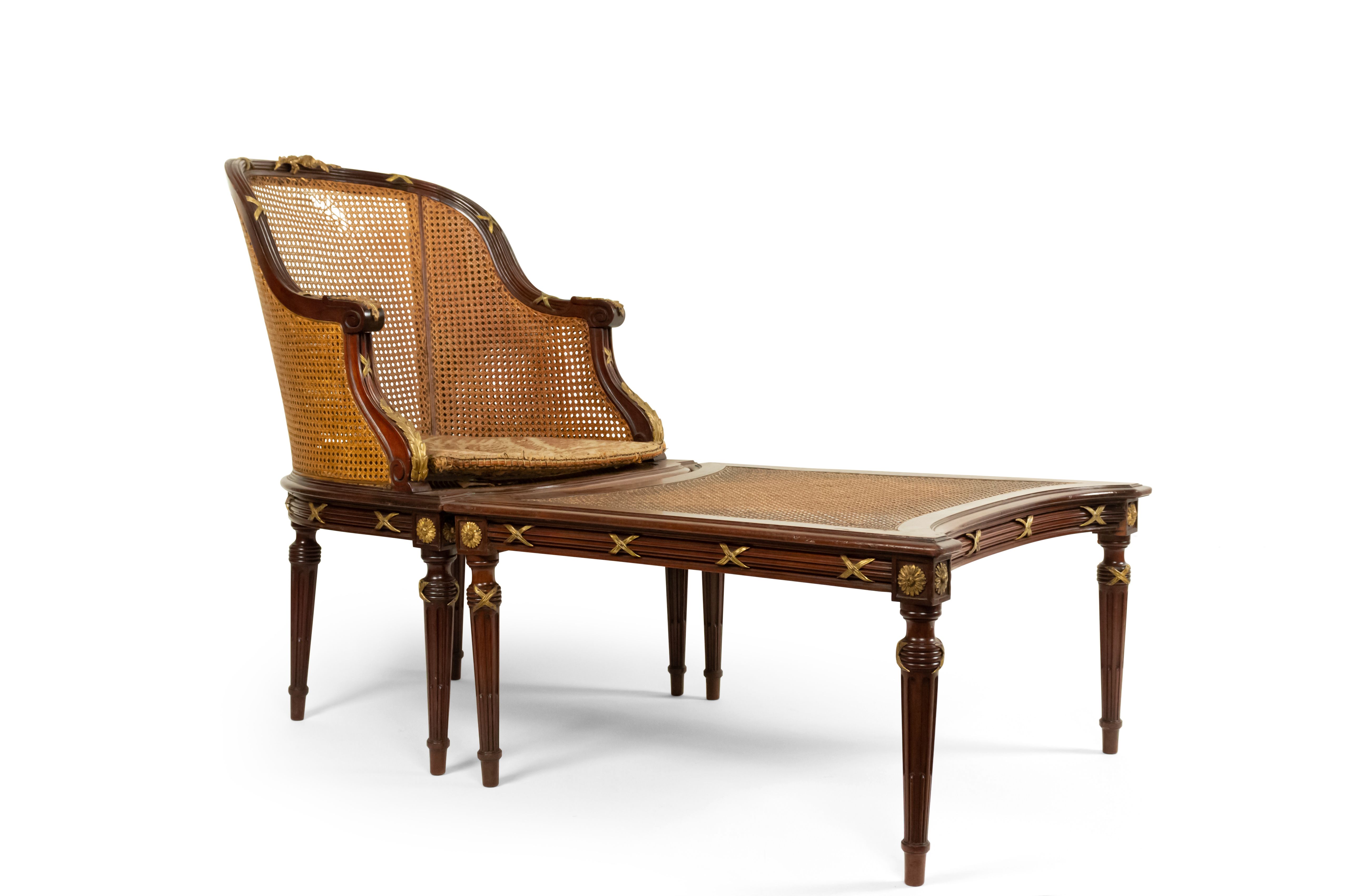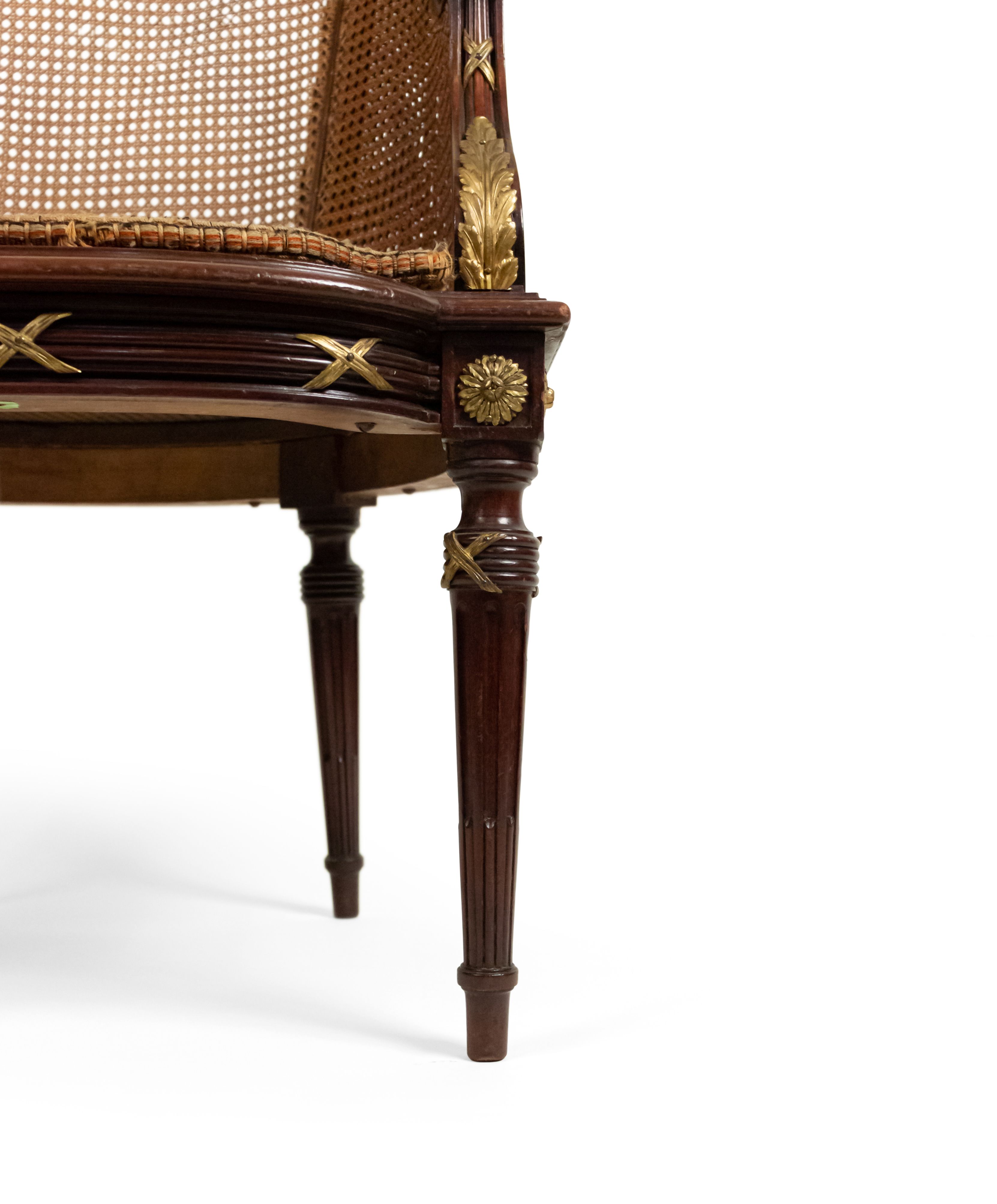 French Louis XVI-style (Late 19th Century) ormolu mounted mahogany caned bergere (Related item: 050651B)
