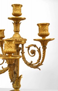 Pair of French Louis XVI Style Gilt Bronze and Marble Candelabras