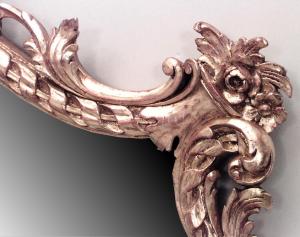 French Louis XVI-style (19/20th Century) horizontal giltwood wall mirror with four carved festoons and cornucopia floral design sides (Related item: 037401B)