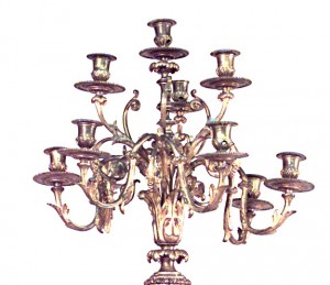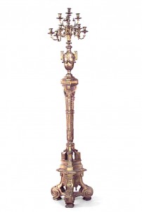 2 French Louis XVI-style (19th Century) gilt wood floor torchieres with urn design and 9 bronze arms (PRICED EACH)