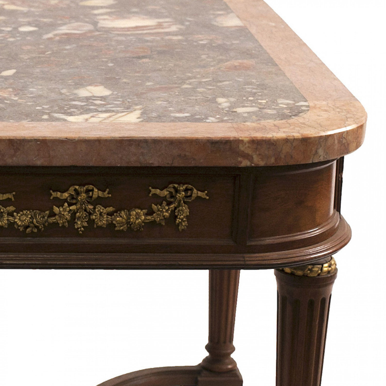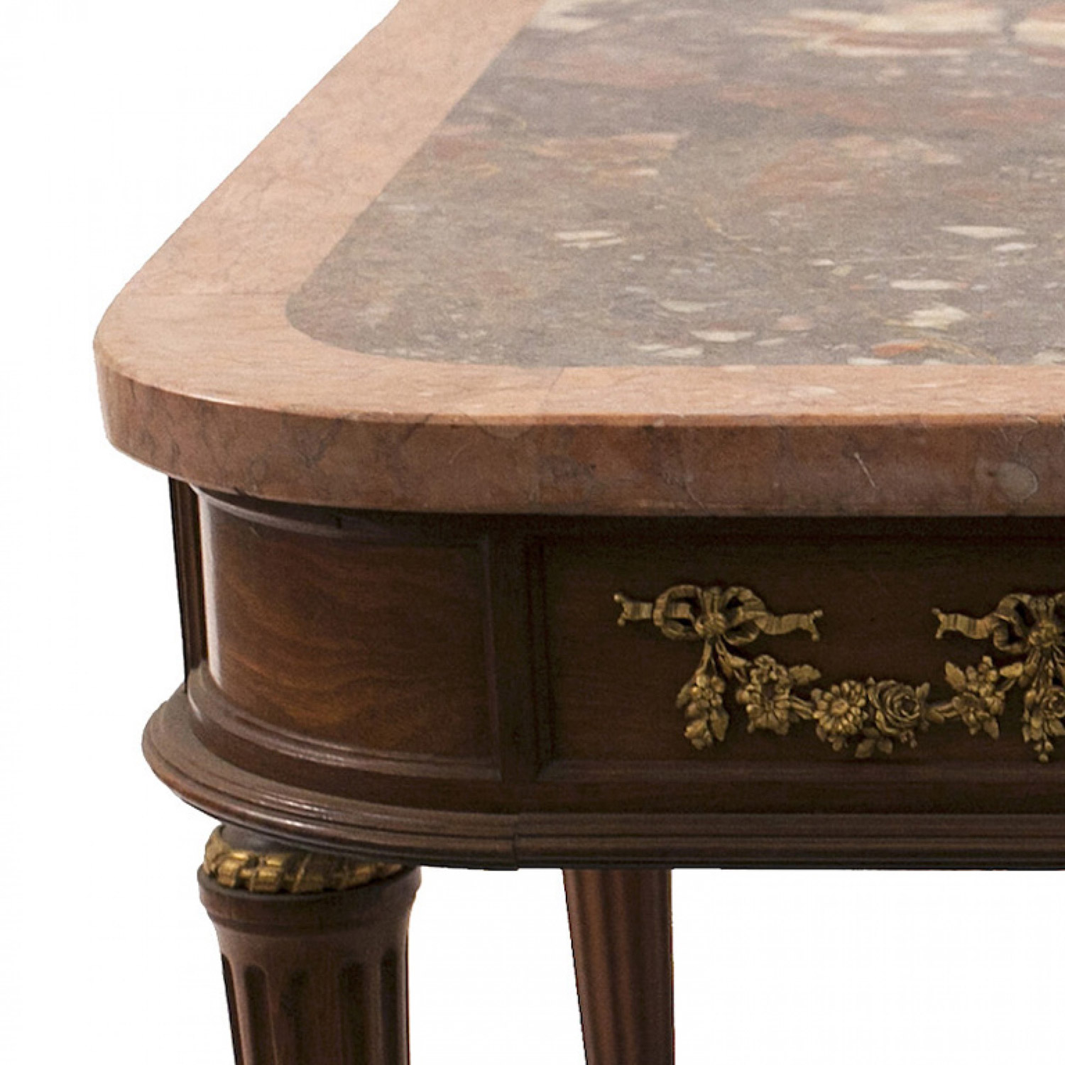 French Louis XVI Style Walnut and Pink Marble Coffee Table