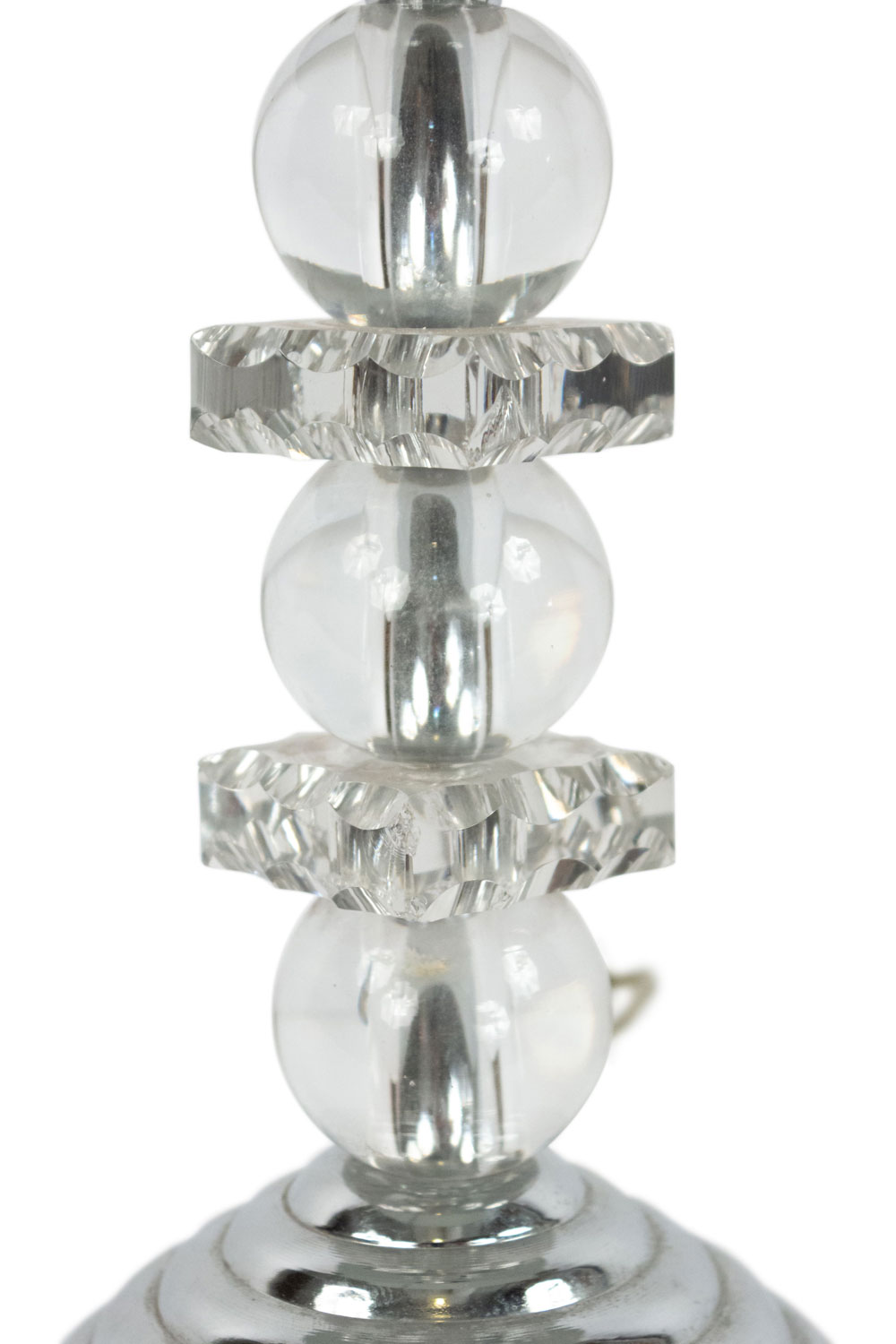 French 1940s table lamps with chrome dome shaped shade and base between alternating 3 large glass balls and 2 squares.
