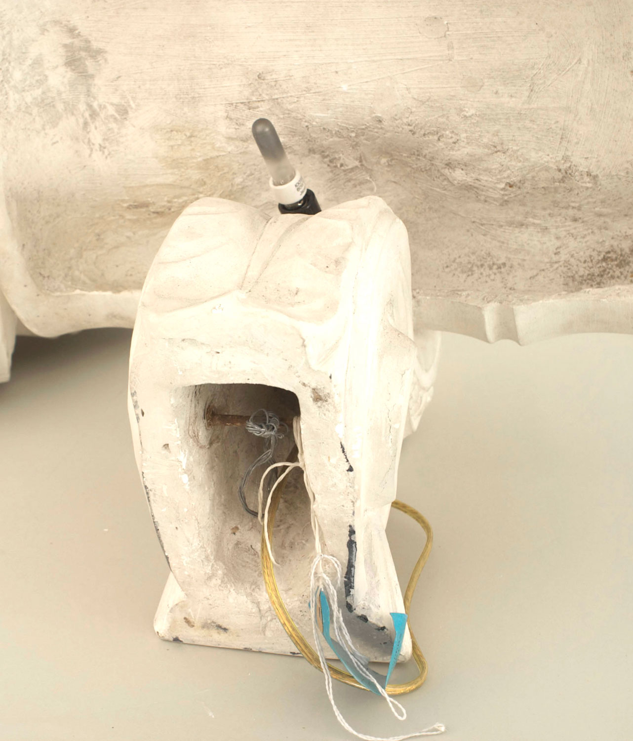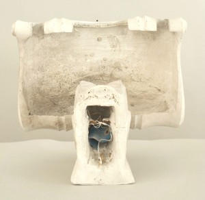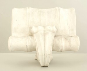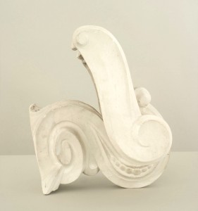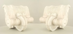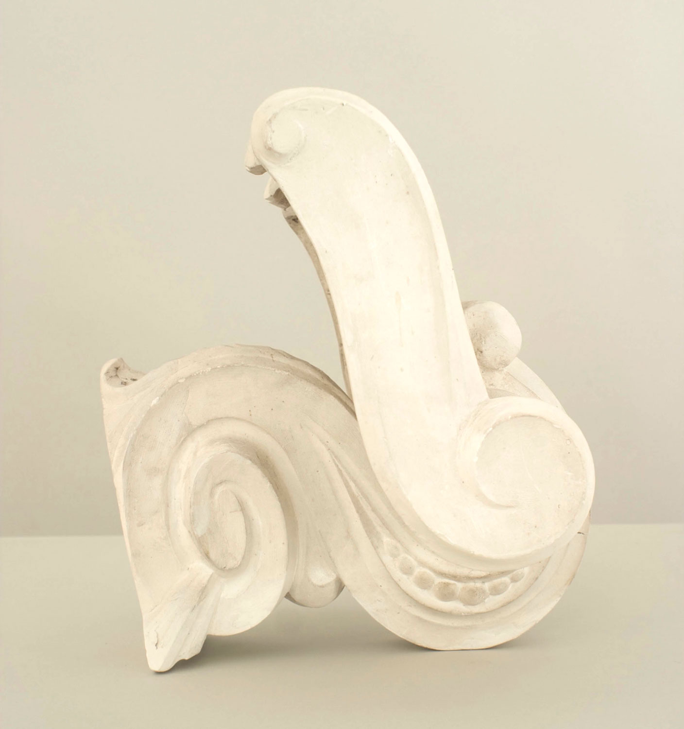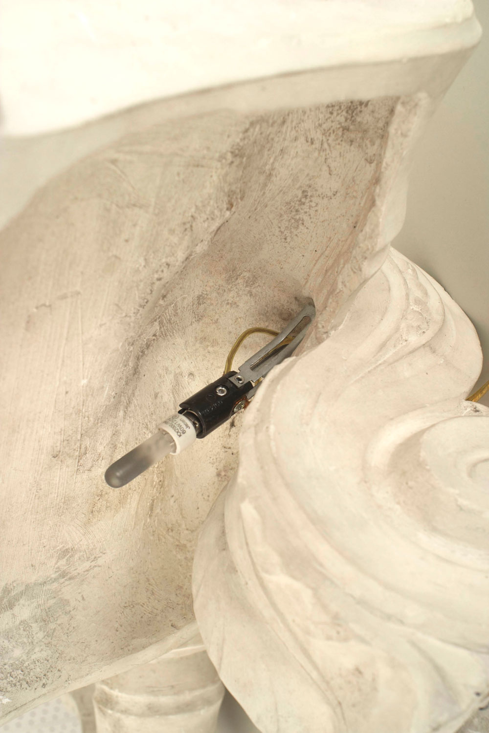 2 French Neoclassic-style (1940s) white plaster capital wall sconces with back light and scroll form (possibly SERGE ROCHE) (PRICED EACH)