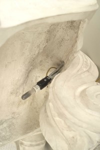 2 French Mid-Century Neoclassic Plaster Capital Sconces