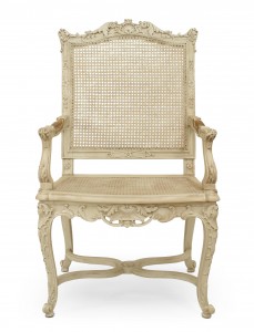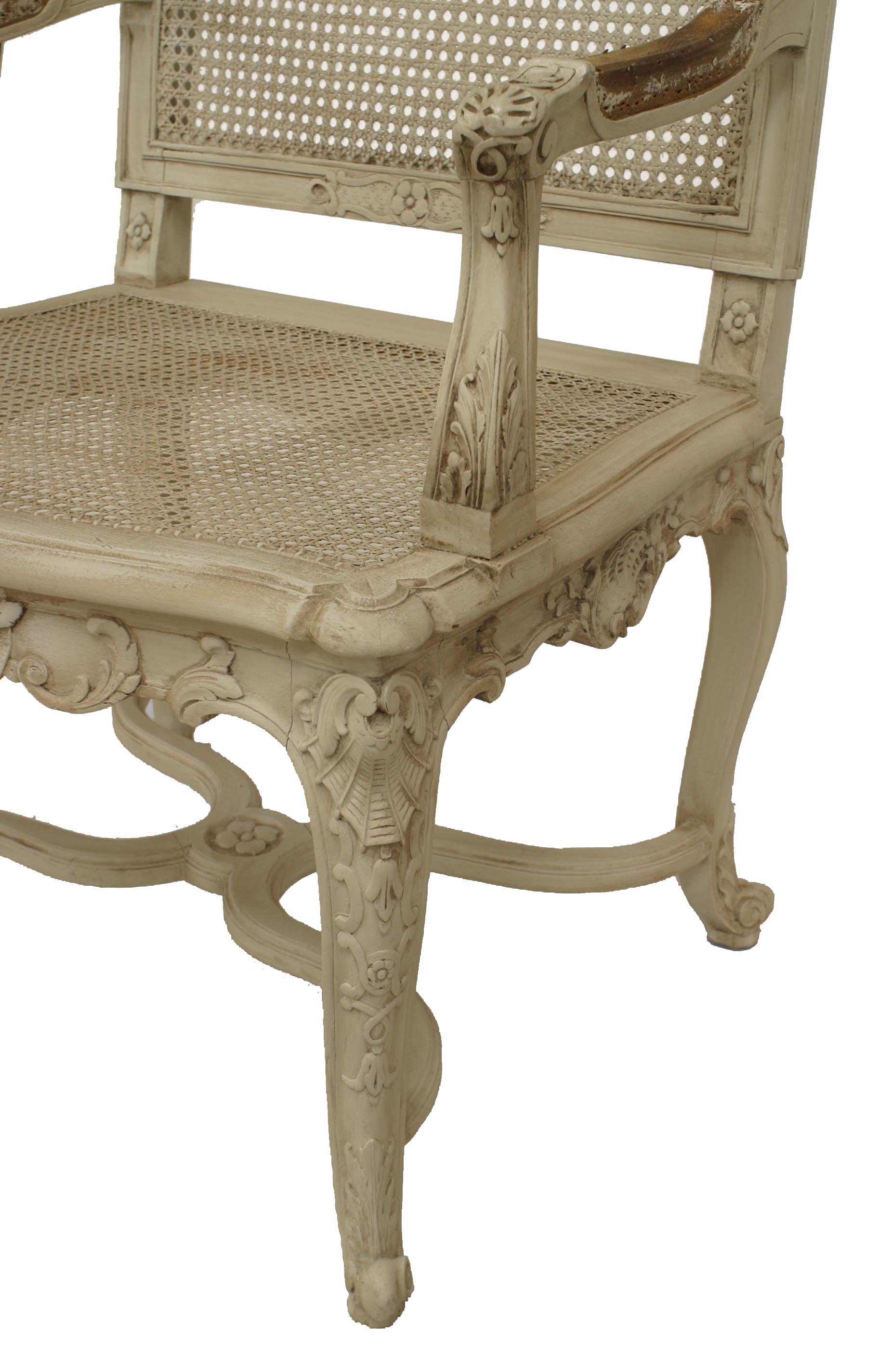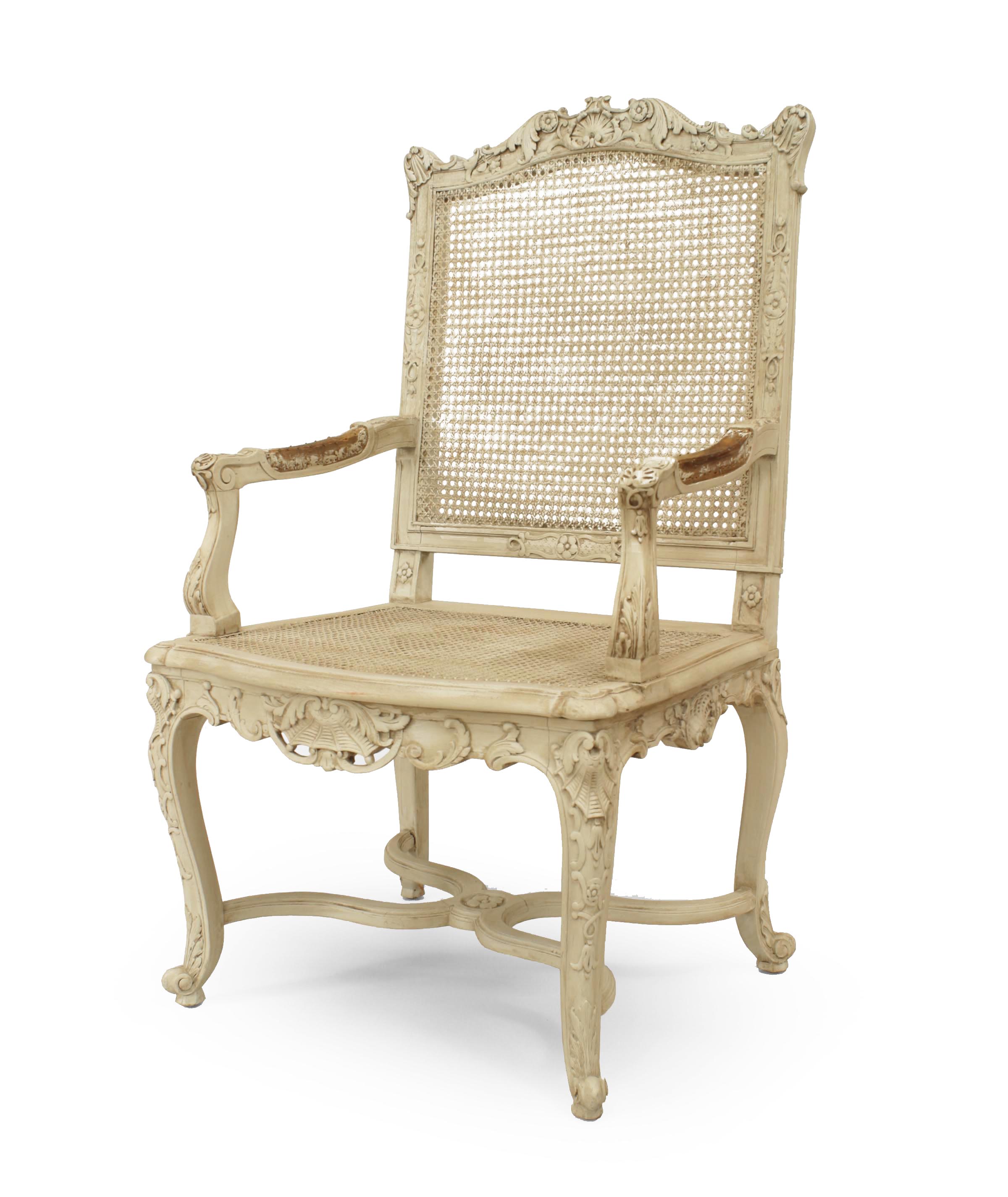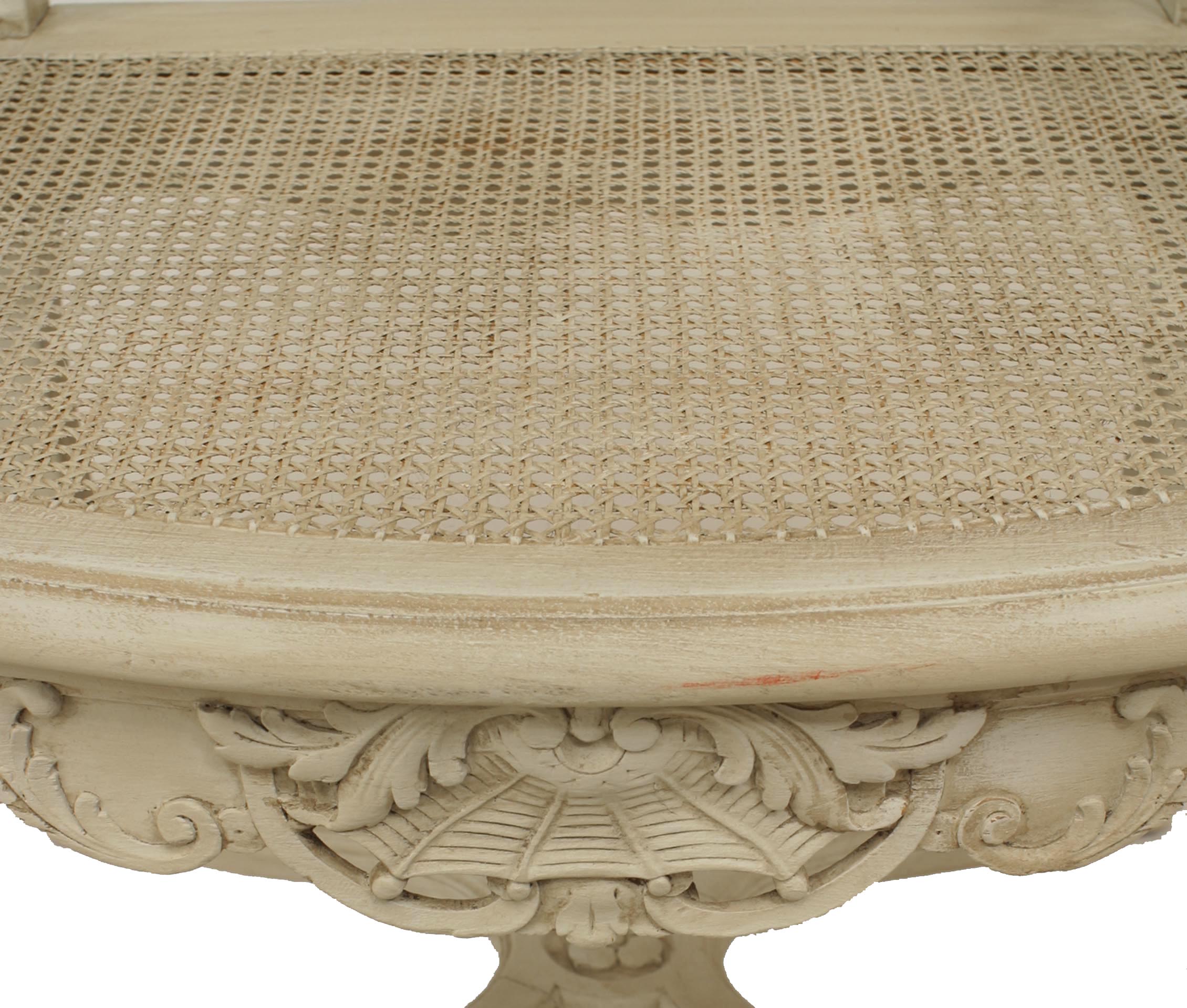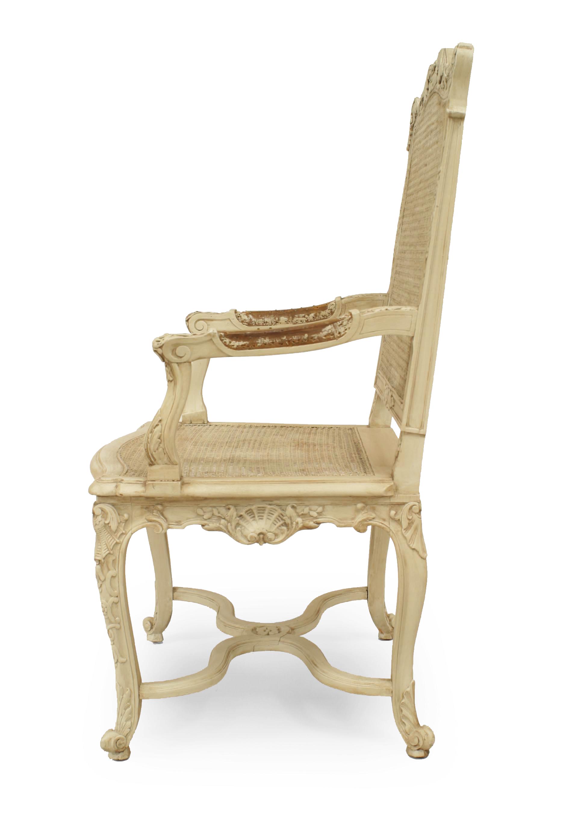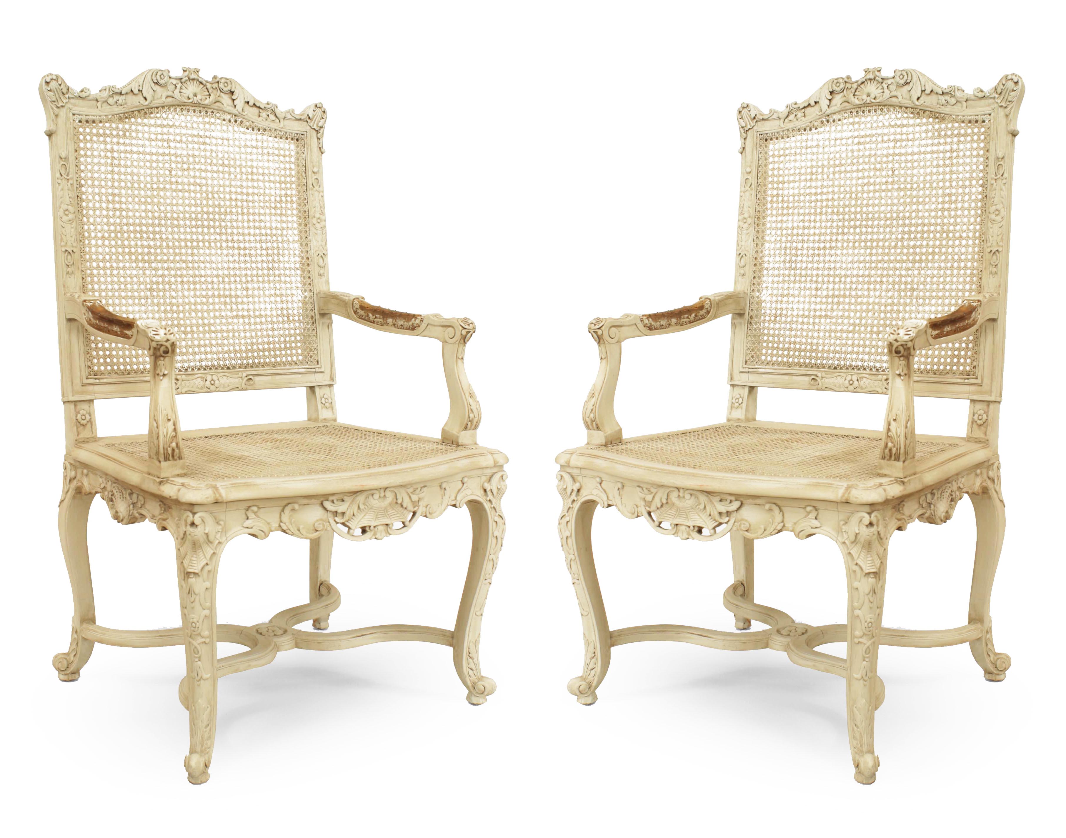 SET of 10 French Regence style (19th Cent) white painted and carved open chairs with cane seat and back. (2 arms 8 sides) (PRICED AS SET)