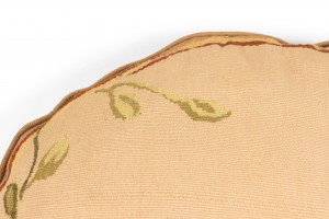 French Victorian Aubusson oval shaped cushion depicting deer drinking water with a floral border.
