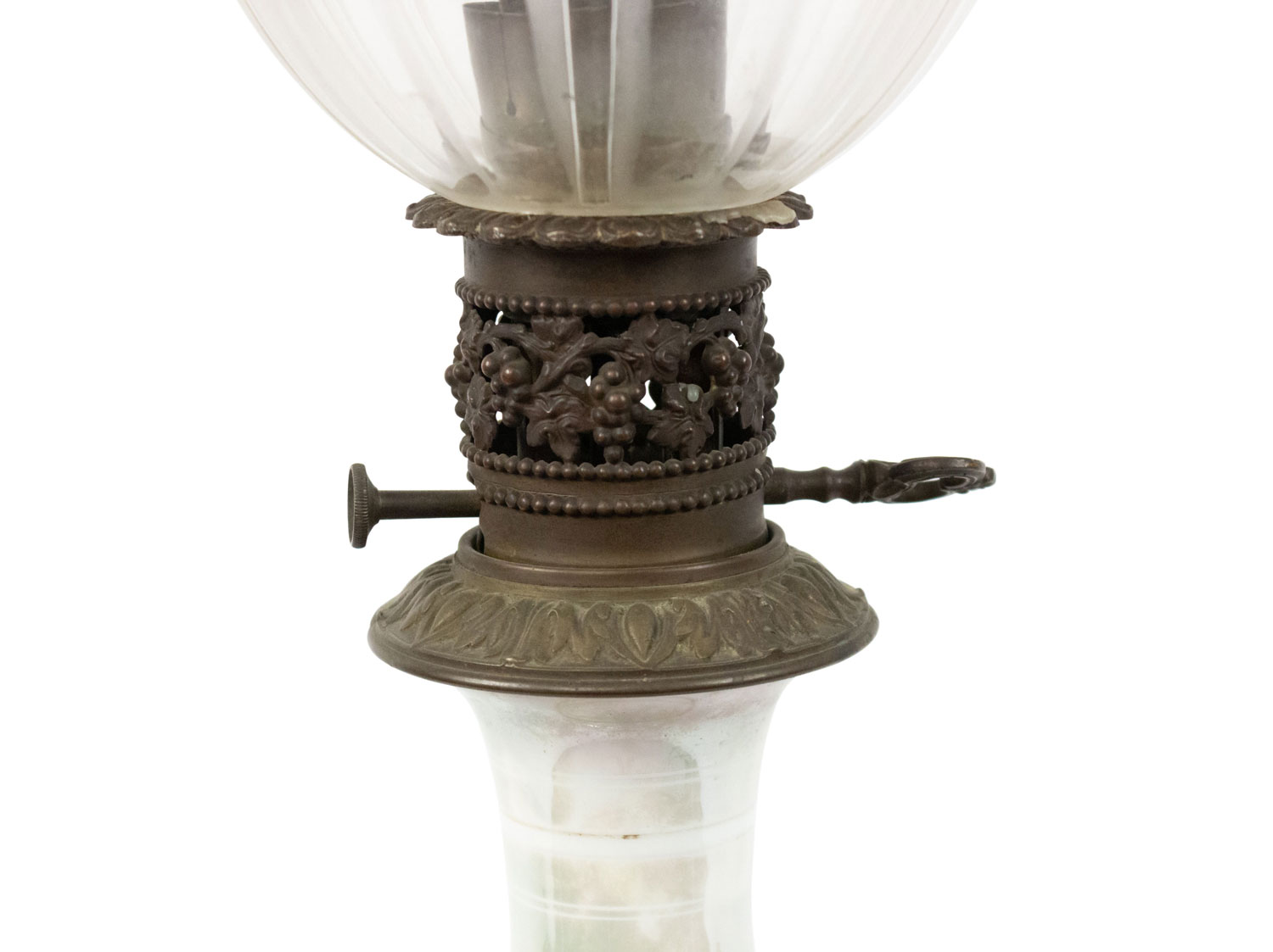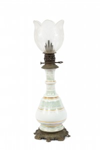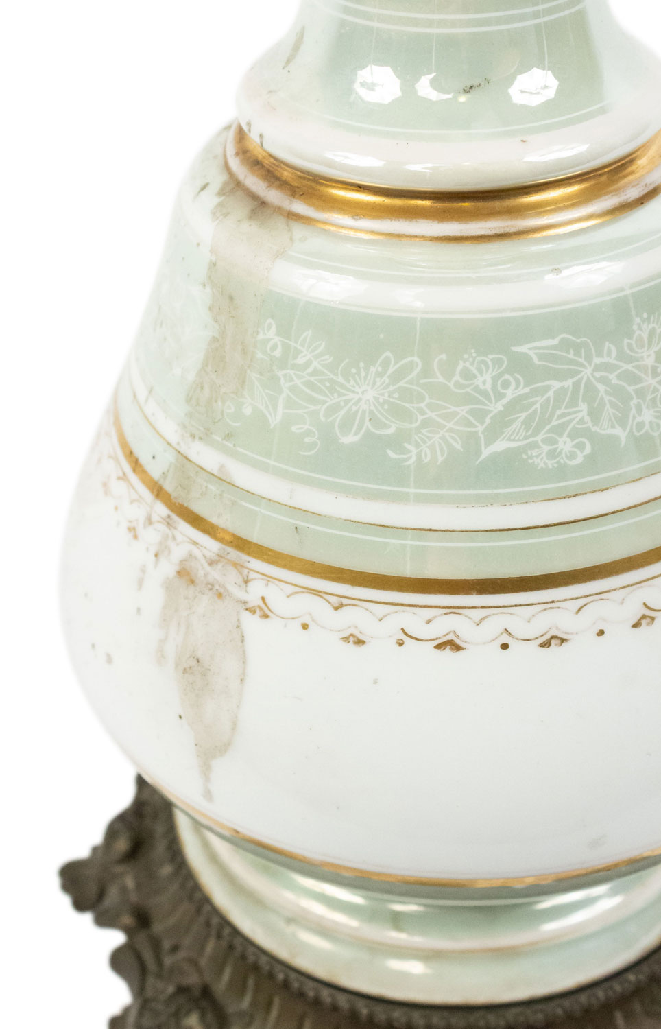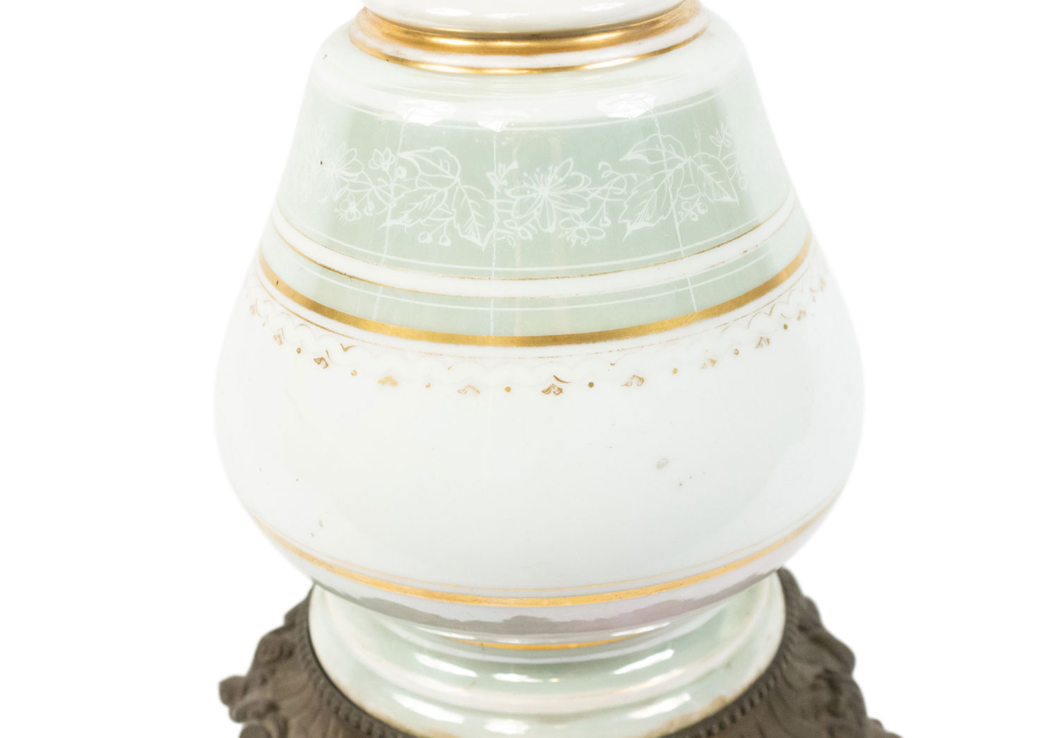 2 French Victorian Celadon and Porcelain Oil Lamps