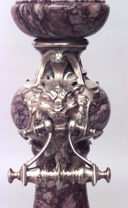 French Victorian marble and bronze floor lamp with 3 claw feet.