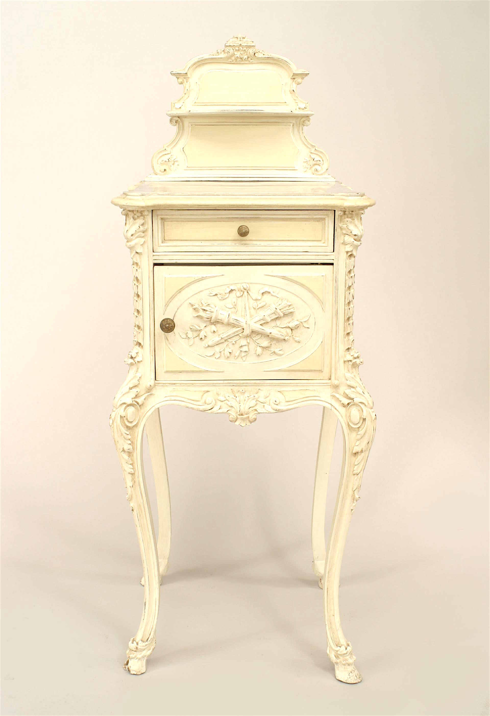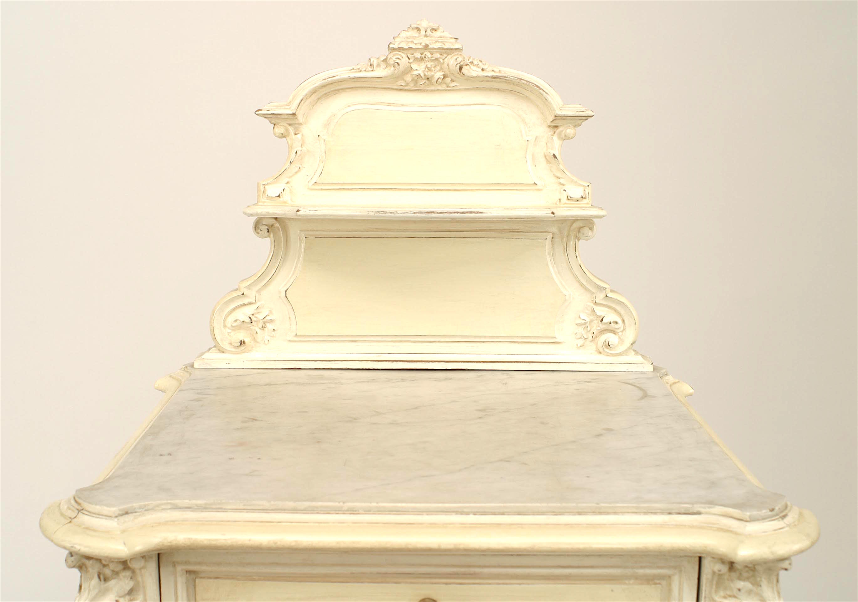 French Victorian White Painted Carved Wood and Marble Commode
