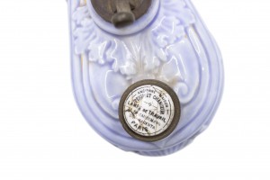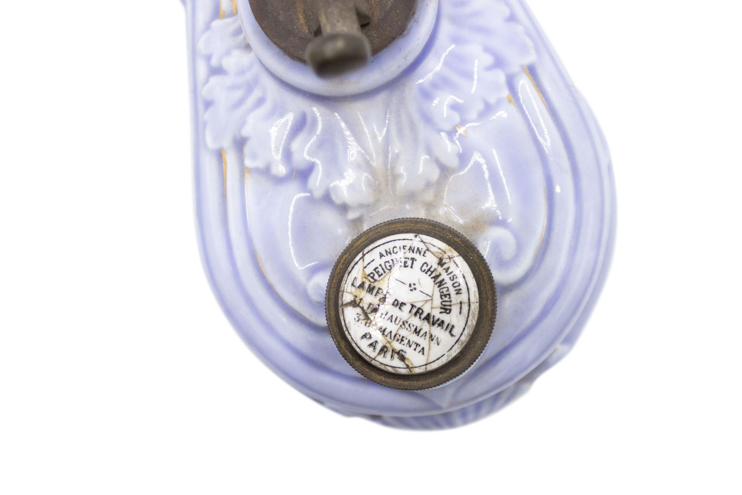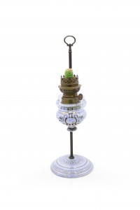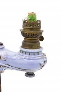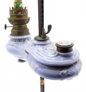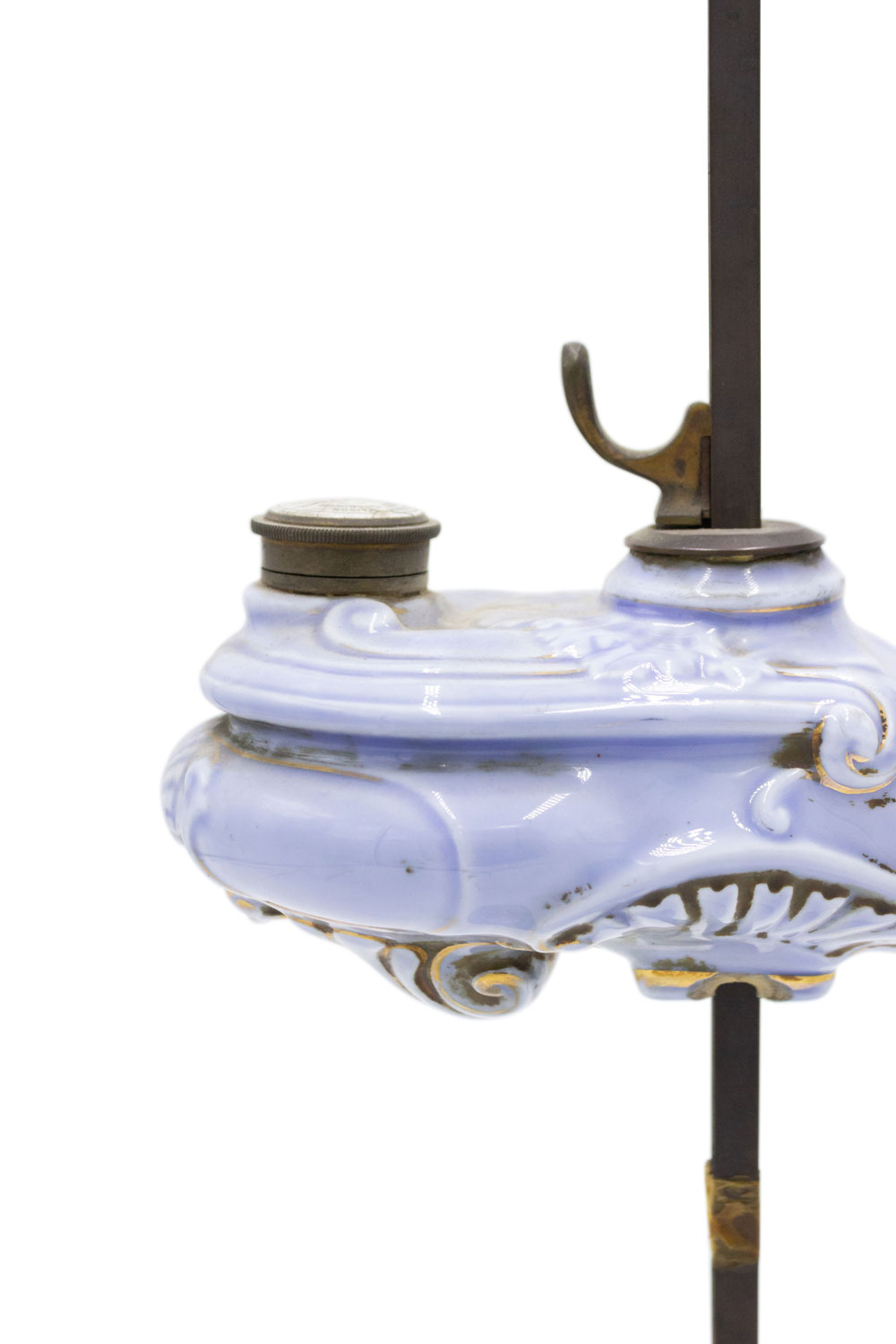 French Victorian blue porcelain Aladdin style oil table lamp.