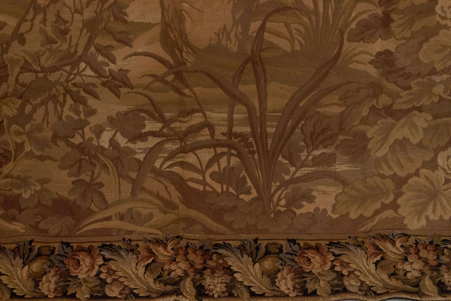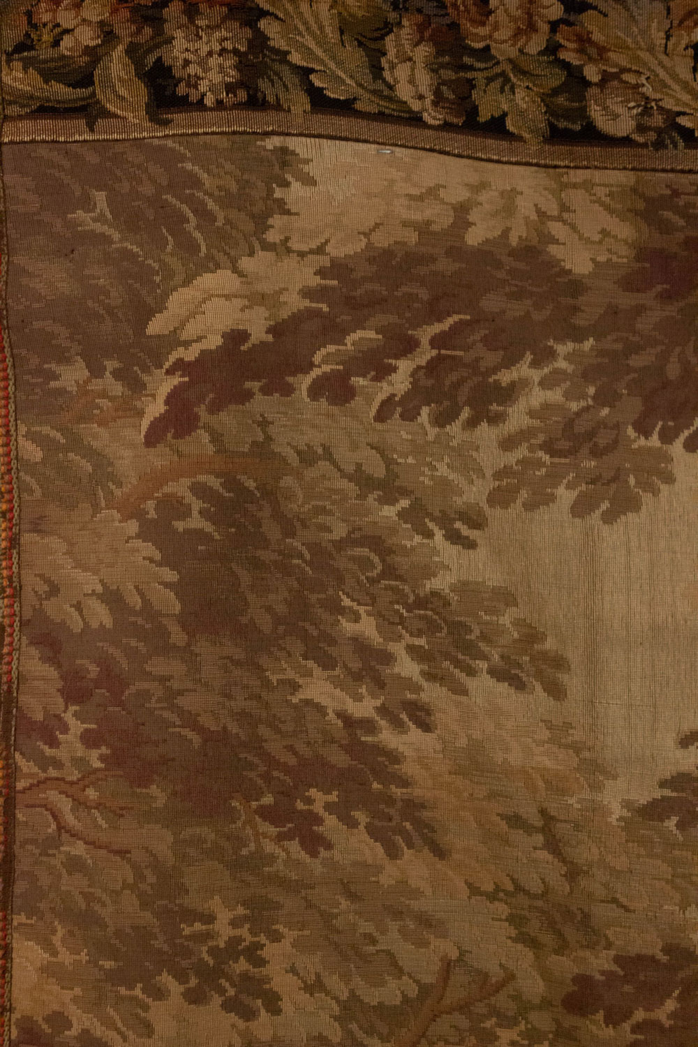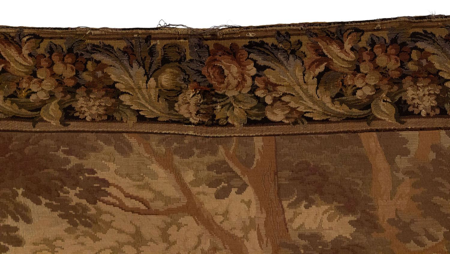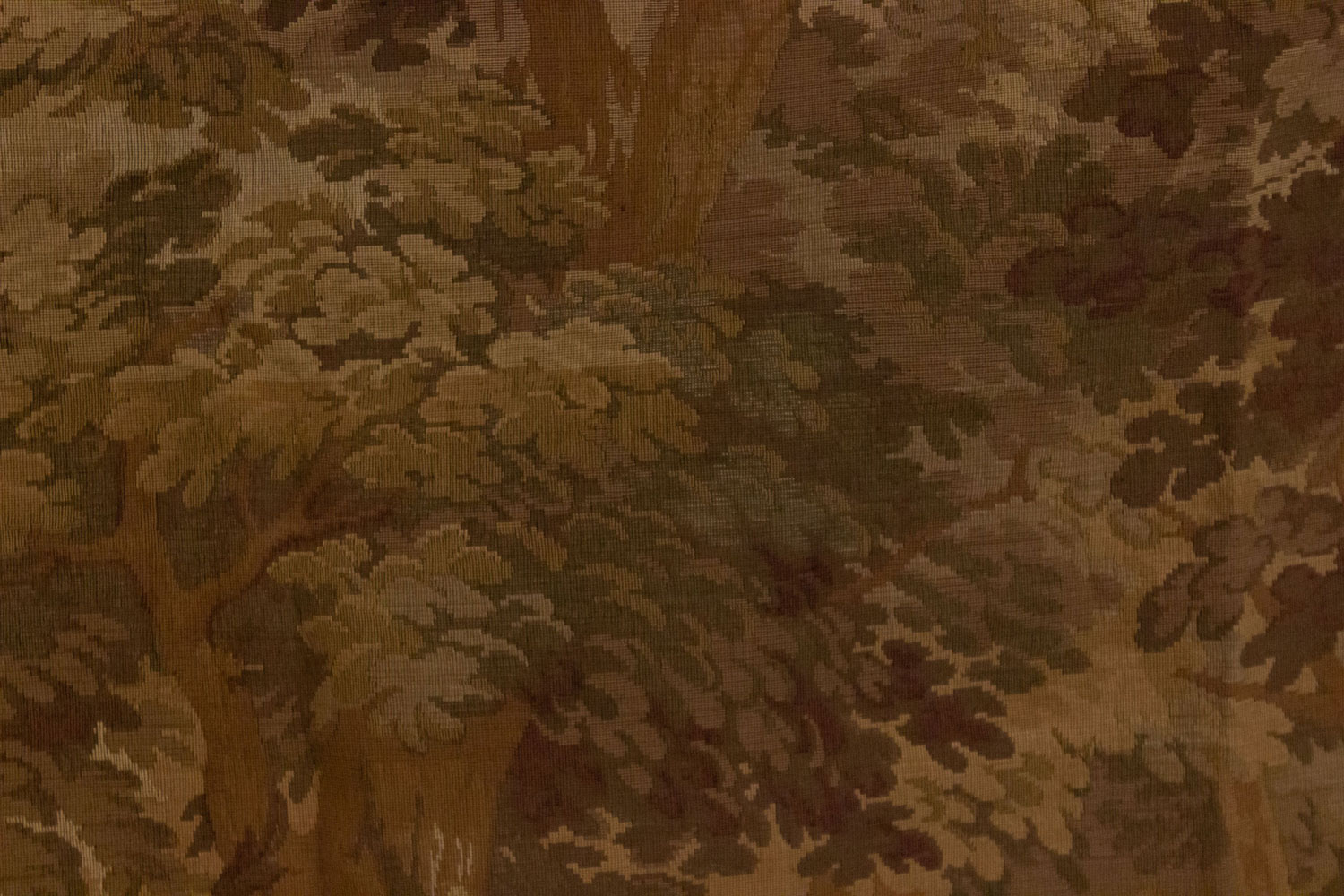 French Woven Sepia Toned Tapestry of a Forest Scene